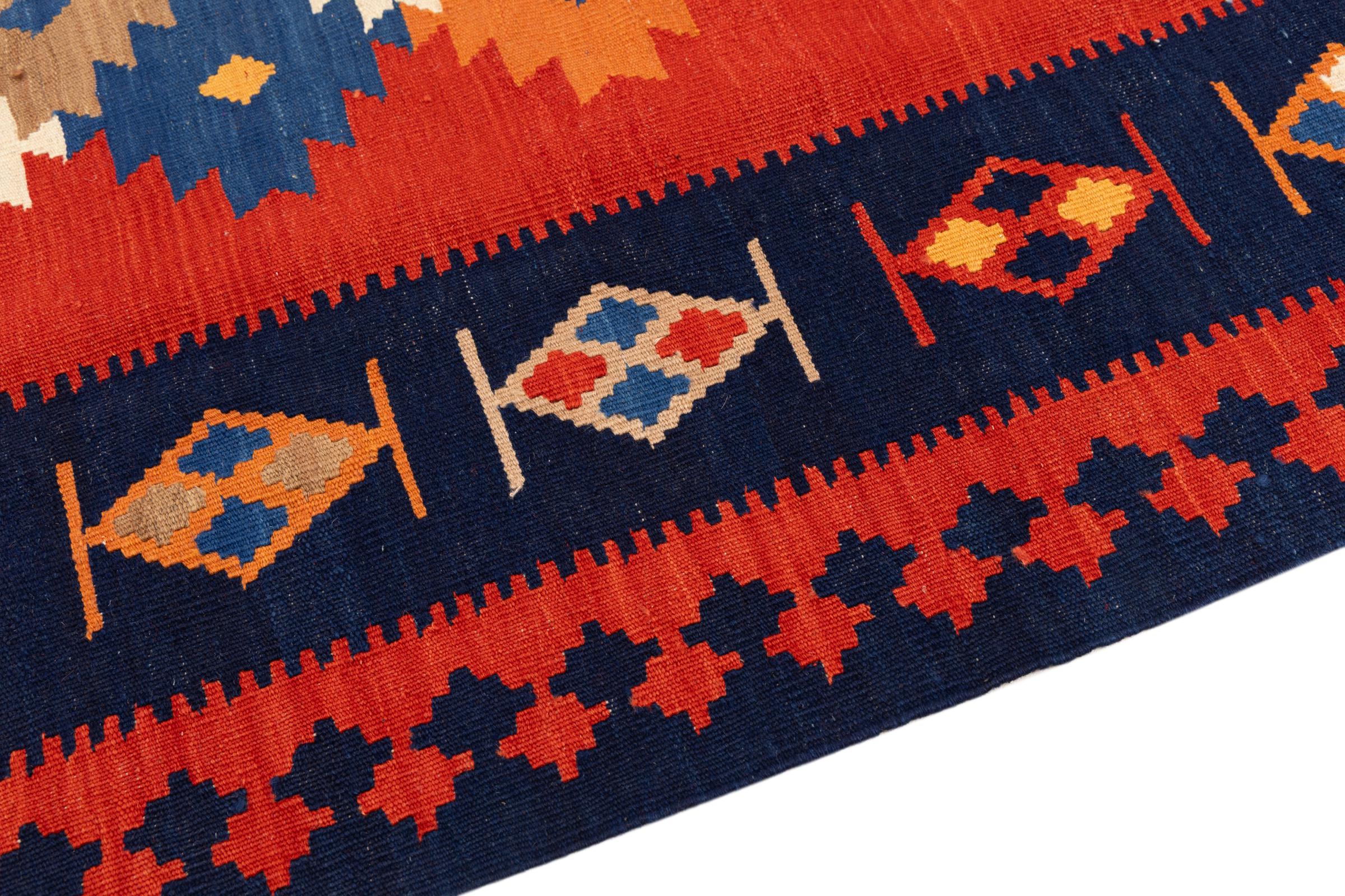 Este kilim Fars tejido a mano combina motivos y ornamentos persas con la tradición de los tejidos planos. Una gran y moderna combinación de los conceptos más populares de Oriente. Esto también da como resultado una alfombra con una gran variedad de usos. Ya sea como colcha o delante del sofá como alfombra, una Kelim Fars lo hace posible y ahora se puede encontrar en las revistas de diseño de interiores más populares. Las alfombras kilim fars se tejen a mano en Irán, por lo que se encuentran entre los kilims de mayor calidad.