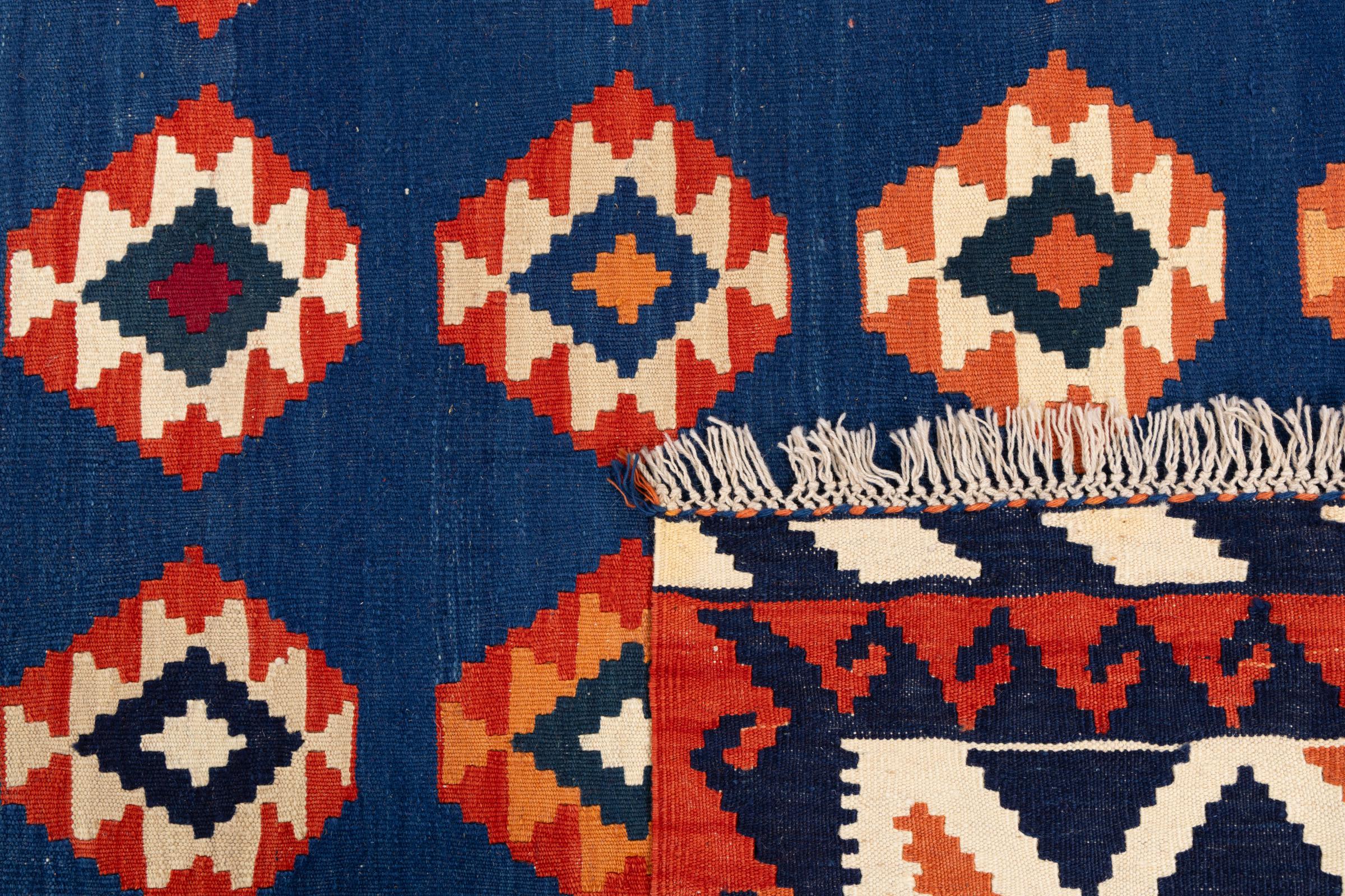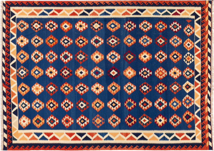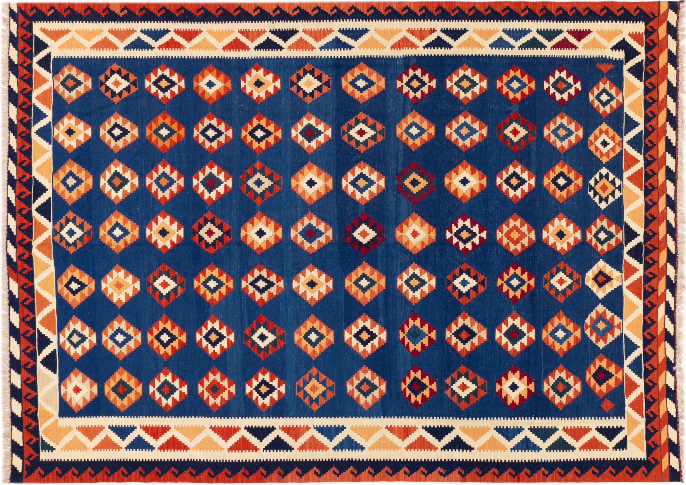 Este kilim Fars tejido a mano combina motivos y ornamentos persas con la tradición de los tejidos planos. Una gran y moderna combinación de los conceptos más populares de Oriente. Esto también da como resultado una alfombra con una gran variedad de usos. Ya sea como colcha o delante del sofá como alfombra, una Kelim Fars lo hace posible y ahora se puede encontrar en las revistas de diseño de interiores más populares. Las alfombras kilim fars se tejen a mano en Irán, por lo que se encuentran entre los kilims de mayor calidad.