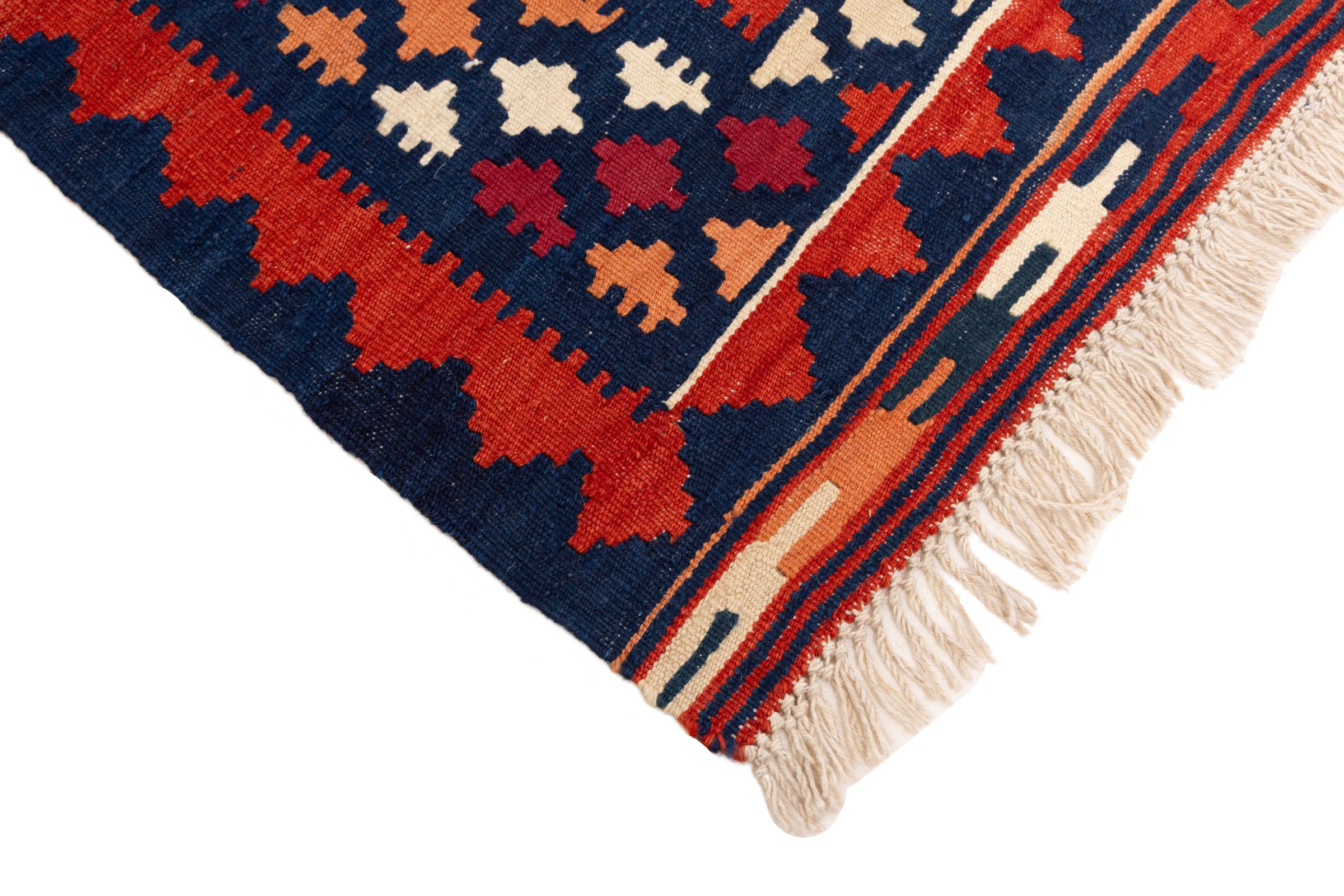 Estas alfombras kilim muestran una diferencia decisiva con las alfombras anudadas a mano - son tejidas a mano. Por lo tanto, no tienen un montón alto de lana y son a menudo más planos y más ásperos que las alfombras de lana anudada. Su fabricación es menos elaborada y por eso suelen ser mucho más baratas. Como ventaja, las alfombras de kilim son también mucho más ligeras y pueden ser colocadas por delante y por detrás. Los kilims tejidos a mano provienen originalmente de la antigua Persia y ahora también se fabrican a menudo en el Afganistán. Tienen patrones bastante simples y directos, que se deben a su técnica de tejido.