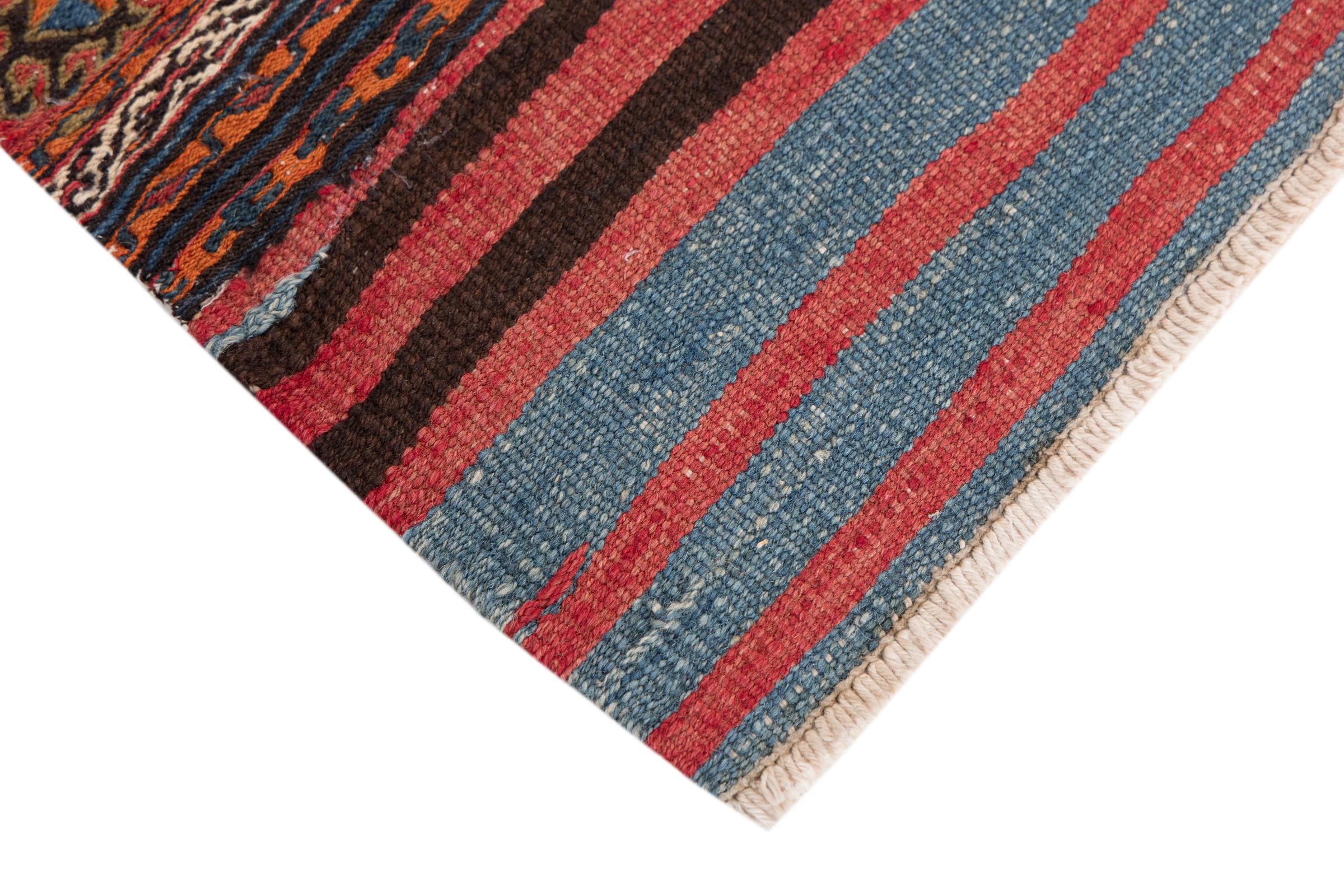 Este kilim Fars tejido a mano combina motivos y ornamentos persas con la tradición de los tejidos planos. Una gran y moderna combinación de los conceptos más populares de Oriente. Esto también da como resultado una alfombra con una gran variedad de usos. Ya sea como colcha o delante del sofá como alfombra, una Kelim Fars lo hace posible y ahora se puede encontrar en las revistas de diseño de interiores más populares. Las alfombras kilim fars se tejen a mano en Irán, por lo que se encuentran entre los kilims de mayor calidad.