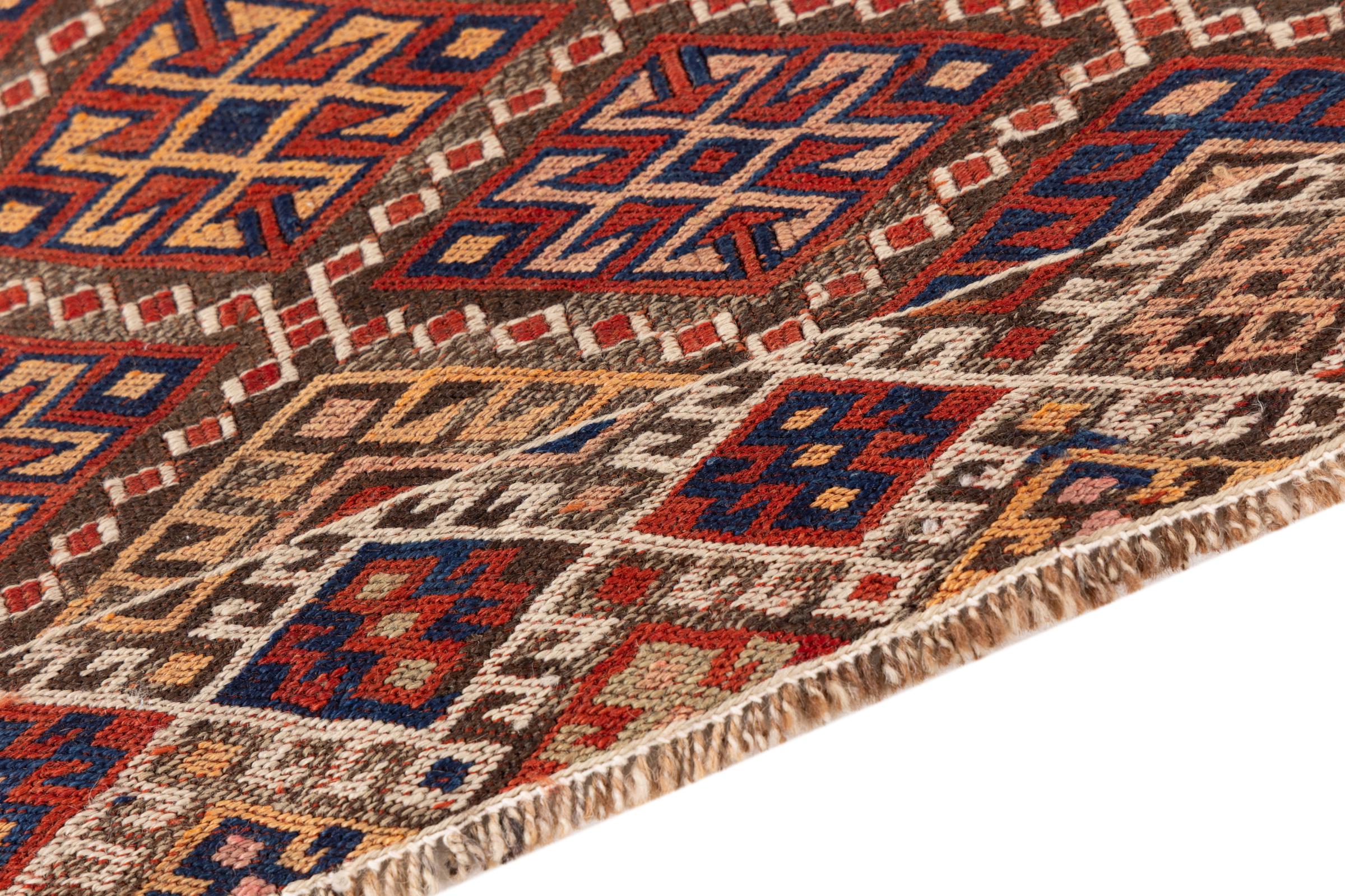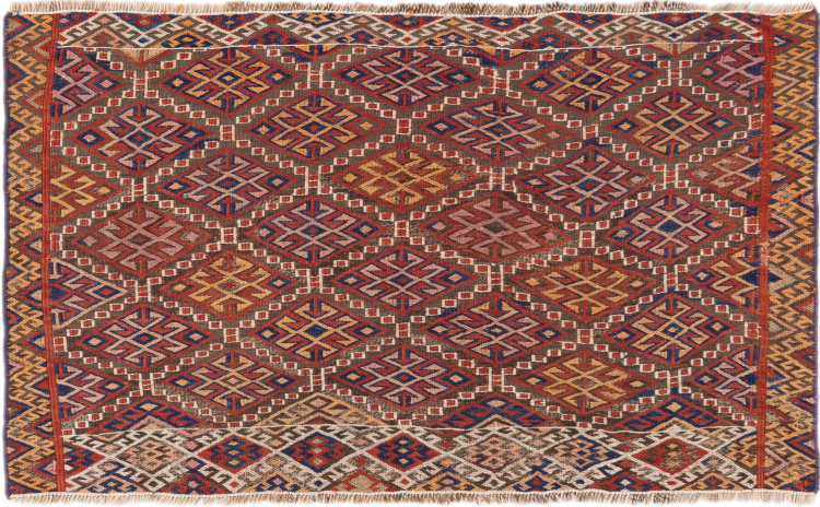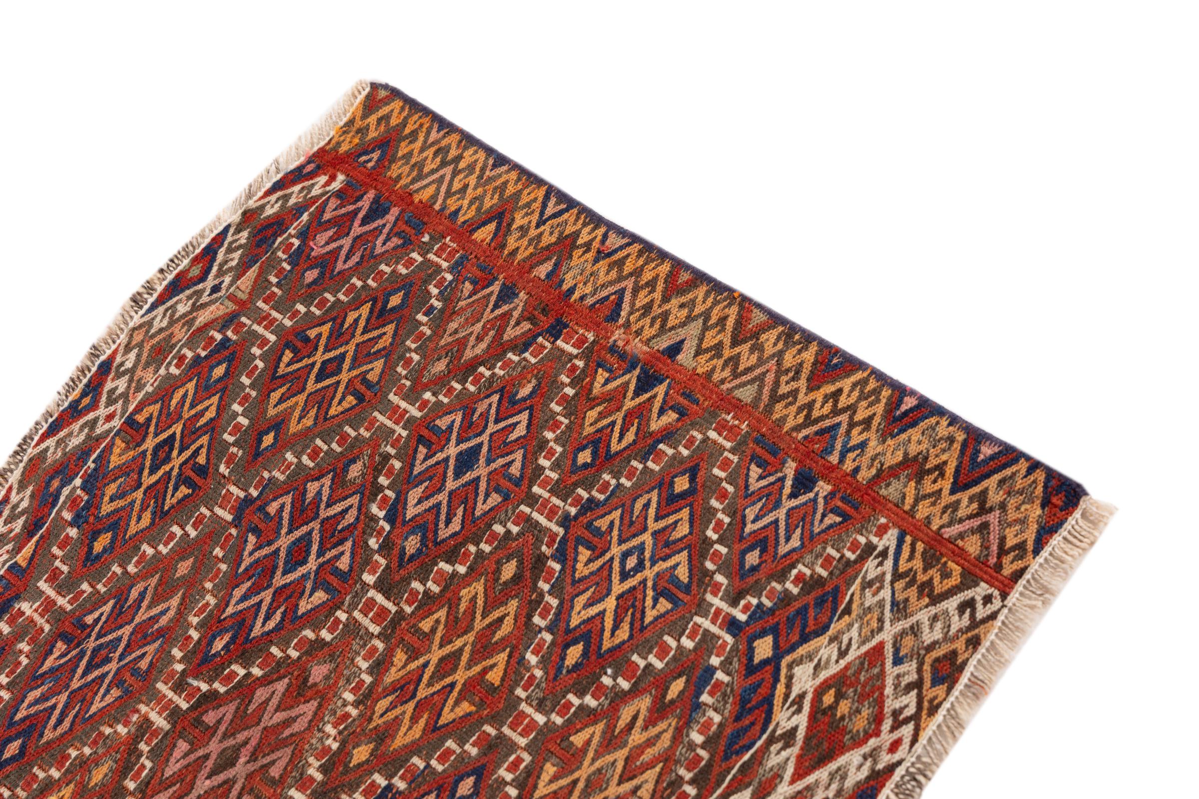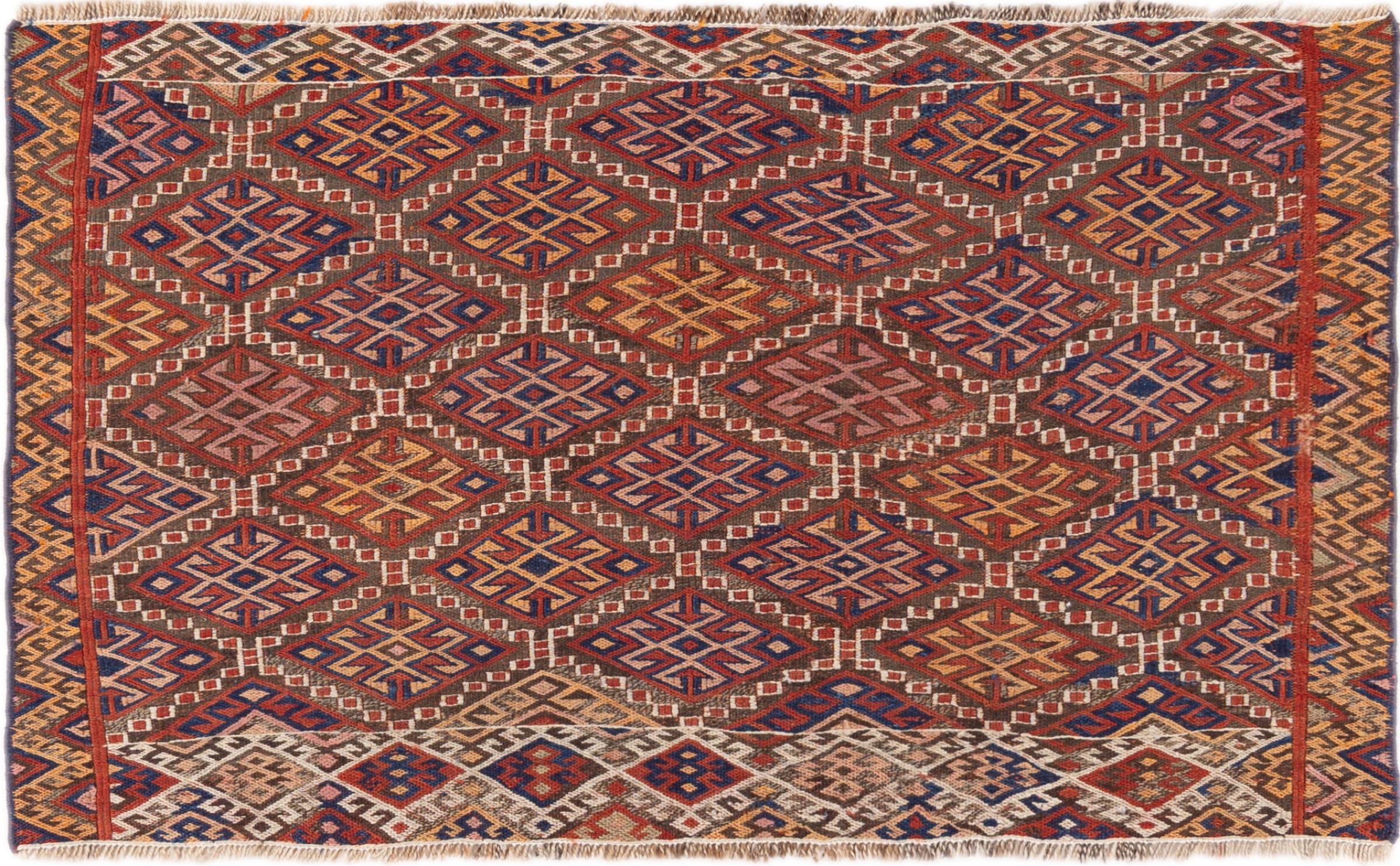 Estas alfombras kilim muestran una diferencia decisiva con las alfombras anudadas a mano - son tejidas a mano. Por lo tanto, no tienen un montón alto de lana y son a menudo más planos y más ásperos que las alfombras de lana anudada. Su fabricación es menos elaborada y por eso suelen ser mucho más baratas. Como ventaja, las alfombras de kilim son también mucho más ligeras y pueden ser colocadas por delante y por detrás. Los kilims tejidos a mano provienen originalmente de la antigua Persia y ahora también se fabrican a menudo en el Afganistán. Tienen patrones bastante simples y directos, que se deben a su técnica de tejido.