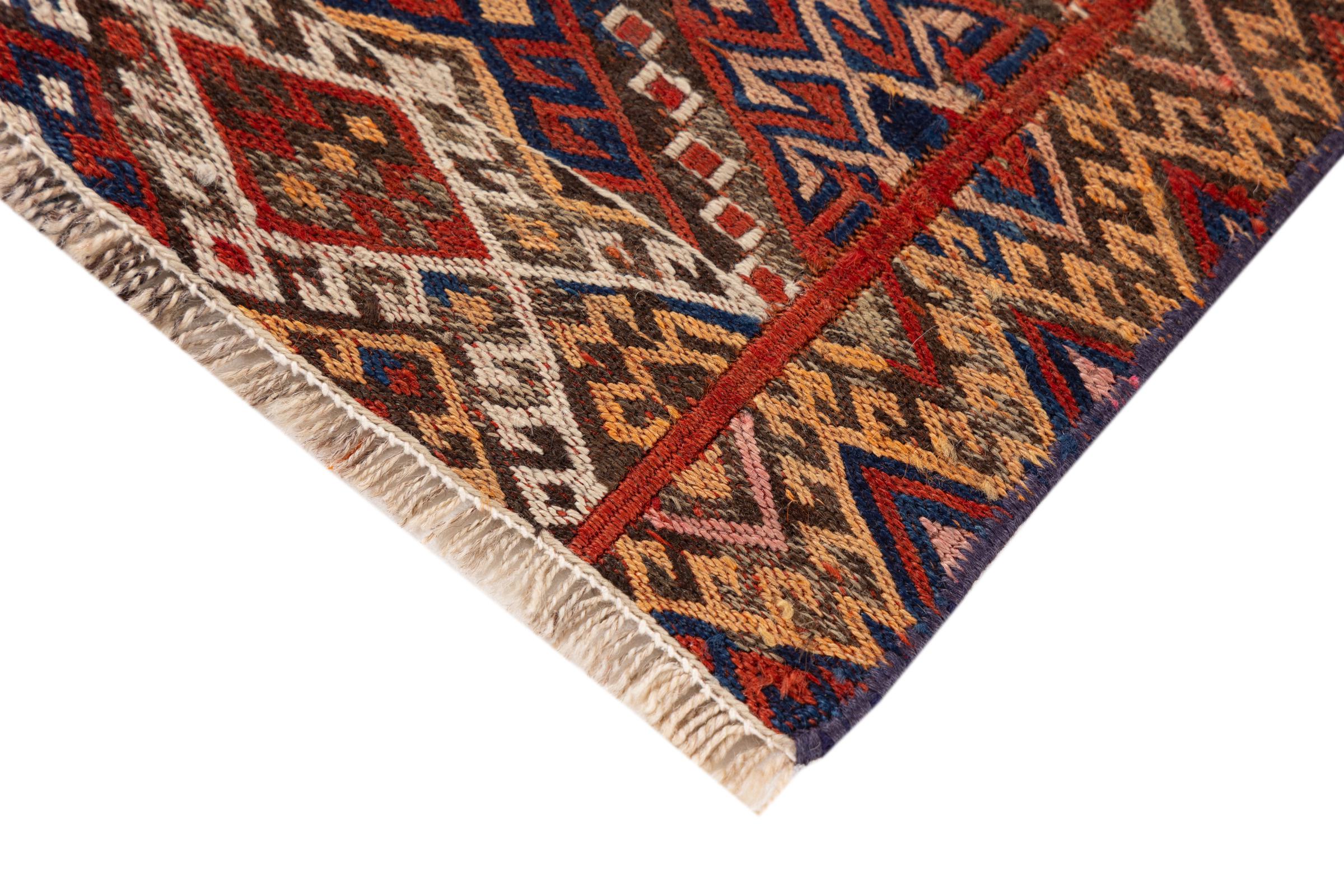 Este kilim Fars tejido a mano combina motivos y ornamentos persas con la tradición de los tejidos planos. Una gran y moderna combinación de los conceptos más populares de Oriente. Esto también da como resultado una alfombra con una gran variedad de usos. Ya sea como colcha o delante del sofá como alfombra, una Kelim Fars lo hace posible y ahora se puede encontrar en las revistas de diseño de interiores más populares. Las alfombras kilim fars se tejen a mano en Irán, por lo que se encuentran entre los kilims de mayor calidad.