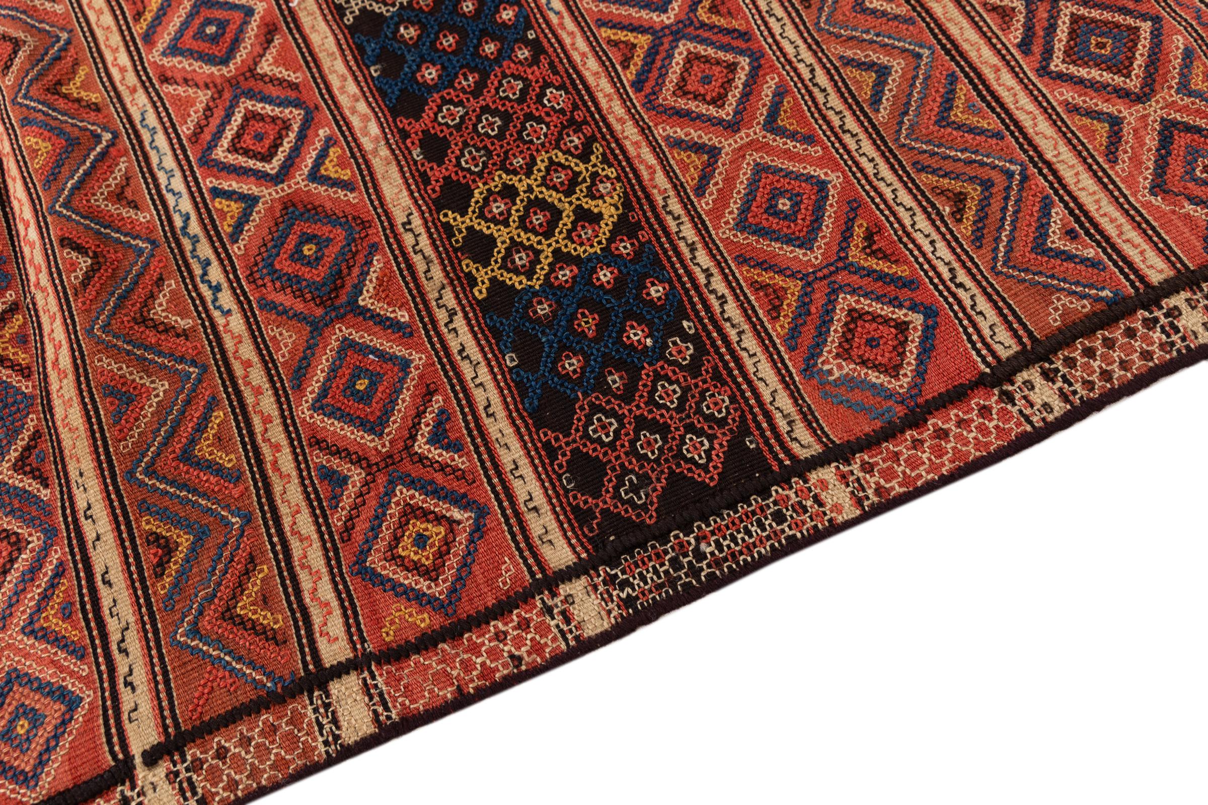 Este kilim Fars tejido a mano combina motivos y ornamentos persas con la tradición de los tejidos planos. Una gran y moderna combinación de los conceptos más populares de Oriente. Esto también da como resultado una alfombra con una gran variedad de usos. Ya sea como colcha o delante del sofá como alfombra, una Kelim Fars lo hace posible y ahora se puede encontrar en las revistas de diseño de interiores más populares. Las alfombras kilim fars se tejen a mano en Irán, por lo que se encuentran entre los kilims de mayor calidad.