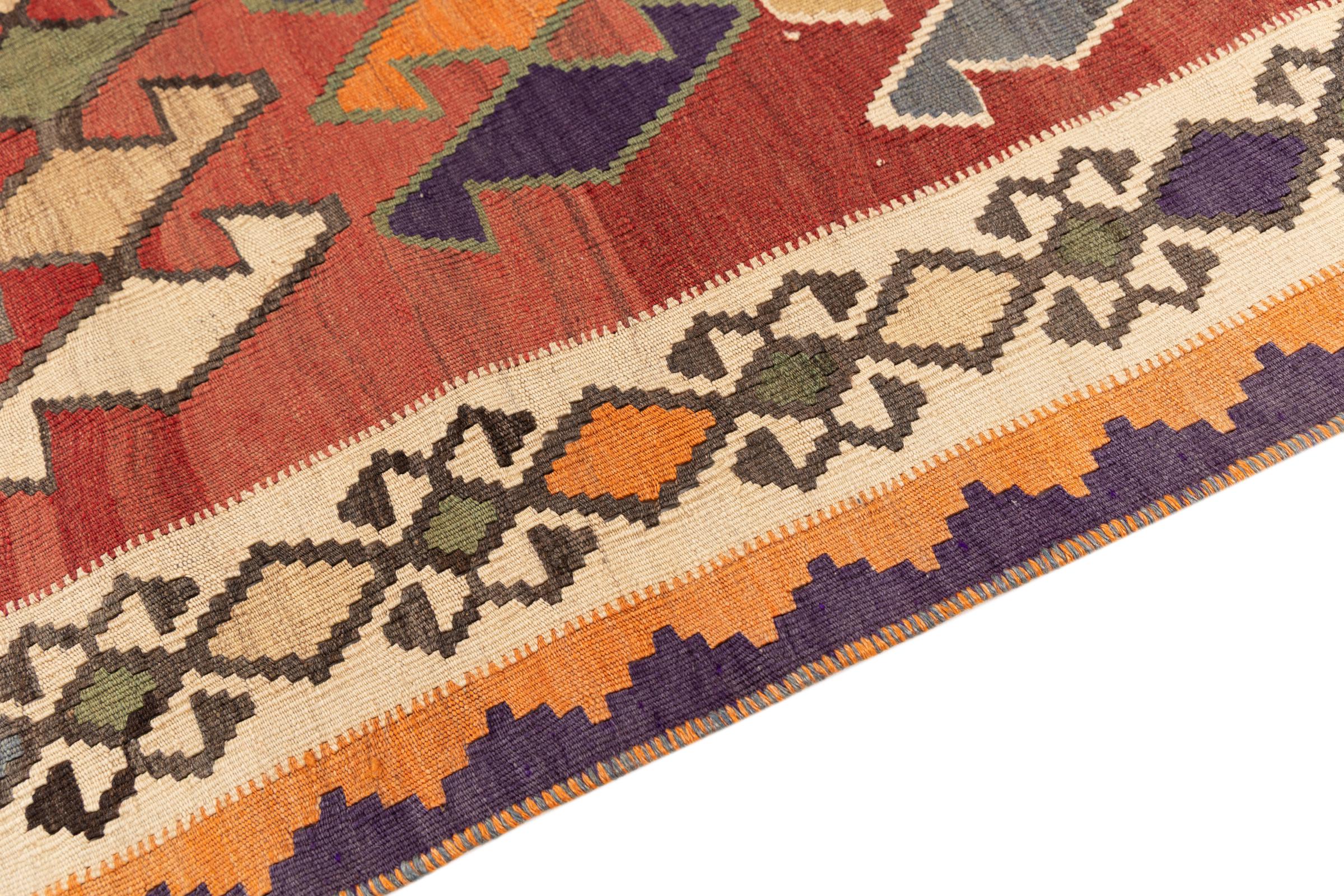 Este kilim Fars tejido a mano combina motivos y ornamentos persas con la tradición de los tejidos planos. Una gran y moderna combinación de los conceptos más populares de Oriente. Esto también da como resultado una alfombra con una gran variedad de usos. Ya sea como colcha o delante del sofá como alfombra, una Kelim Fars lo hace posible y ahora se puede encontrar en las revistas de diseño de interiores más populares. Las alfombras kilim fars se tejen a mano en Irán, por lo que se encuentran entre los kilims de mayor calidad.