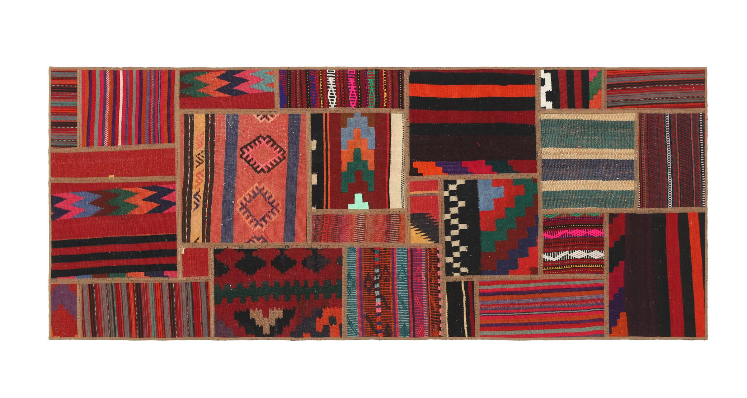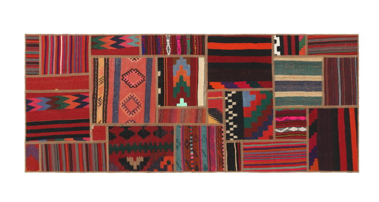 Este hermoso kilim patchwork reúne la fina artesanía de talentosos maestros tejedores de alfombras de Irán, Afganistán, Turquía y el Cáucaso. Las piezas individuales de los kilims fabricados tradicionalmente se limpiaron, procesaron y unieron para formar un nuevo patrón. El resultado es una alfombra oriental con un diseño único de aspecto patchwork que es a la vez ligera y robusta gracias a su estructura tejida.