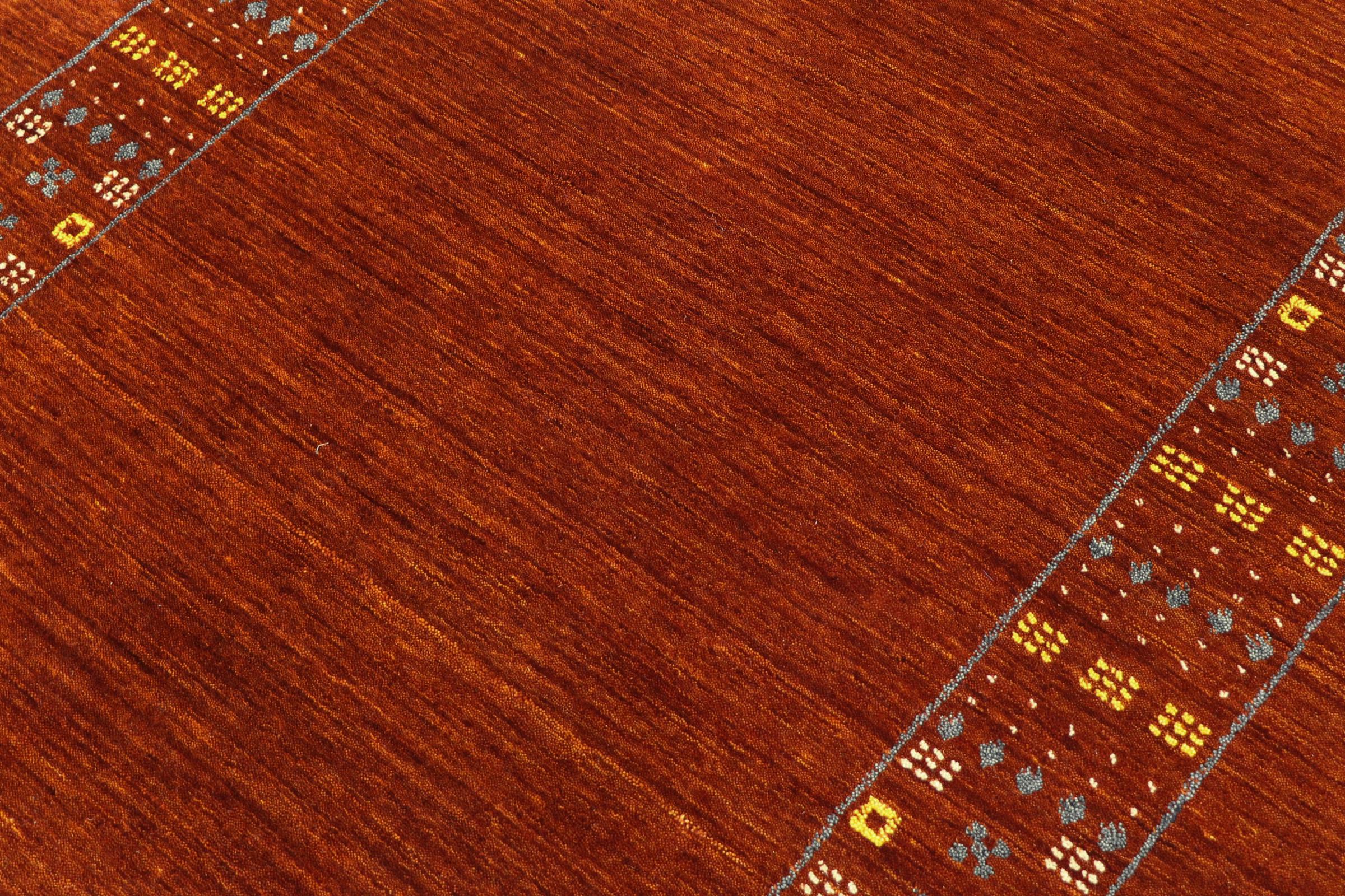Esta hermosa alfombra de Gabbeh fue anudada a mano en la India. Las alfombras indias de Gabbeh están hechas de suave lana de oveja, son cómodas para los pies y tienen propiedades de aislamiento térmico. La mayoría de sus diseños son simples y modernos atemporales. Se inspiraron en los pueblos nómadas, que dejaban fluir en las alfombras motivos muy simples de su entorno. Las alfombras de Gabbeh de la India no se acercan mucho a la calidad de las de Gabbeh de Persia, pero tienen una muy buena relación precio-rendimiento. Por lo tanto, son perfectamente adecuadas como alfombras anudadas a mano para principiantes.