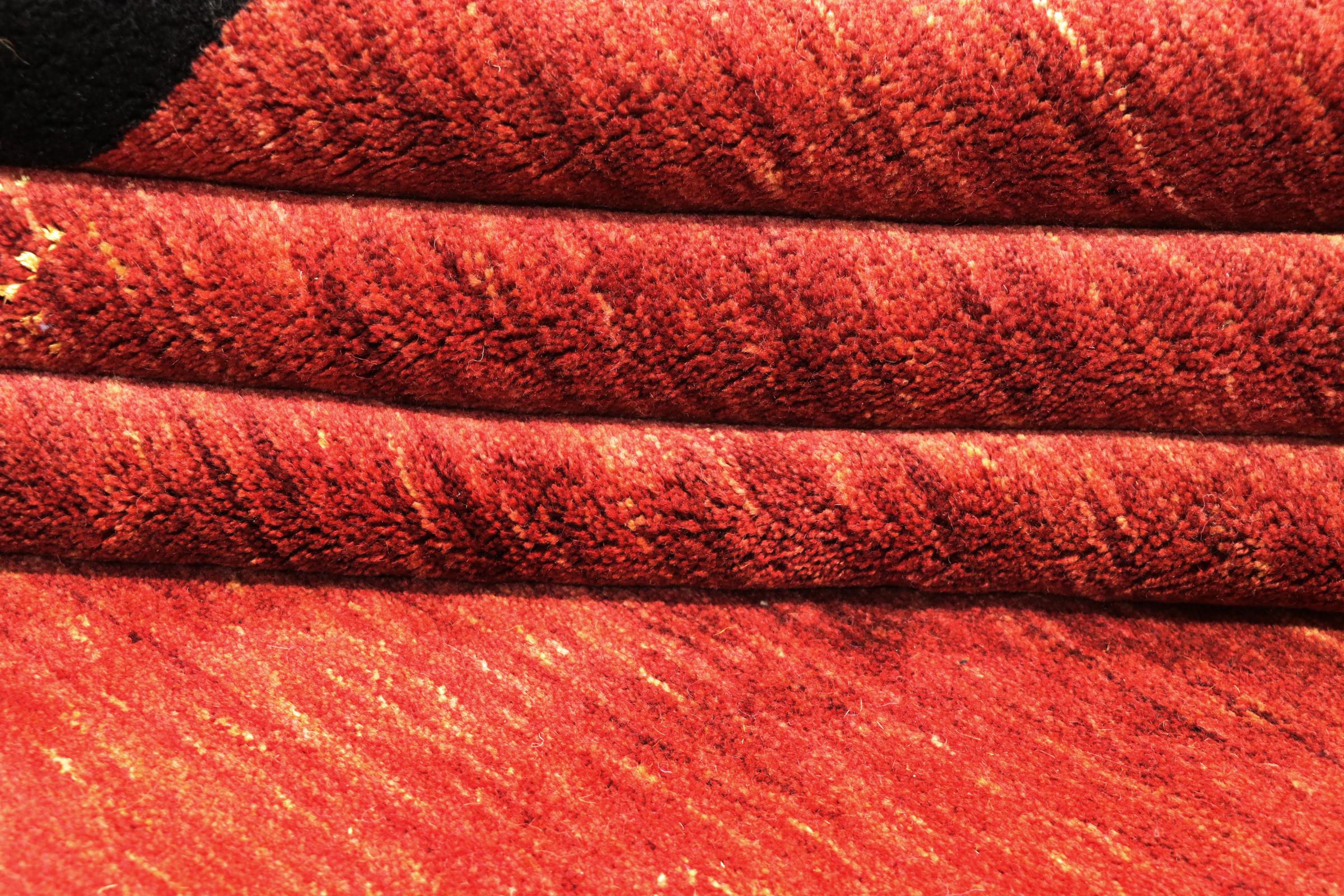Esta hermosa alfombra de Gabbeh fue anudada a mano en la India. Las alfombras indias de Gabbeh están hechas de suave lana de oveja, son cómodas para los pies y tienen propiedades de aislamiento térmico. La mayoría de sus diseños son simples y modernos atemporales. Se inspiraron en los pueblos nómadas, que dejaban fluir en las alfombras motivos muy simples de su entorno. Las alfombras de Gabbeh de la India no se acercan mucho a la calidad de las de Gabbeh de Persia, pero tienen una muy buena relación precio-rendimiento. Por lo tanto, son perfectamente adecuadas como alfombras anudadas a mano para principiantes.