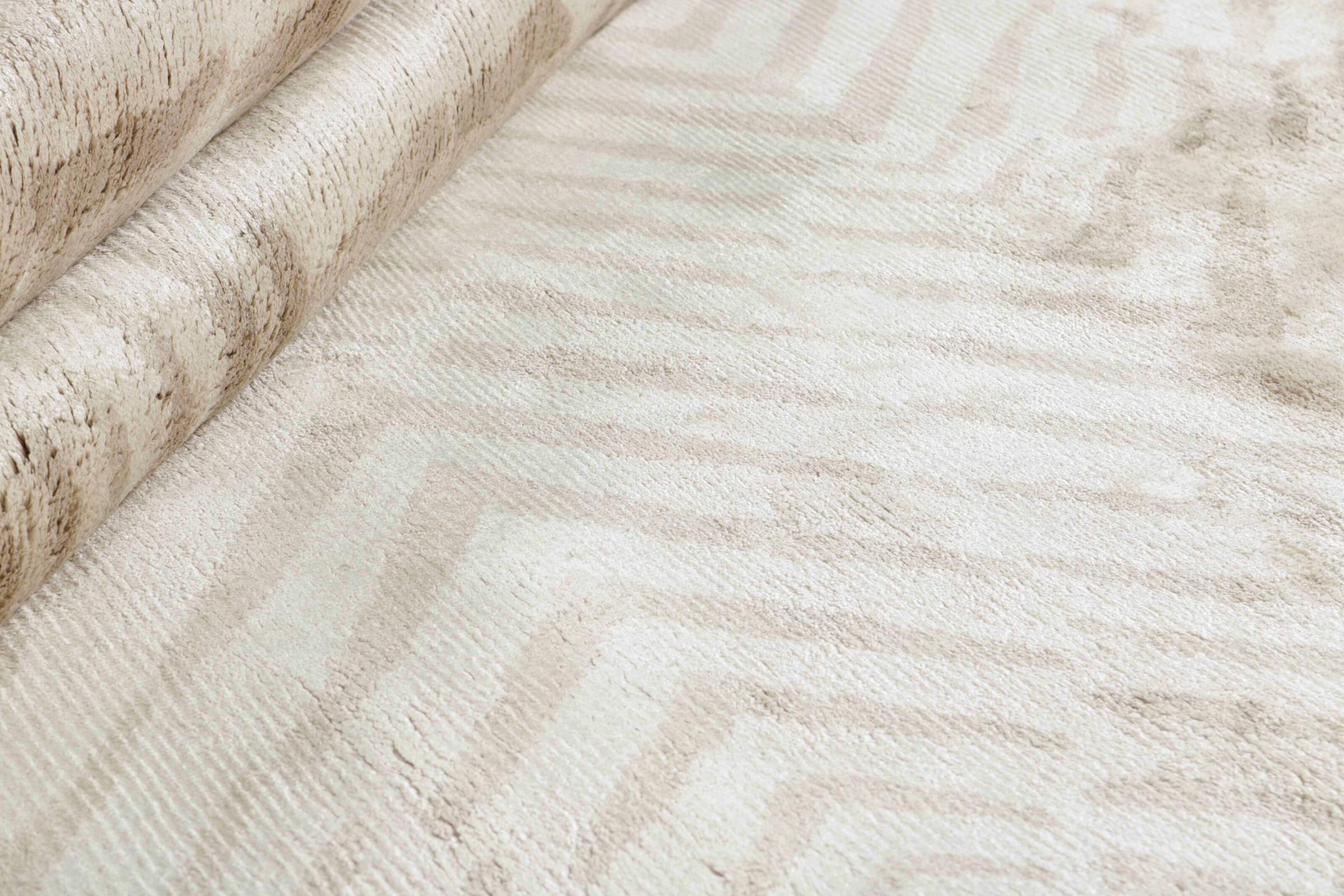 Esta alfombra de diseño Lunara confeccionada en fina seda/lana y/viscosa de bambú combina artesanía y elegancia. Esta alfombra anudada a mano tiene una textura suave y un brillo sutil que transformará tu espacio en un oasis de calma y sofisticación.