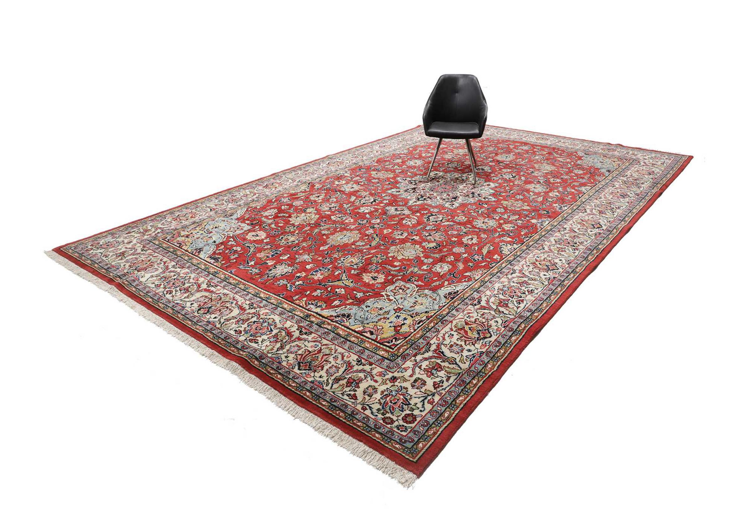 Esta alfombra está hecha de lana de oveja hilada a mano de la más alta calidad. Especialmente en Irán (antigua Persia), la lana de Afganistán y Pakistán sigue siendo hilada a mano antes de que comience el anudado de la alfombra. La lana ha demostrado ser un material natural y extremadamente resistente a lo largo de los siglos. Entre otras cosas, tiene propiedades repelentes de la suciedad y aislantes del calor. Al mismo tiempo, la lana es incomparablemente suave y tiene un brillo natural.