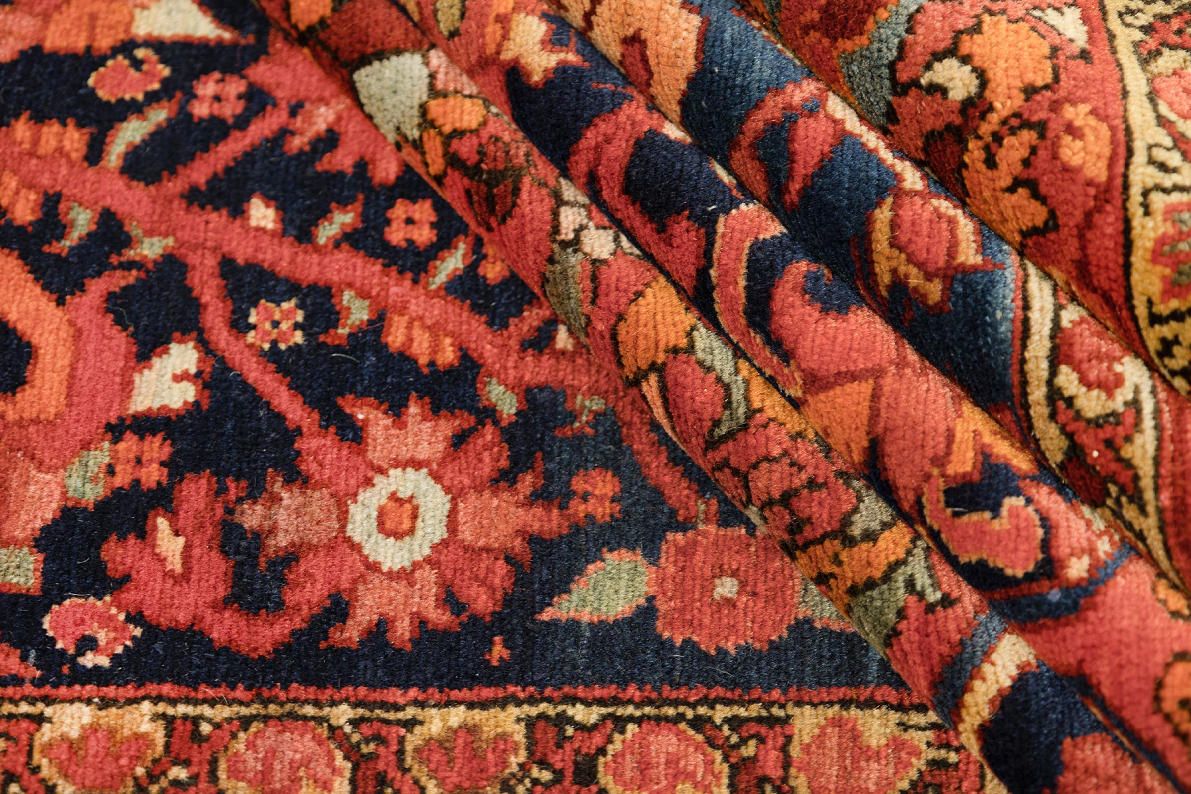 Esta alfombra de Malayer cambia completamente la apariencia de su hogar con sus hermosos colores y motivos que traen vida a su hogar, en todo el sentido de la palabra. Fue anudada en la ciudad de Malayer, situada entre las regiones Hamadán y Sarouk, muy conocidas por sus alfombras. Un ejemplar de verdadera calidad en la elaboración de las alfombras persas.