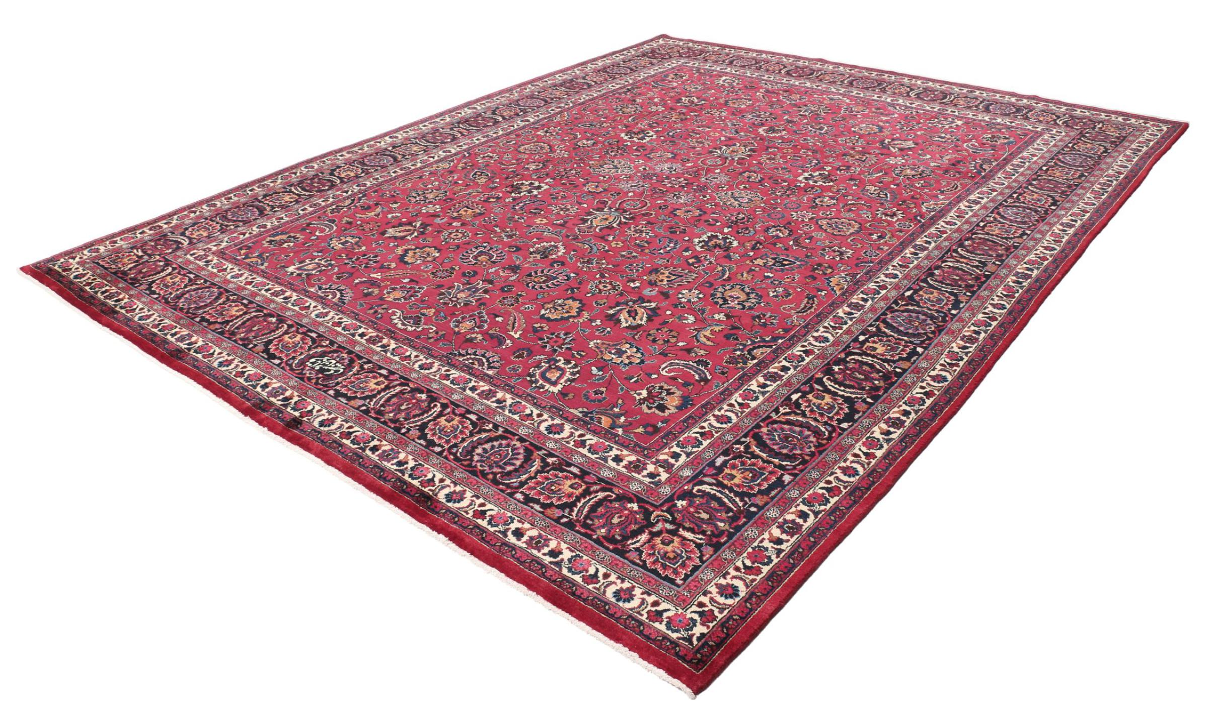 Alfombra número: 309061009574071 Tamaño: 381x296 cm Espesor: alrededor de 12 mm Nudos: 128 000 - 160 000 / m² Elaboración: Anudado a mano Crespón: Lana hilada a mano Urdimbre: Algodón Origen: Persia / Iran Edad: Nuevo Peso: alrededor de 39 kg También conocido como Maschad, Meshed Cantidad en stock: Única - Solo 1 en stock