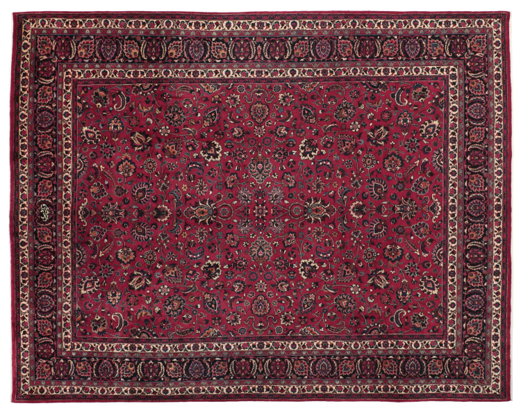 Mashhad es una ciudad de millones en el este de Irán. Es una de las ciudades más sagradas del Islam con un gran número de peregrinos que visitan la tumba del octavo Imán. Las alfombras persas anudadas a mano de Mashhad suelen ser más grandes que el promedio. Normalmente tienen un medallón en el centro y son de color oscuro.