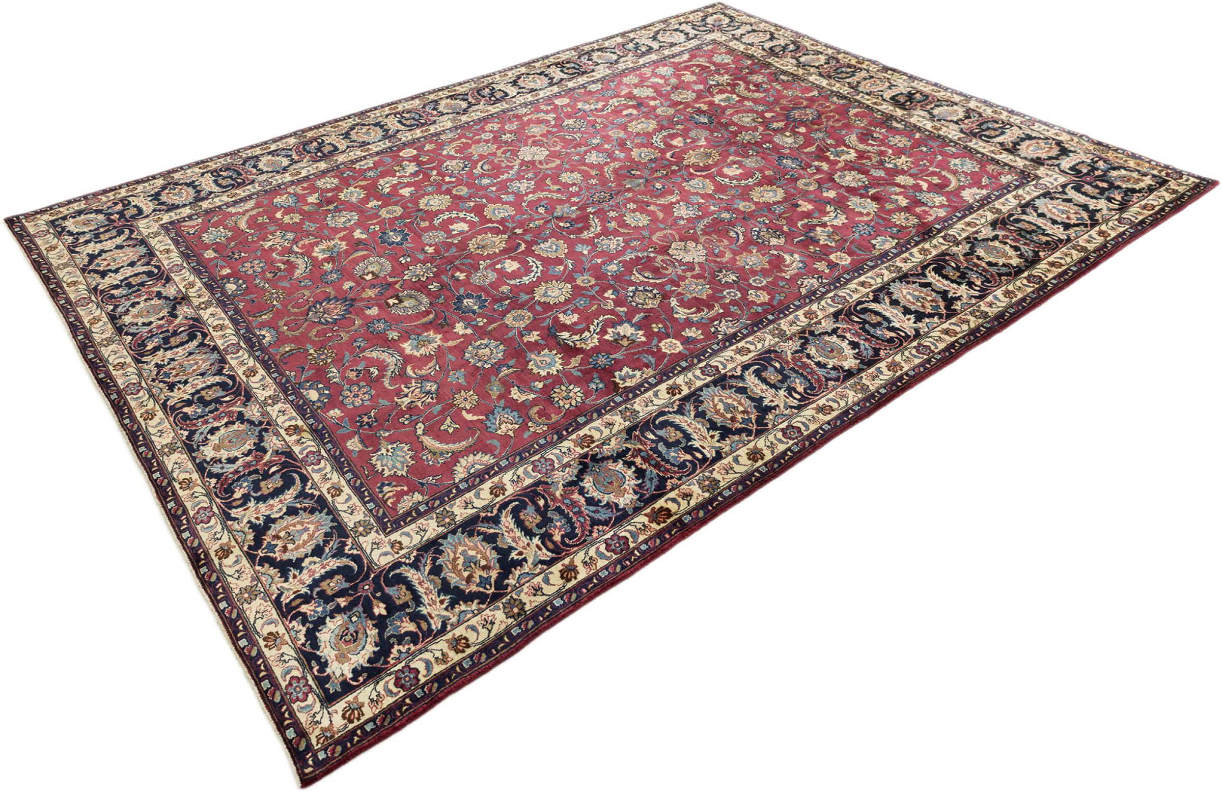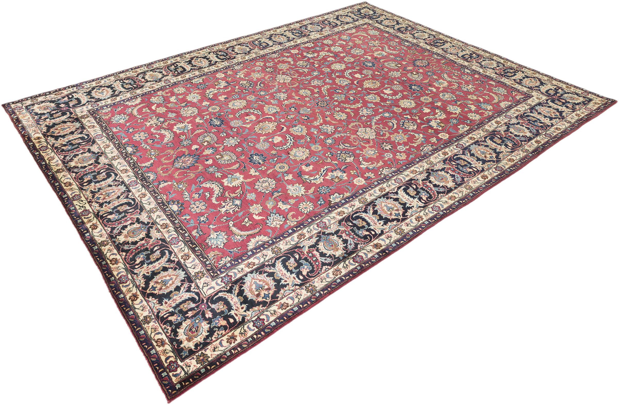 Alfombra número: 31662700458579 Tamaño: 384x294 cm Espesor: alrededor de 12 mm Nudos: 160 000 - 200 000 / m² Elaboración: Anudado a mano Crespón: Lana hilada a mano Urdimbre: Algodón Estado / Conservación Perfecta Origen: Persia / Iran Edad: Antigua, mayor de 80 años Peso: alrededor de 40 kg También conocido como Maschad, Meshed Cantidad en stock: Única - Solo 1 en stock