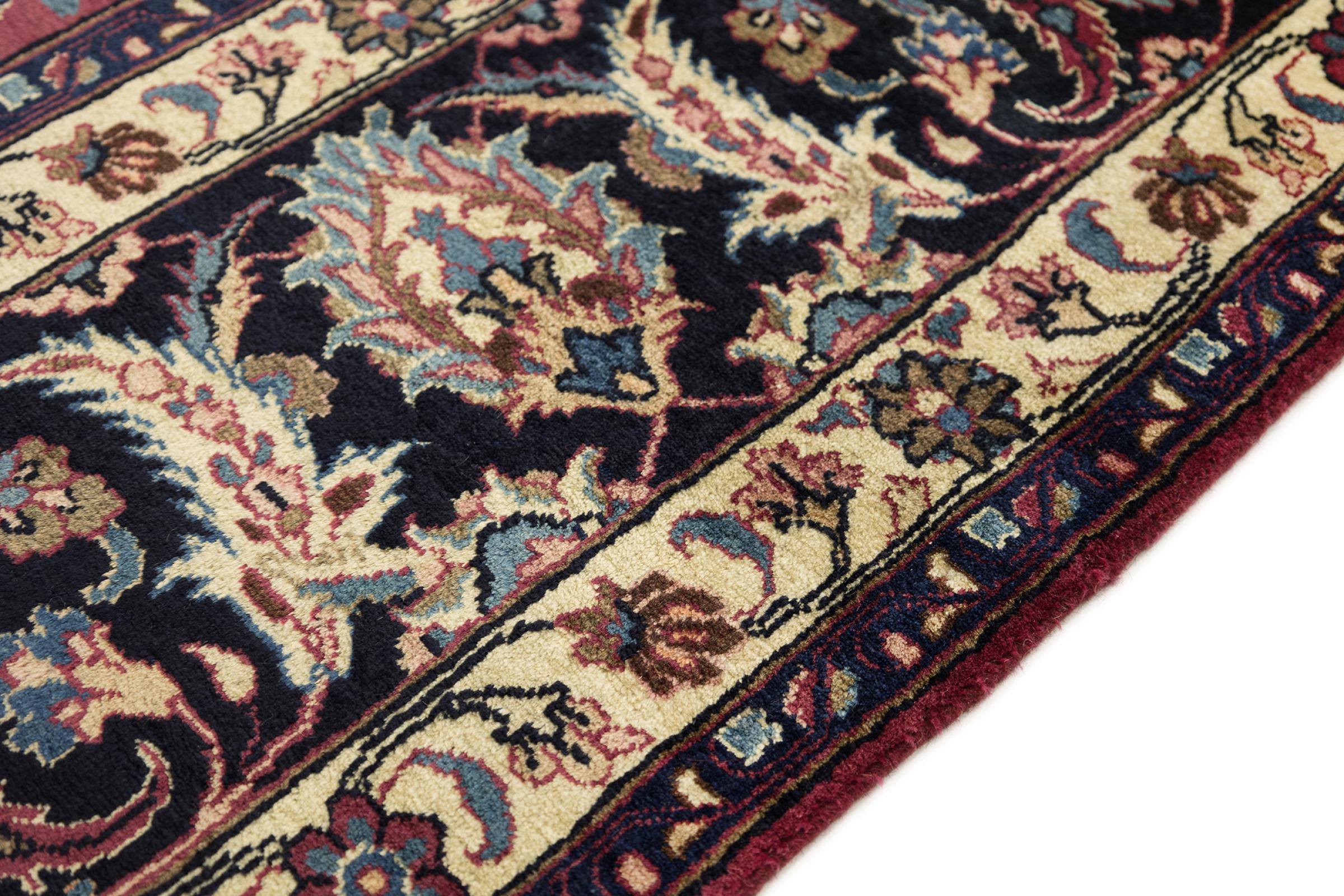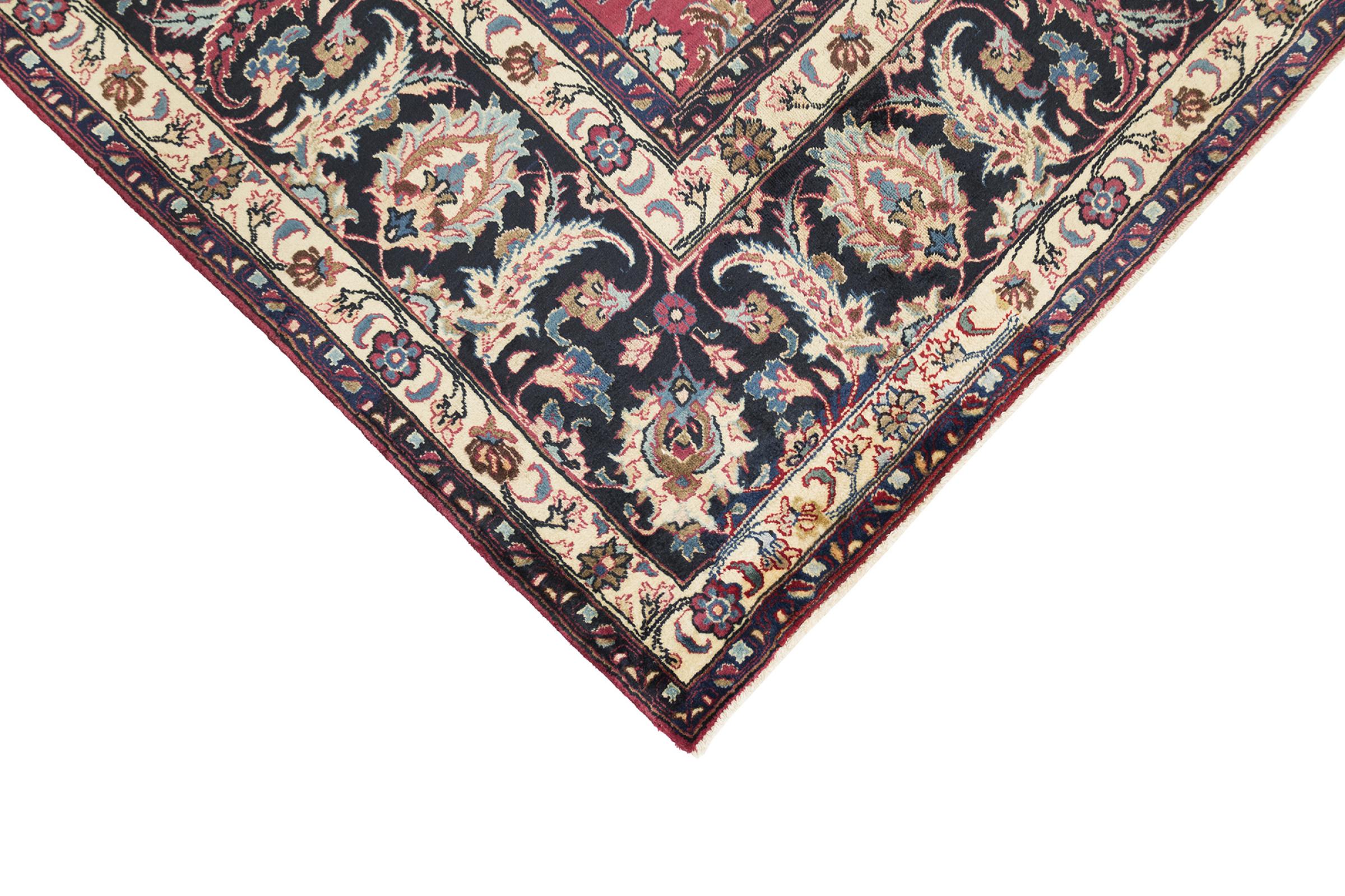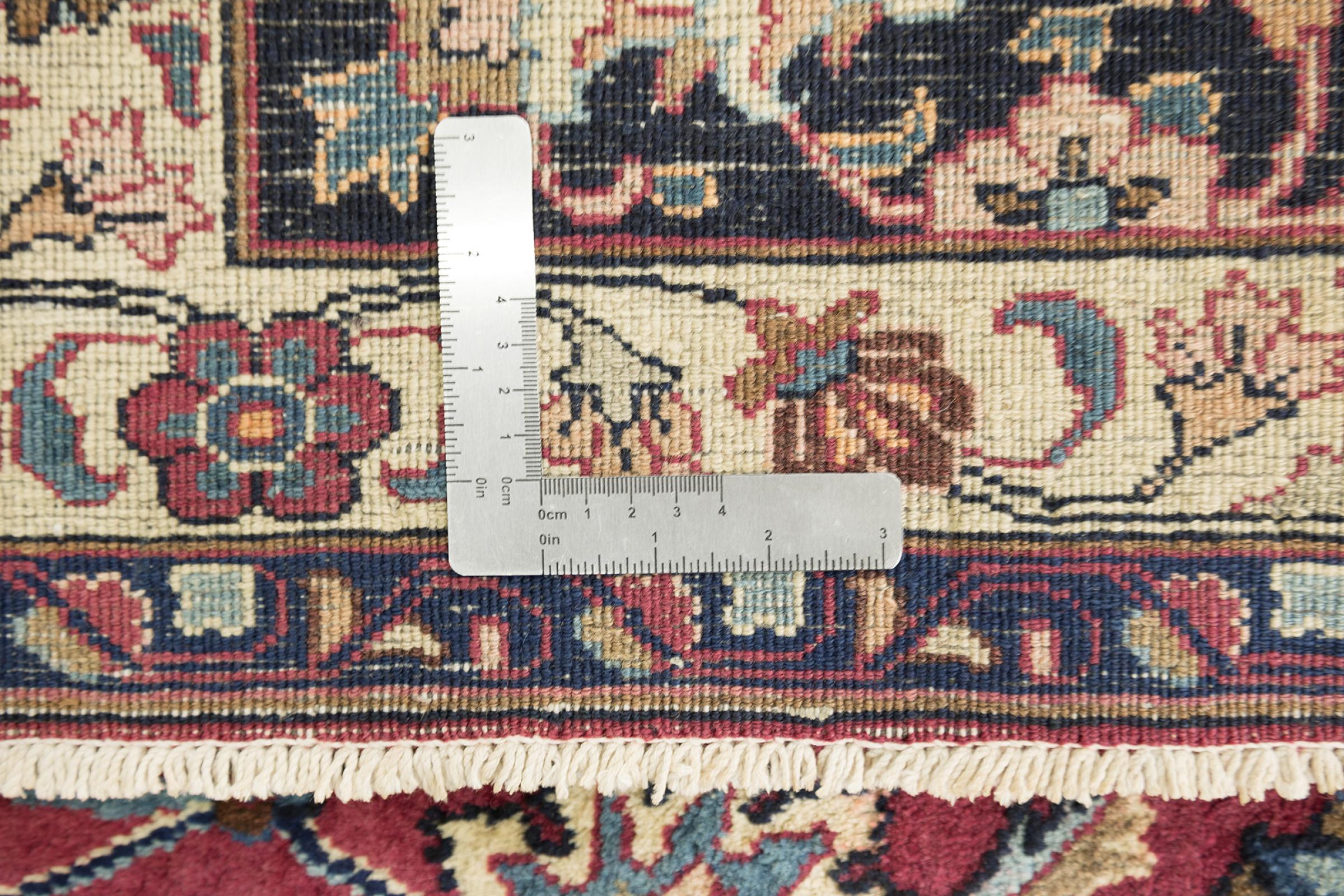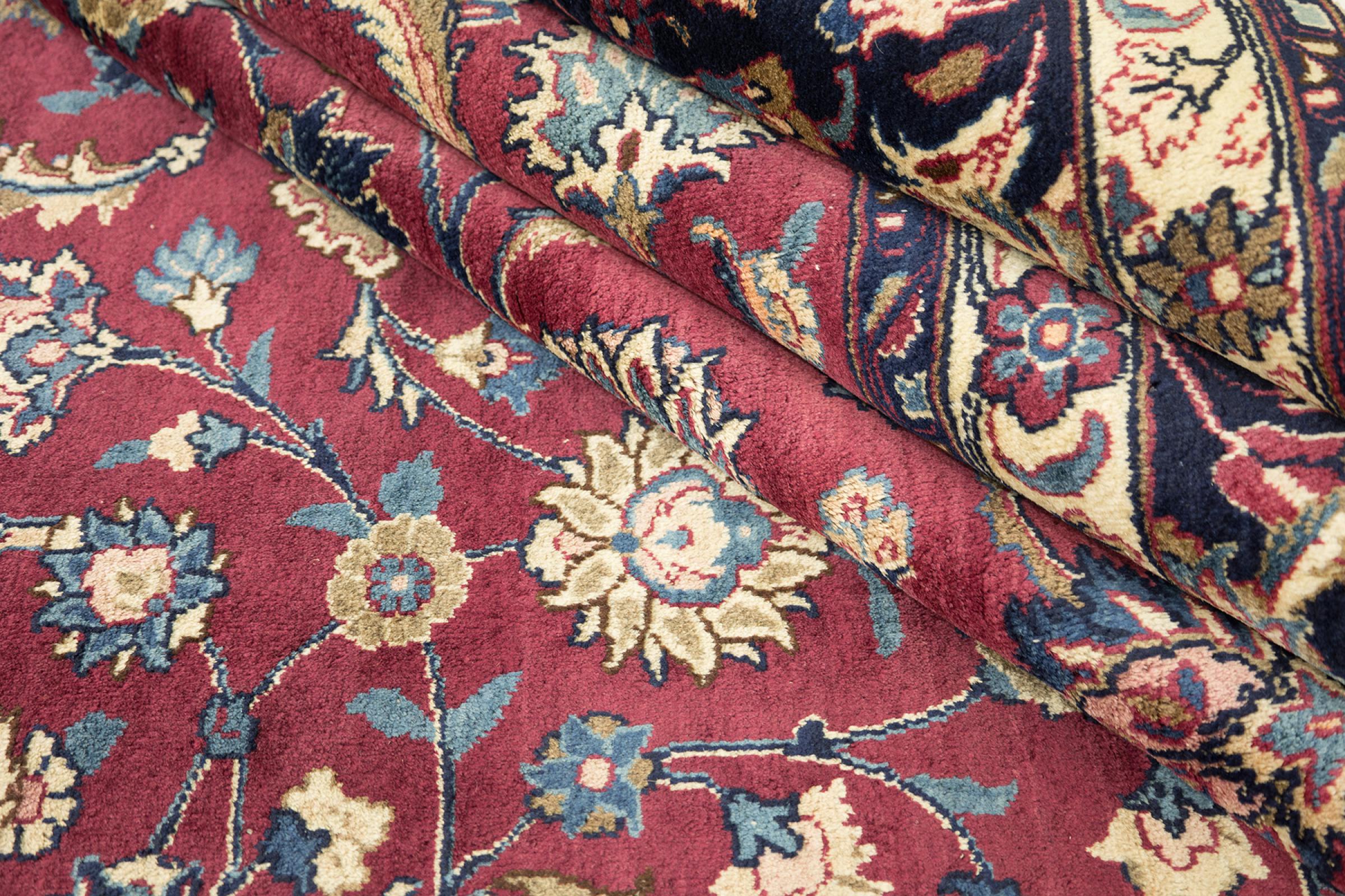 Esta alfombra de Mashhad, una de las mayores ciudades de Irán, se anudó a mano con pura lana natural. Millones de personas peregrinan cada año a esta ciudad sagrada persa. Las alfombras de Mashhad son conocidas por sus tamaños inusuales y por su lana de altísima calidad.