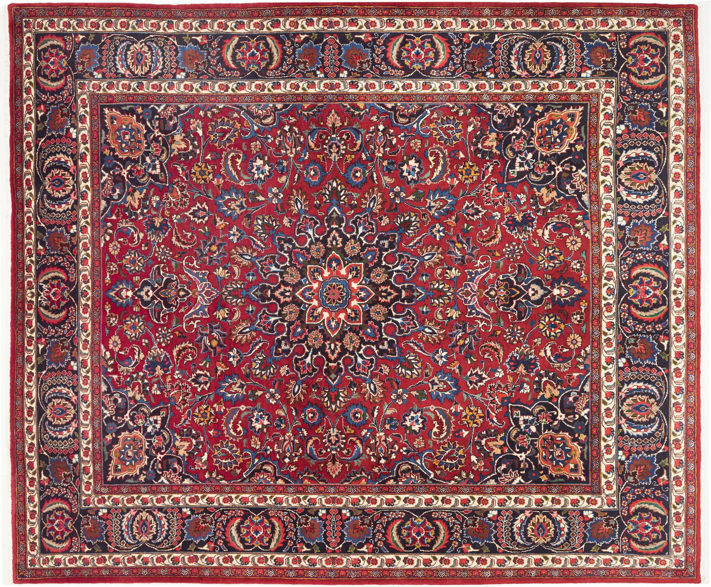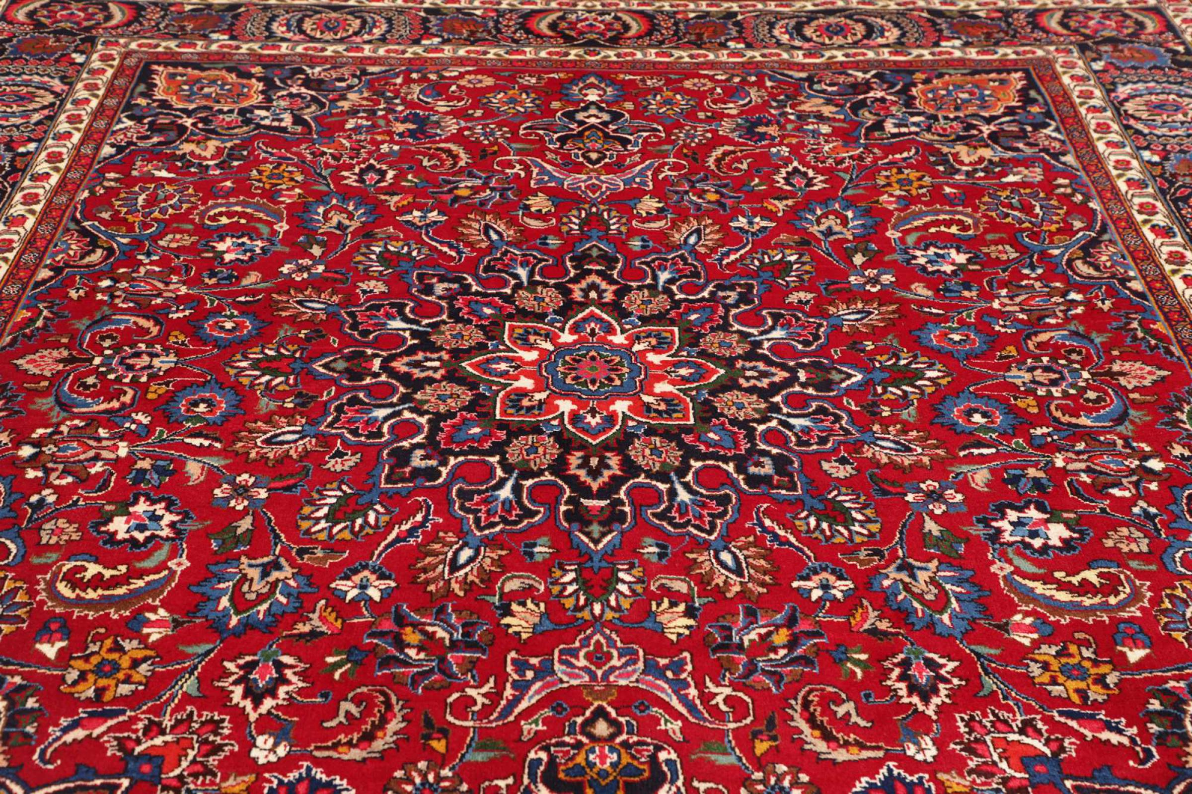 Alfombra número: 312537004823679 Tamaño: 296x249 cm Espesor: alrededor de 12 mm Nudos: 128 000 - 160 000 / m² Elaboración: Anudado a mano Crespón: Lana hilada a mano Urdimbre: Algodón Origen: Persia / Iran Edad: Nuevo Peso: alrededor de 26 kg También conocido como Maschad, Meshed Cantidad en stock: Única - Solo 1 en stock
