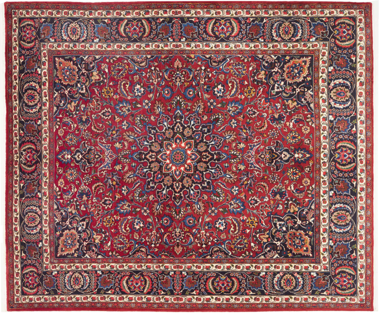 Mashhad es una ciudad de millones en el este de Irán. Es una de las ciudades más sagradas del Islam con un gran número de peregrinos que visitan la tumba del octavo Imán. Las alfombras persas anudadas a mano de Mashhad suelen ser más grandes que el promedio. Normalmente tienen un medallón en el centro y son de color oscuro.