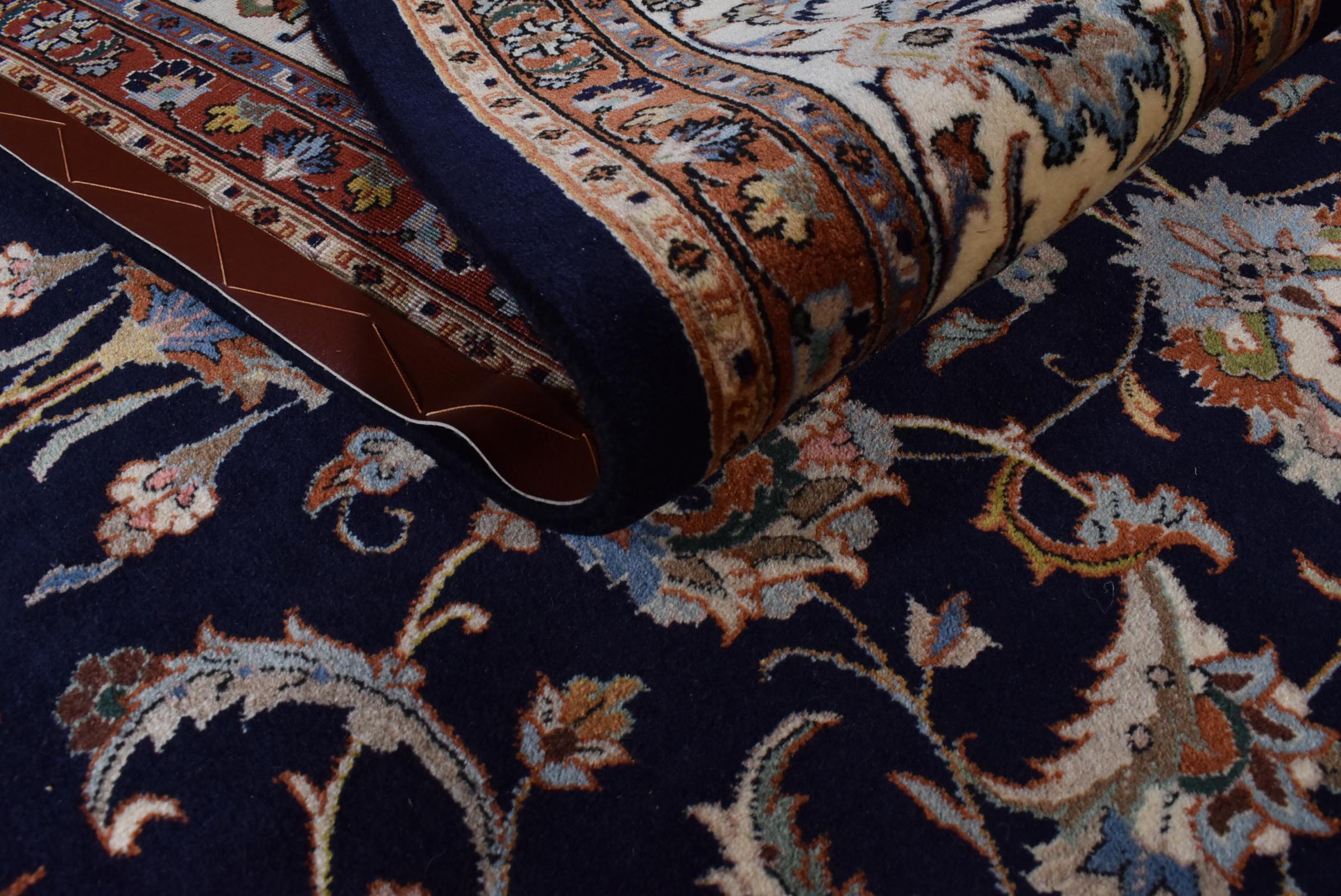 Esta alfombra está hecha de lana de oveja hilada a mano de la más alta calidad. Especialmente en Irán (antigua Persia), la lana de Afganistán y Pakistán sigue siendo hilada a mano antes de que comience el anudado de la alfombra. La lana ha demostrado ser un material natural y extremadamente resistente a lo largo de los siglos. Entre otras cosas, tiene propiedades repelentes de la suciedad y aislantes del calor. Al mismo tiempo, la lana es incomparablemente suave y tiene un brillo natural.