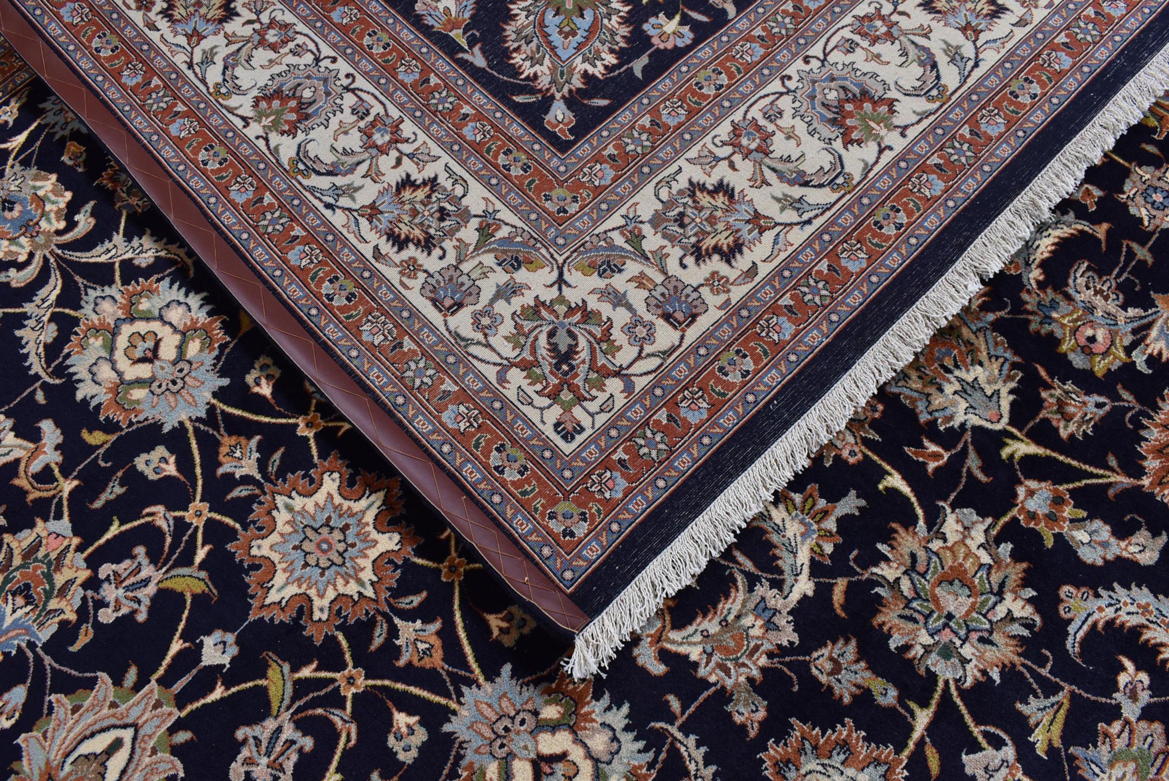 Esta alfombra de Mashhad, una de las mayores ciudades de Irán, se anudó a mano con pura lana natural. Millones de personas peregrinan cada año a esta ciudad sagrada persa. Las alfombras de Mashhad son conocidas por sus tamaños inusuales y por su lana de altísima calidad.