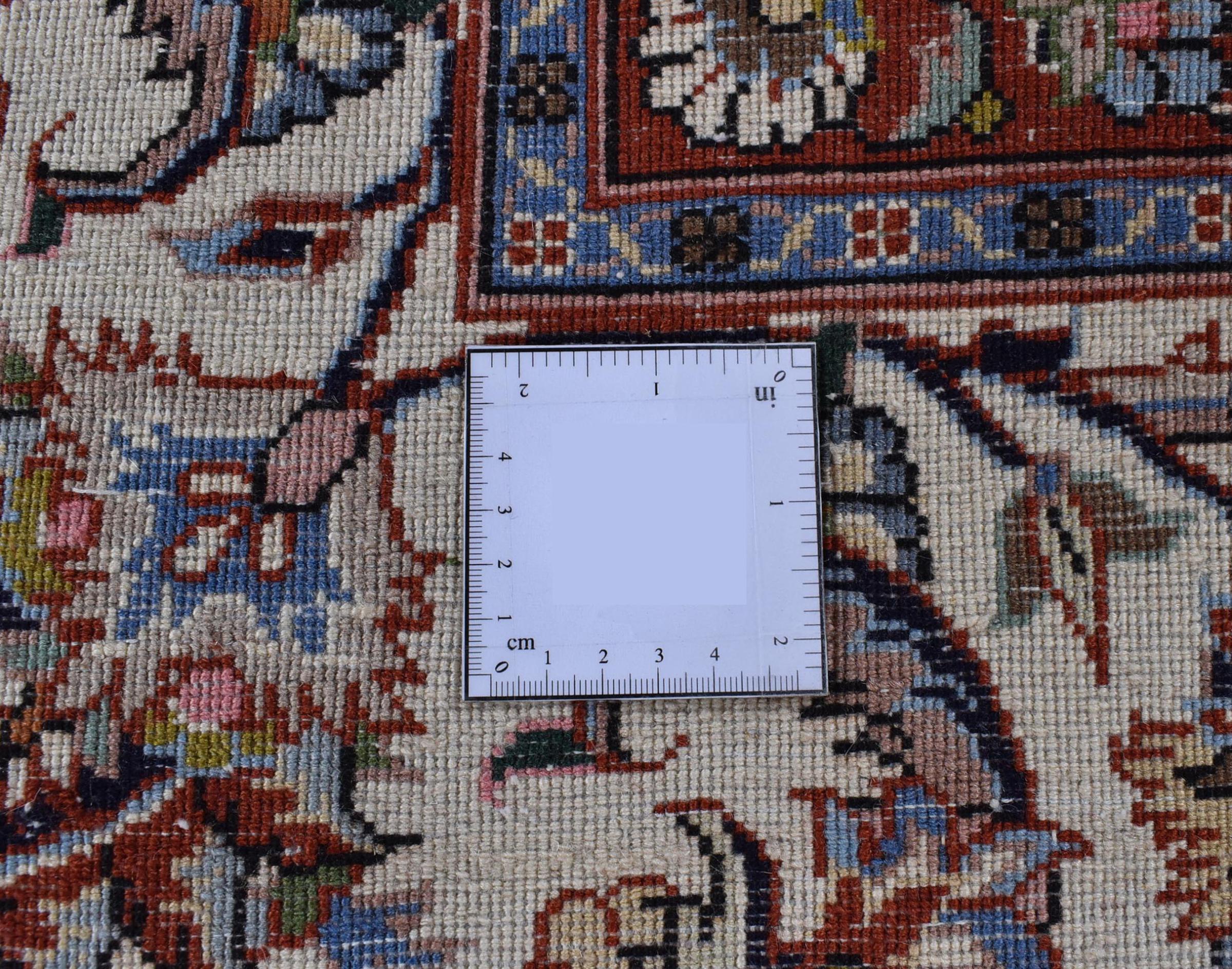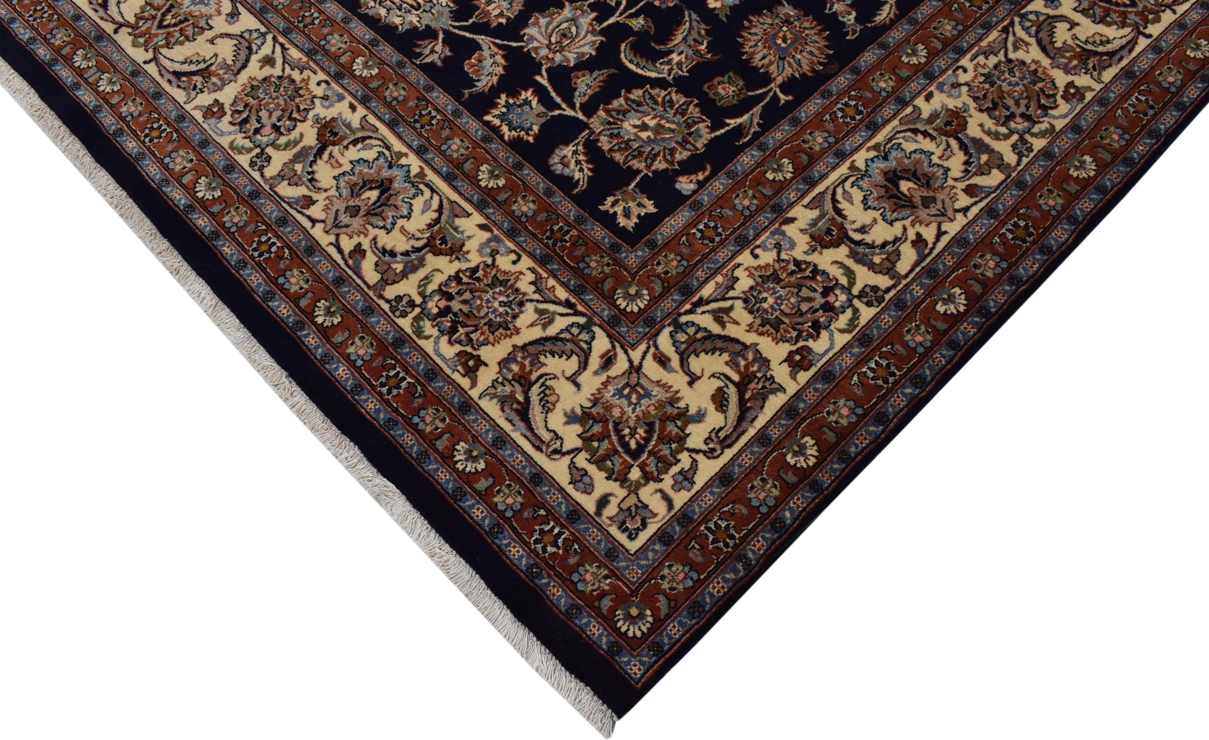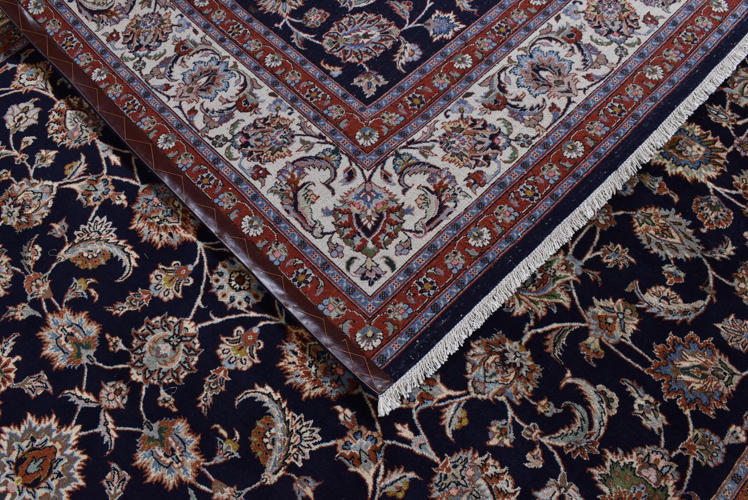 Esta alfombra de Mashhad, una de las mayores ciudades de Irán, se anudó a mano con pura lana natural. Millones de personas peregrinan cada año a esta ciudad sagrada persa. Las alfombras de Mashhad son conocidas por sus tamaños inusuales y por su lana de altísima calidad.
