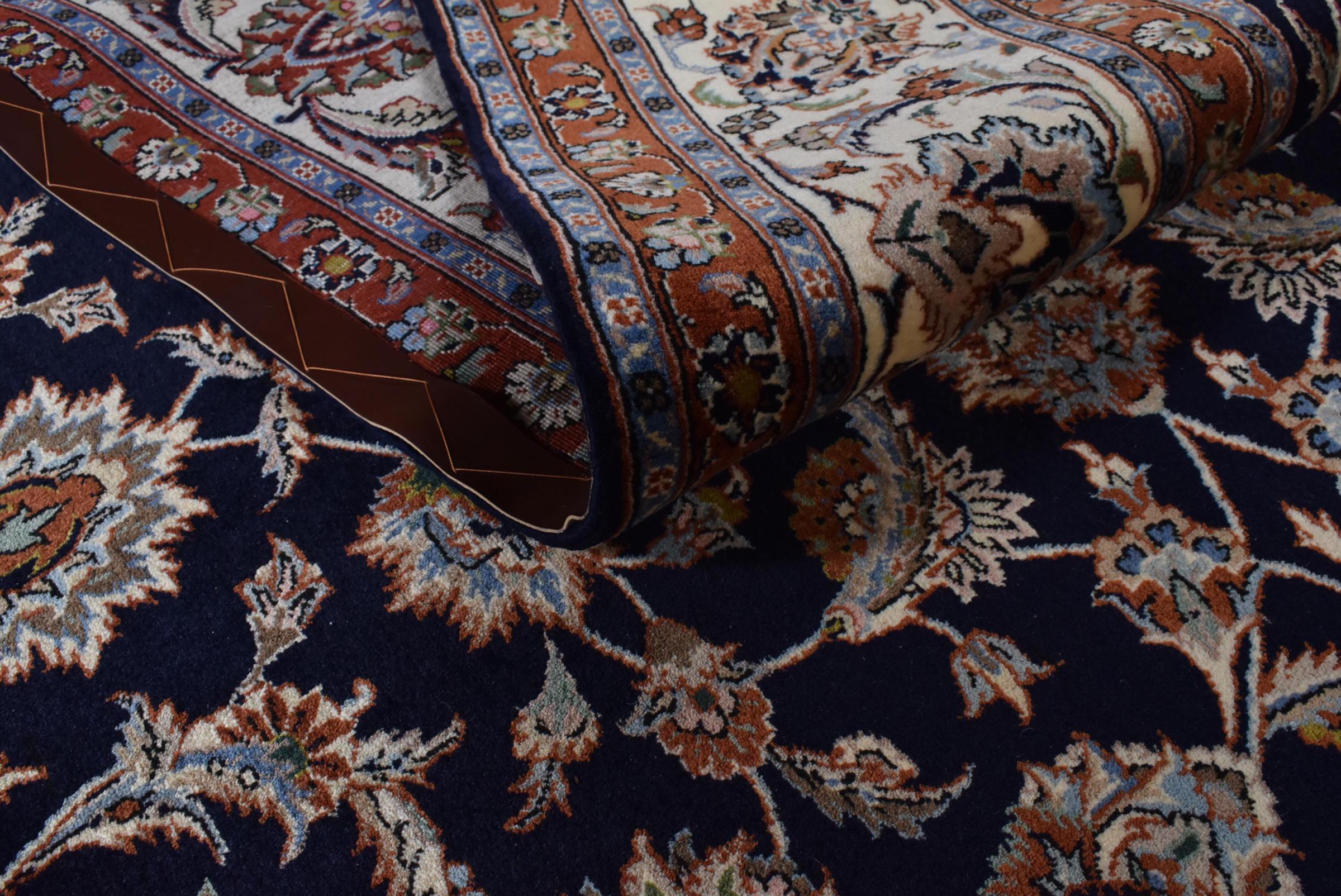 Esta alfombra está hecha de lana de oveja hilada a mano de la más alta calidad. Especialmente en Irán (antigua Persia), la lana de Afganistán y Pakistán sigue siendo hilada a mano antes de que comience el anudado de la alfombra. La lana ha demostrado ser un material natural y extremadamente resistente a lo largo de los siglos. Entre otras cosas, tiene propiedades repelentes de la suciedad y aislantes del calor. Al mismo tiempo, la lana es incomparablemente suave y tiene un brillo natural.