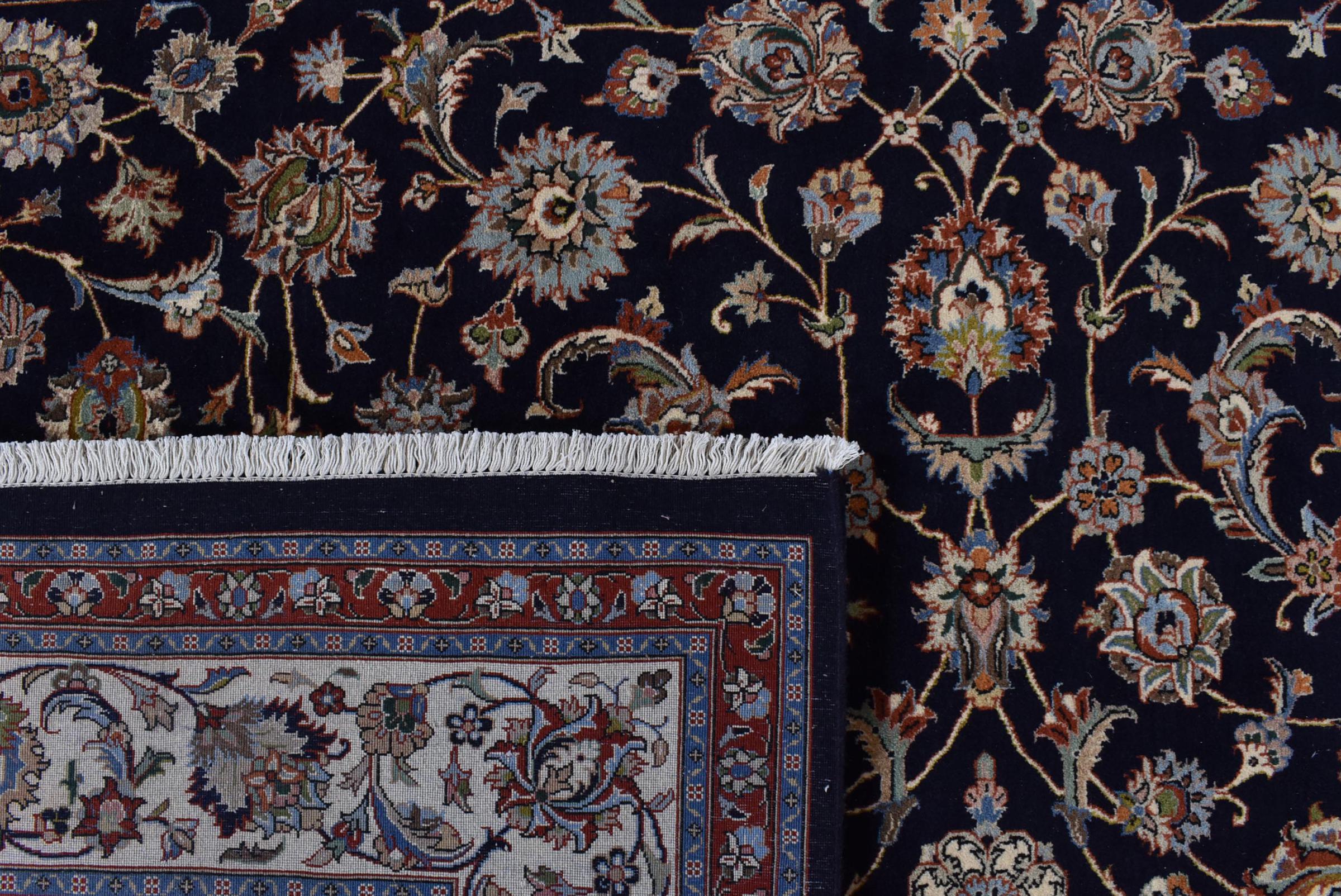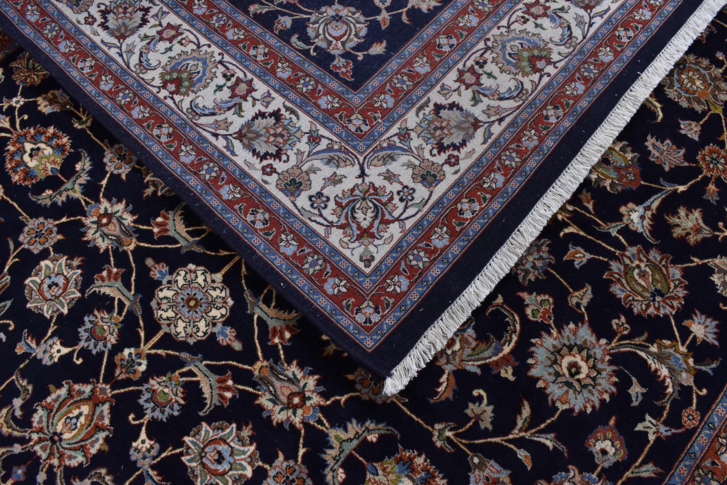Esta alfombra de Mashhad, una de las mayores ciudades de Irán, se anudó a mano con pura lana natural. Millones de personas peregrinan cada año a esta ciudad sagrada persa. Las alfombras de Mashhad son conocidas por sus tamaños inusuales y por su lana de altísima calidad.