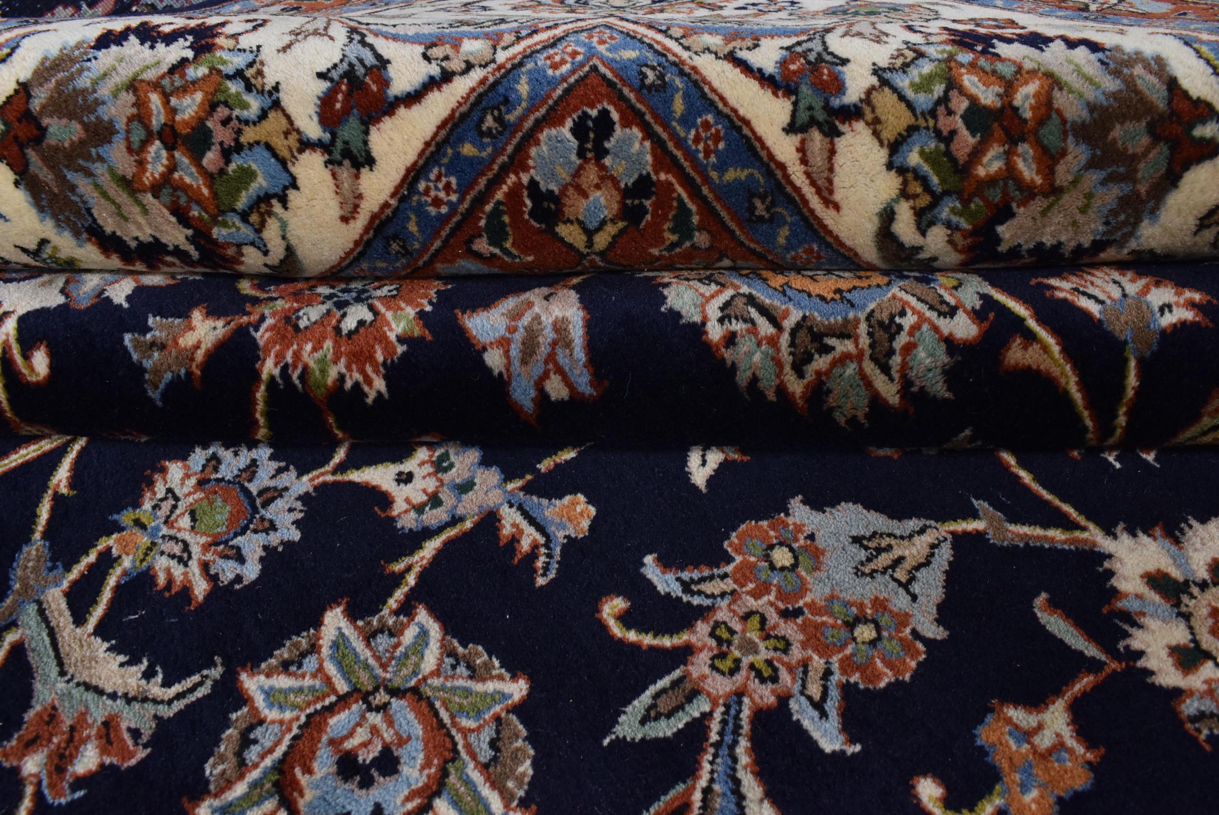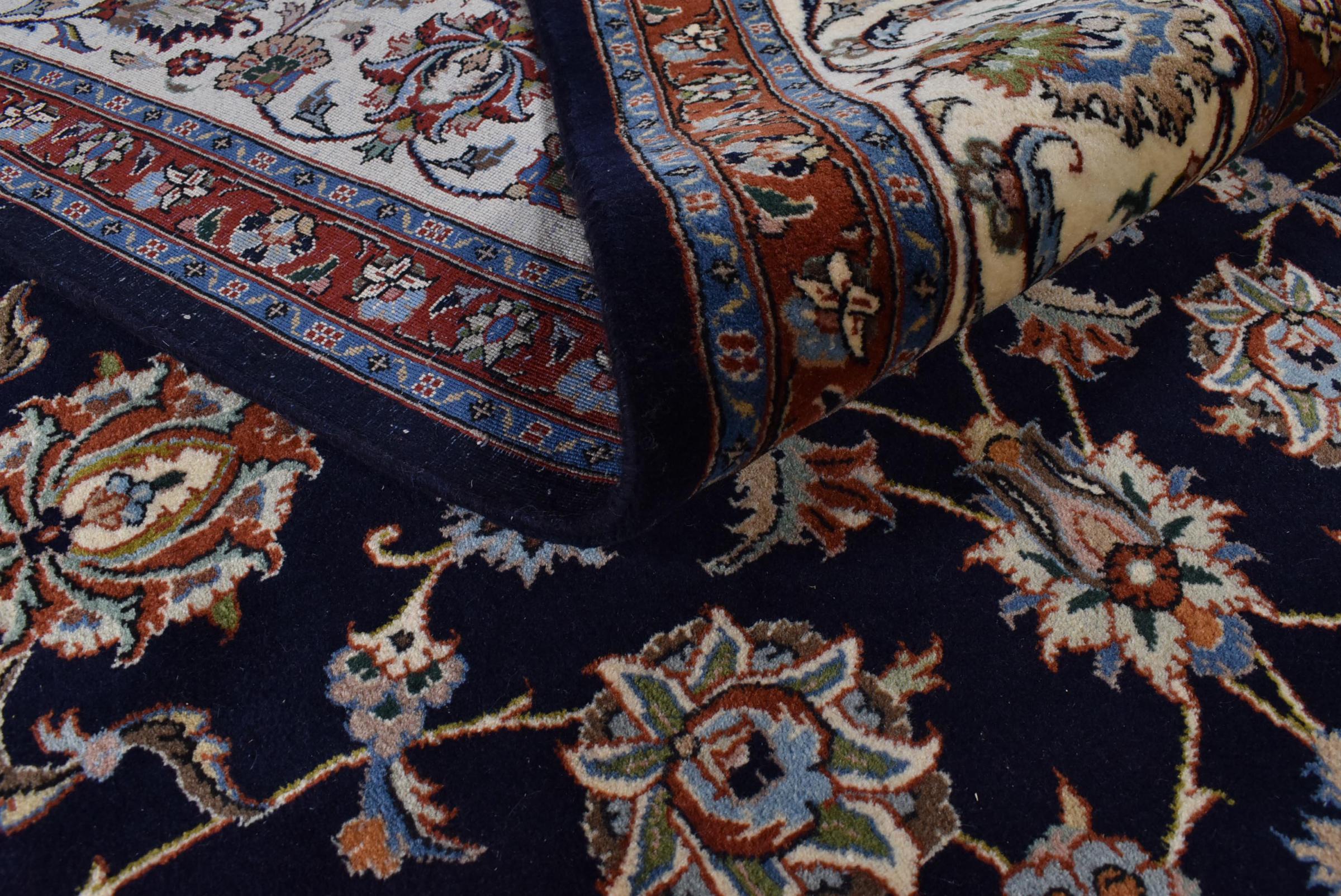 Esta alfombra está hecha de lana de oveja hilada a mano de la más alta calidad. Especialmente en Irán (antigua Persia), la lana de Afganistán y Pakistán sigue siendo hilada a mano antes de que comience el anudado de la alfombra. La lana ha demostrado ser un material natural y extremadamente resistente a lo largo de los siglos. Entre otras cosas, tiene propiedades repelentes de la suciedad y aislantes del calor. Al mismo tiempo, la lana es incomparablemente suave y tiene un brillo natural.