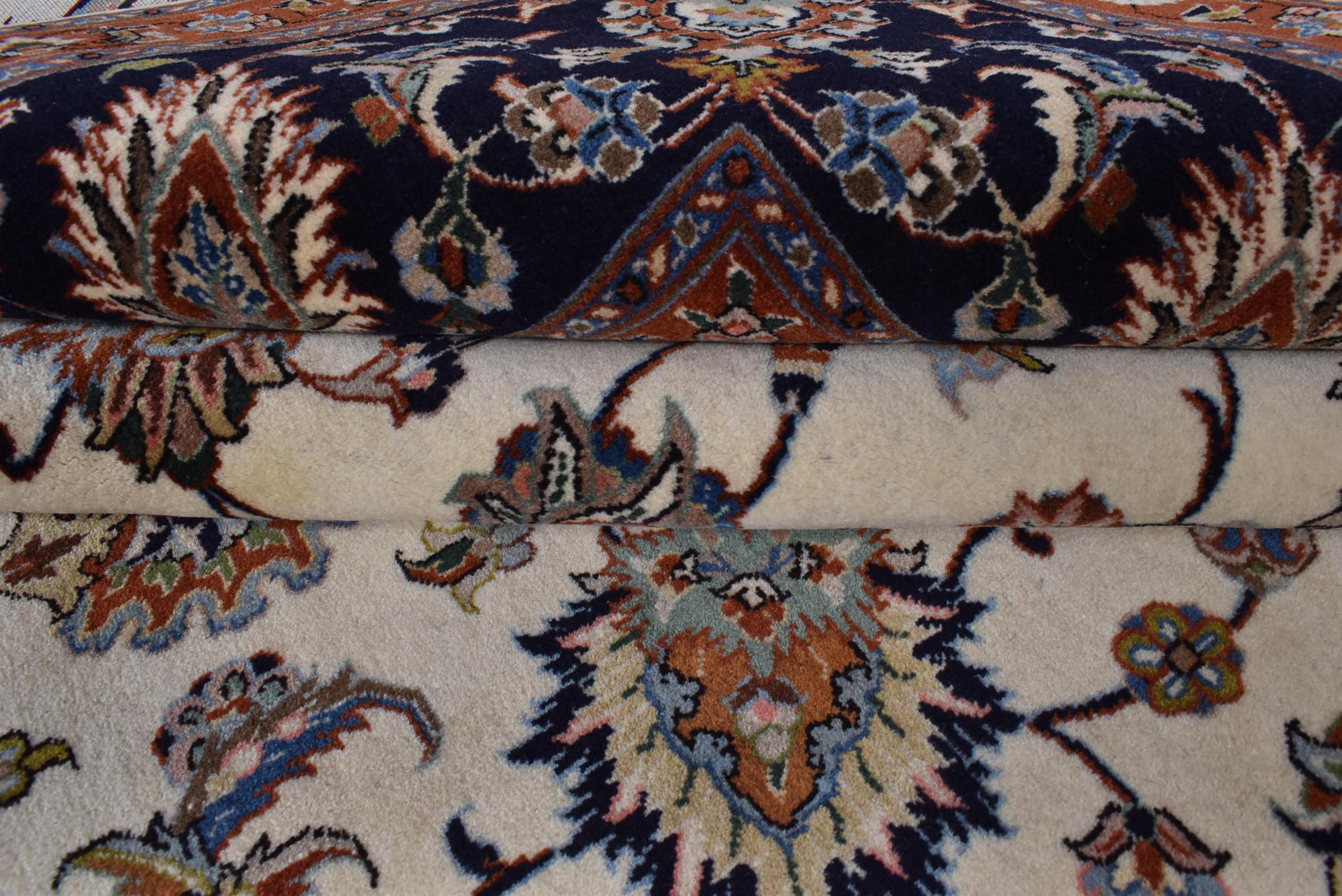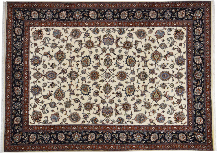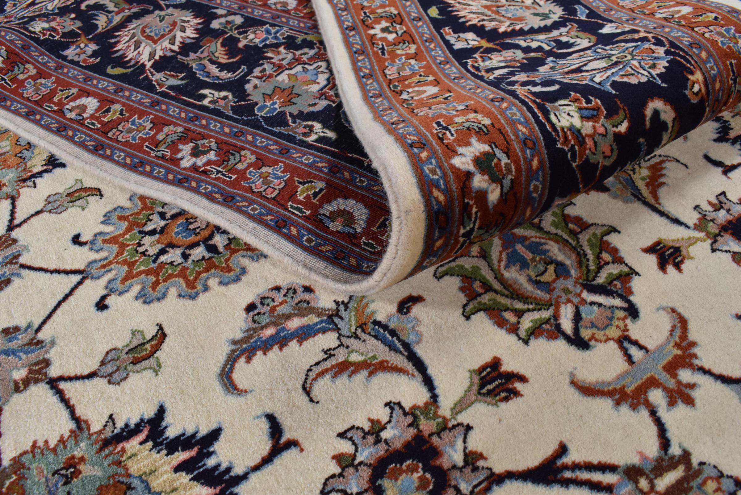 Esta alfombra está hecha de lana de oveja hilada a mano de la más alta calidad. Especialmente en Irán (antigua Persia), la lana de Afganistán y Pakistán sigue siendo hilada a mano antes de que comience el anudado de la alfombra. La lana ha demostrado ser un material natural y extremadamente resistente a lo largo de los siglos. Entre otras cosas, tiene propiedades repelentes de la suciedad y aislantes del calor. Al mismo tiempo, la lana es incomparablemente suave y tiene un brillo natural.