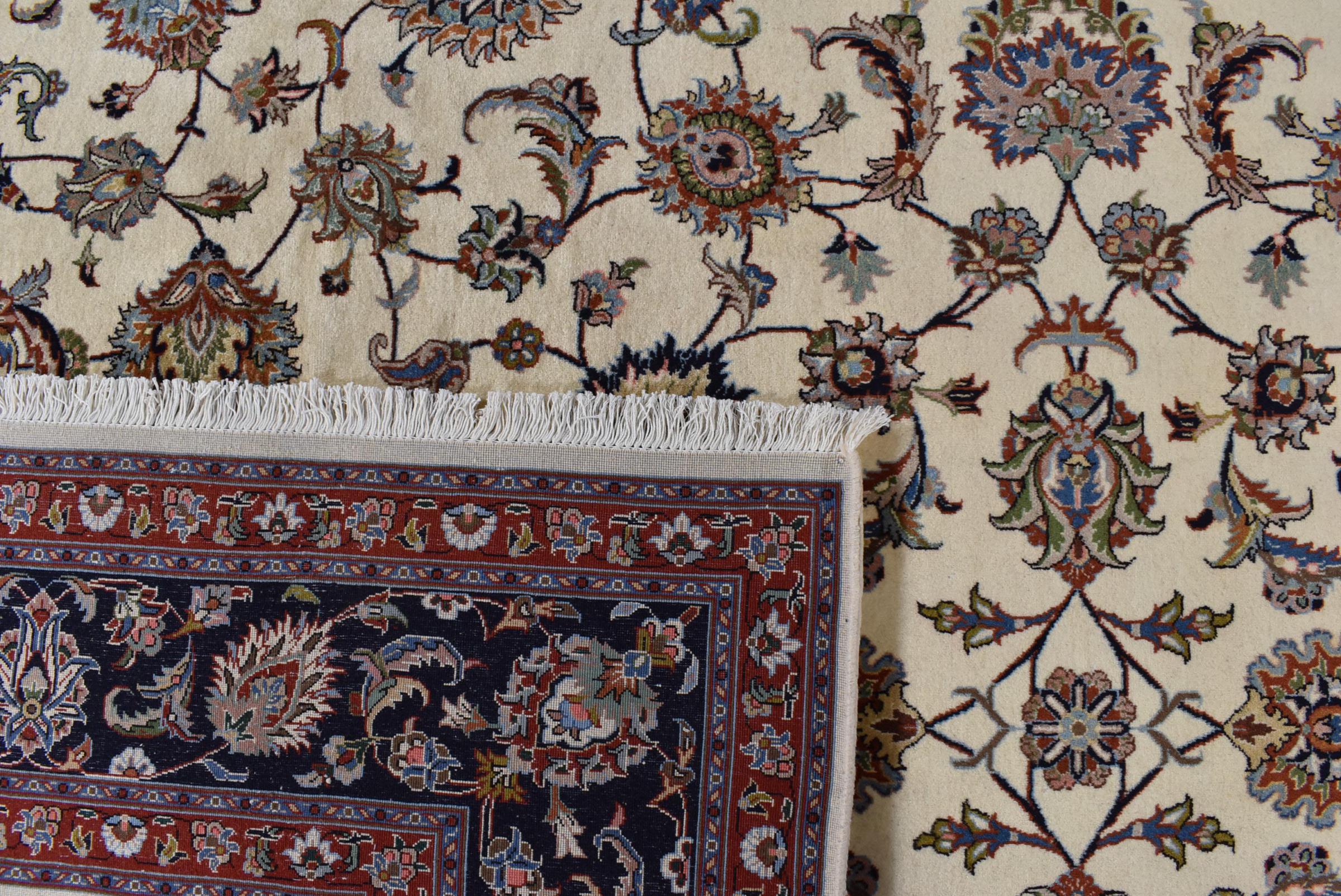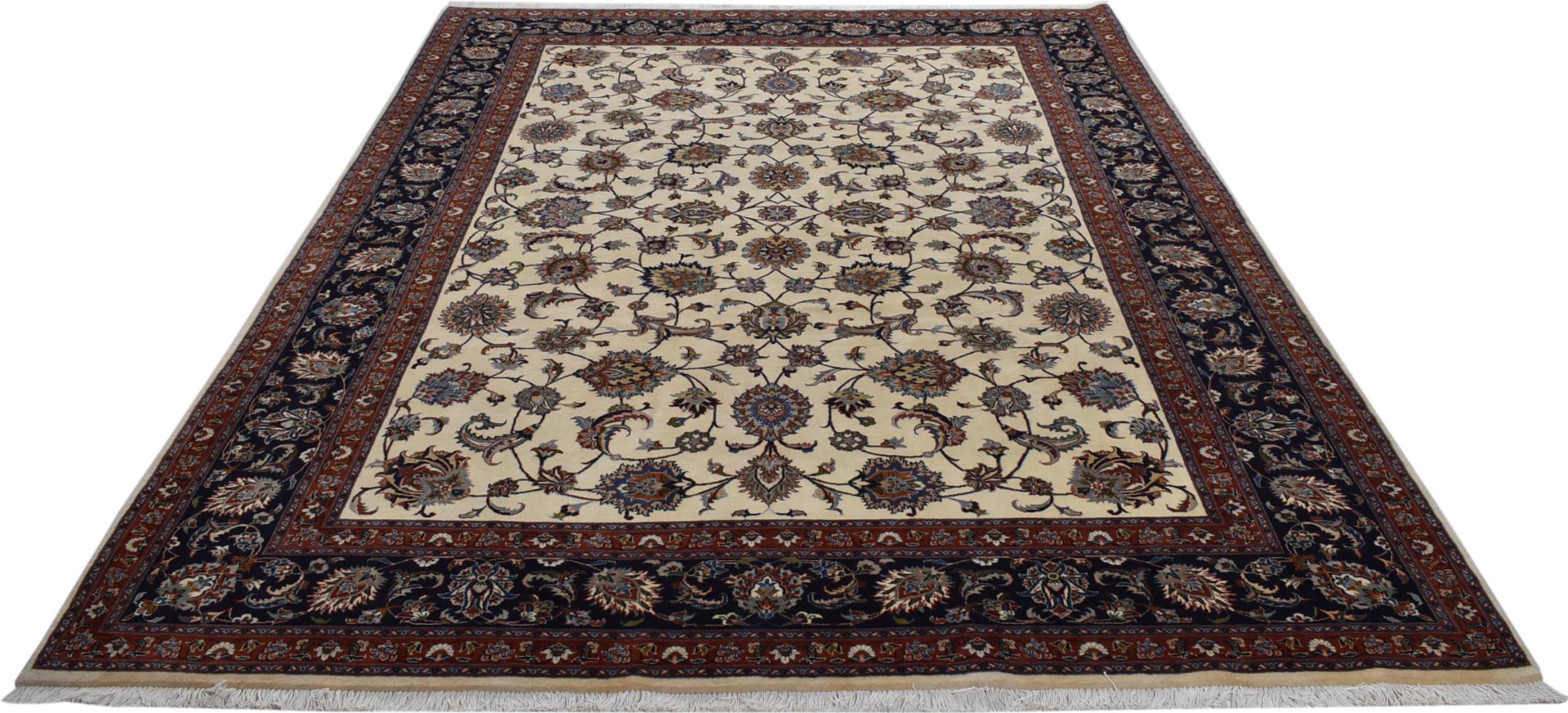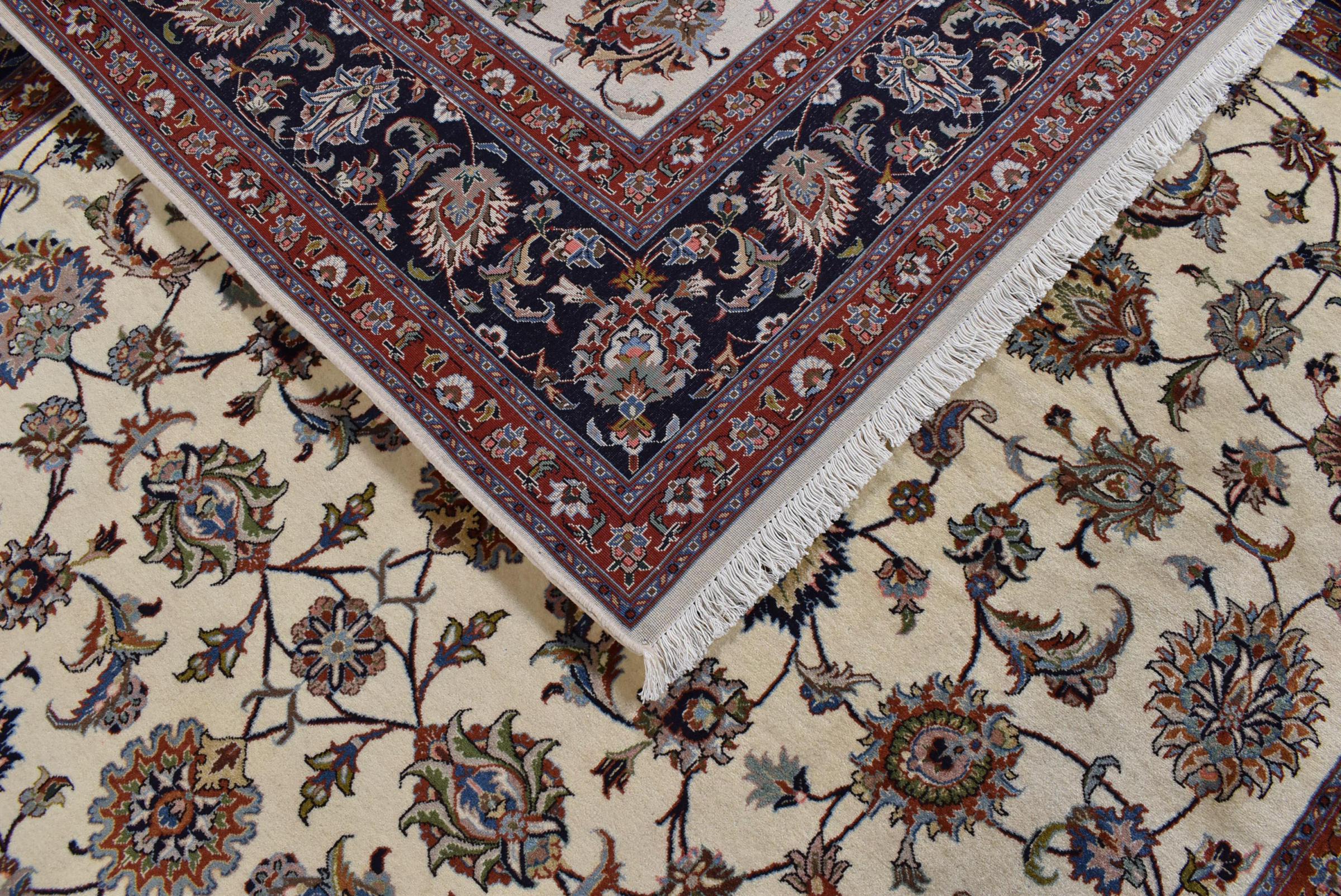 Alfombra número: 30972100606664 Tamaño: 339x246 cm Espesor: alrededor de 12 mm Nudos: 320 000 - 360 000 / m² Elaboración: Anudado a mano Crespón: Lana hilada a mano Urdimbre: Algodón Origen: Persia / Iran Edad: Nuevo Peso: alrededor de 29 kg También conocido como Maschad, Meshed Cantidad en stock: Única - Solo 1 en stock
