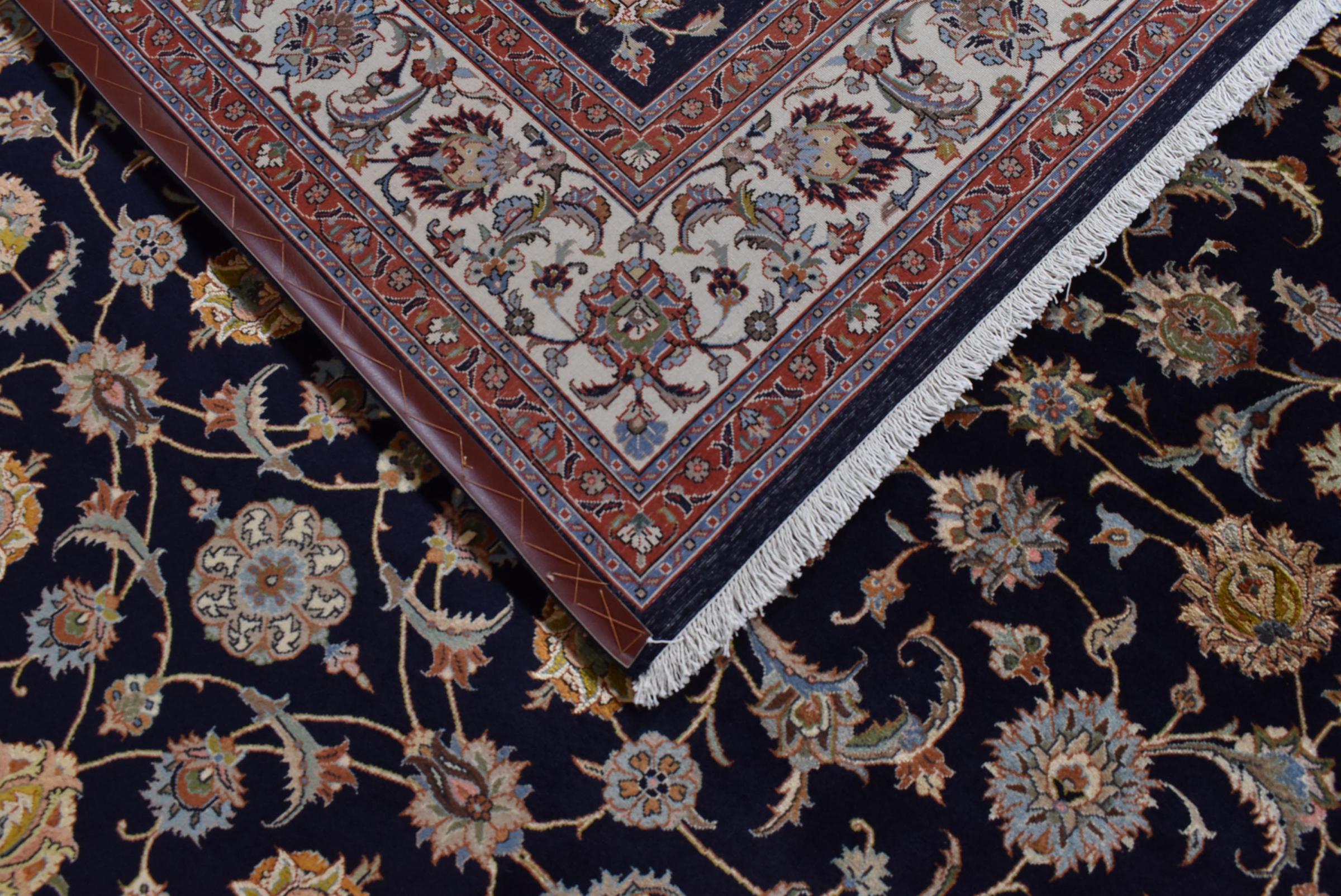 Alfombra número: 30972300589180 Tamaño: 339x248 cm Espesor: alrededor de 12 mm Nudos: 320 000 - 360 000 / m² Elaboración: Anudado a mano Crespón: Lana con seda Urdimbre: Algodón Origen: Persia / Iran Edad: Nuevo Peso: alrededor de 29 kg También conocido como Maschad, Meshed Cantidad en stock: Única - Solo 1 en stock