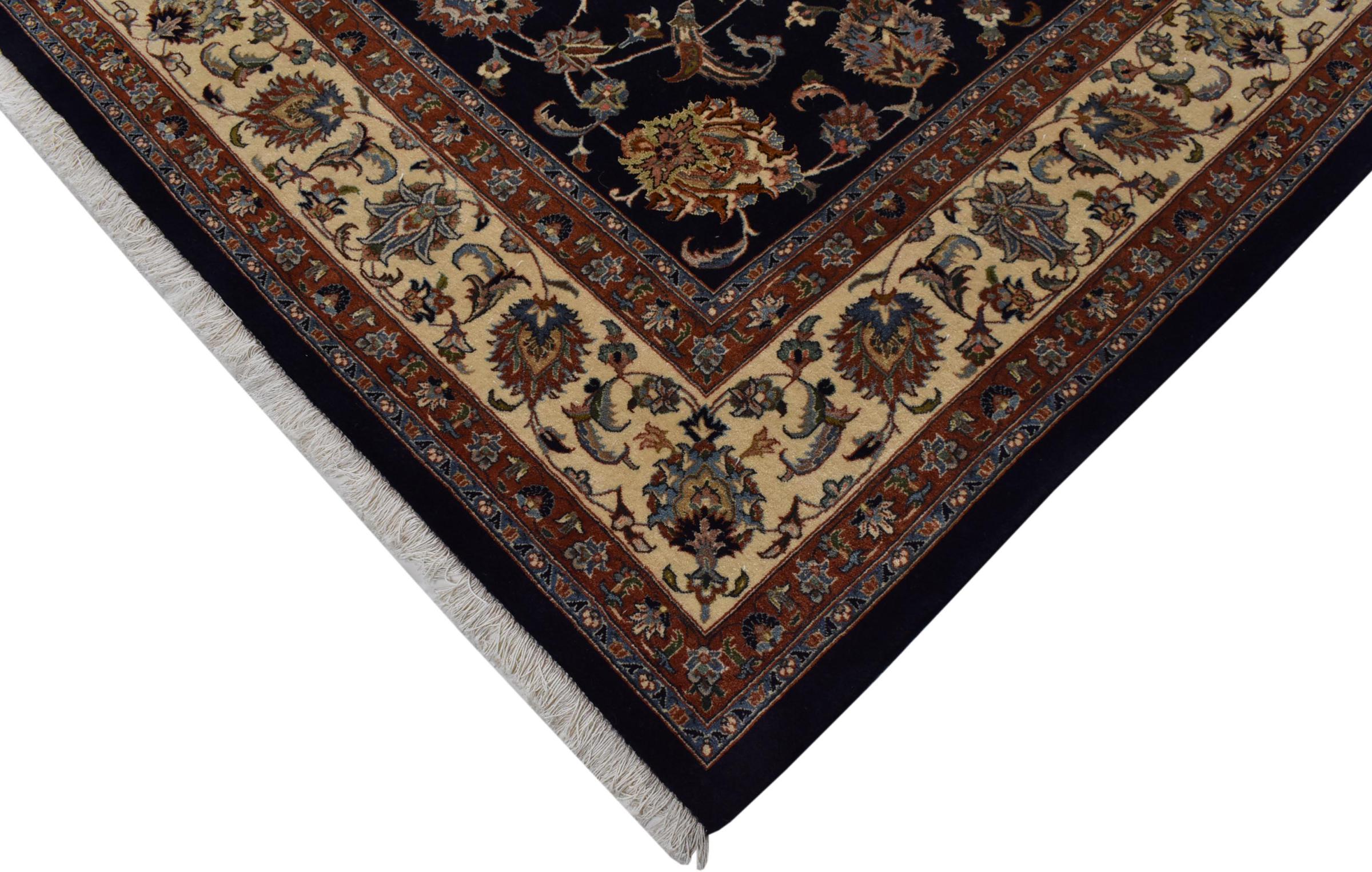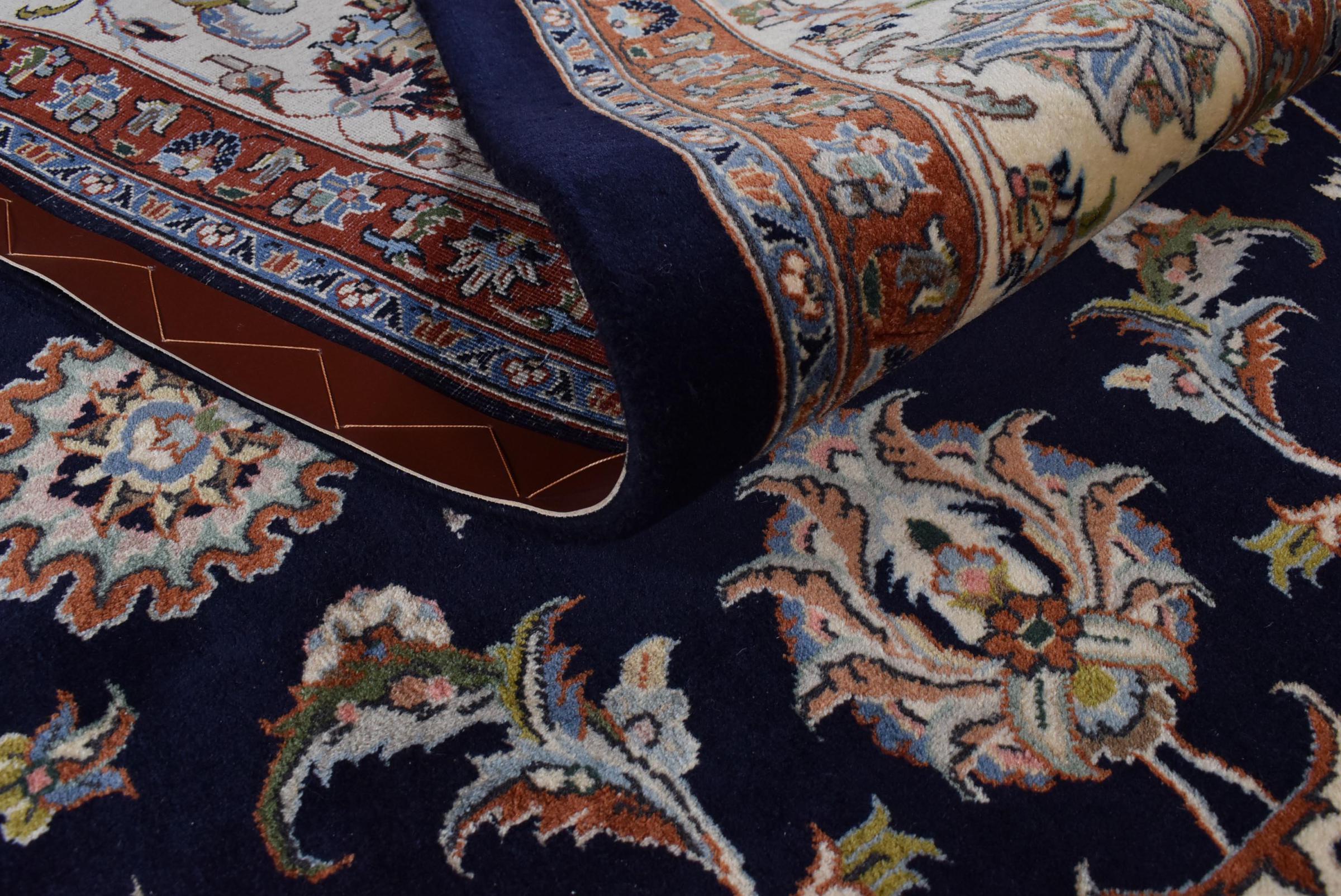 Esta alfombra de Mashhad, una de las mayores ciudades de Irán, se anudó a mano con pura lana natural. Millones de personas peregrinan cada año a esta ciudad sagrada persa. Las alfombras de Mashhad son conocidas por sus tamaños inusuales y por su lana de altísima calidad.