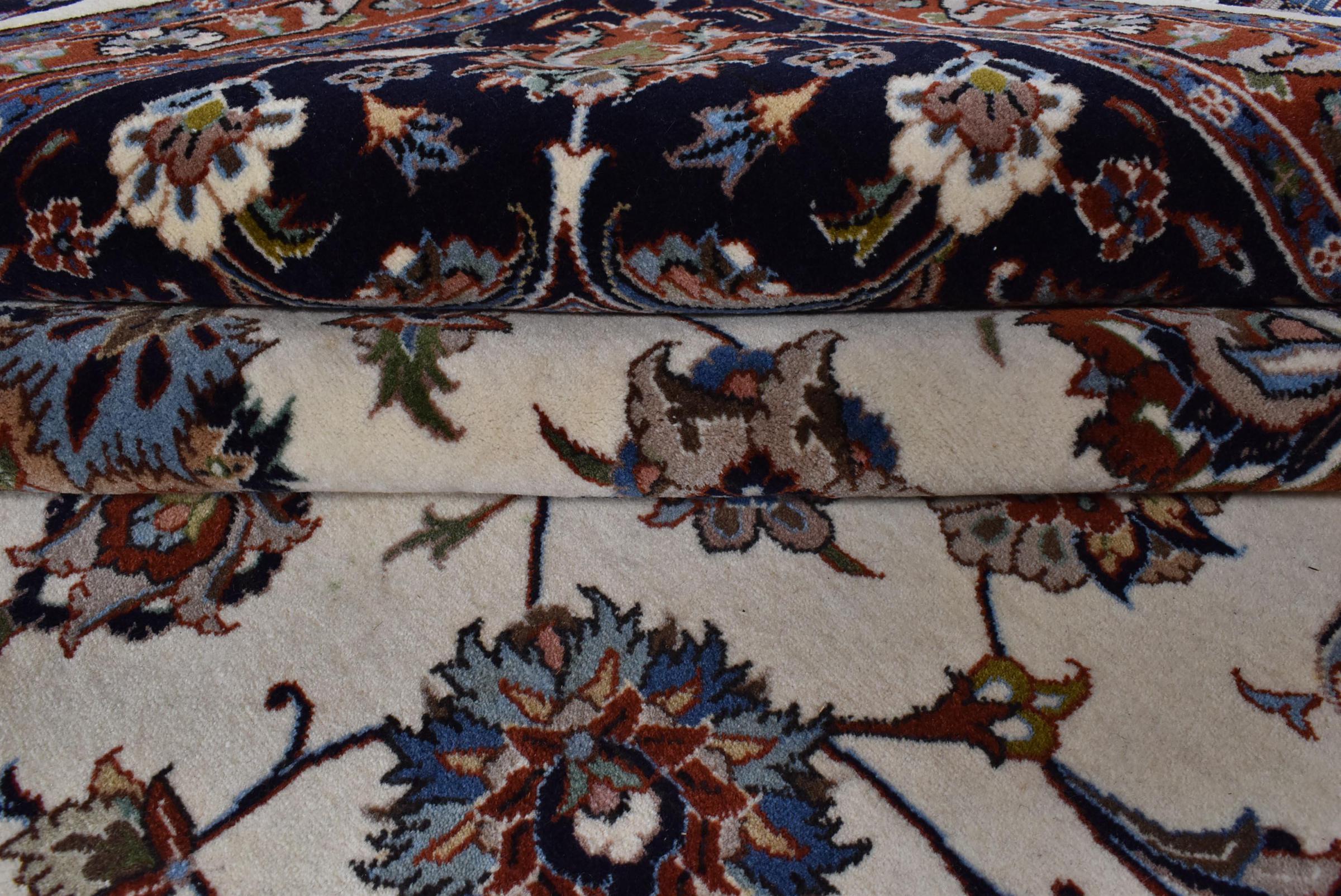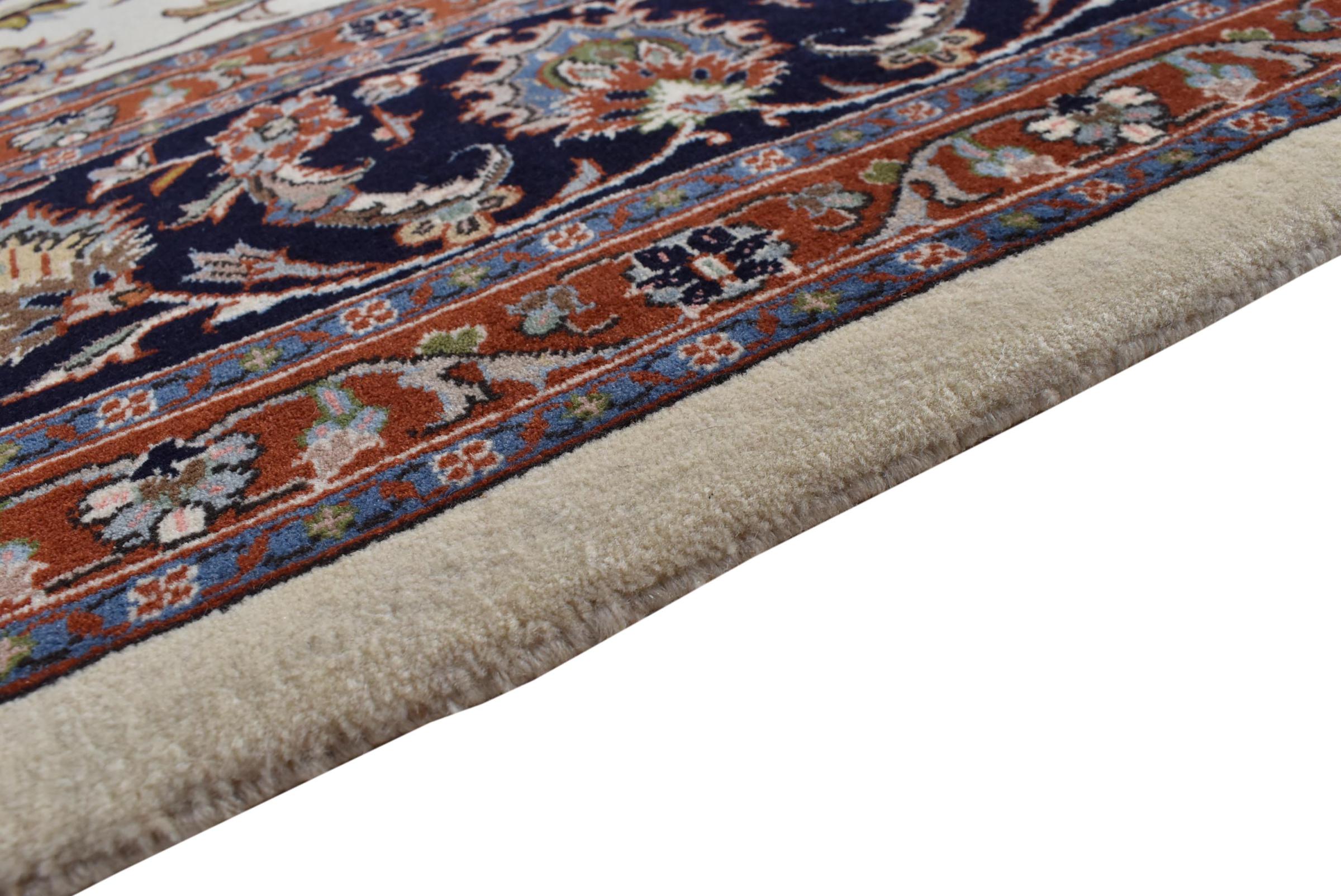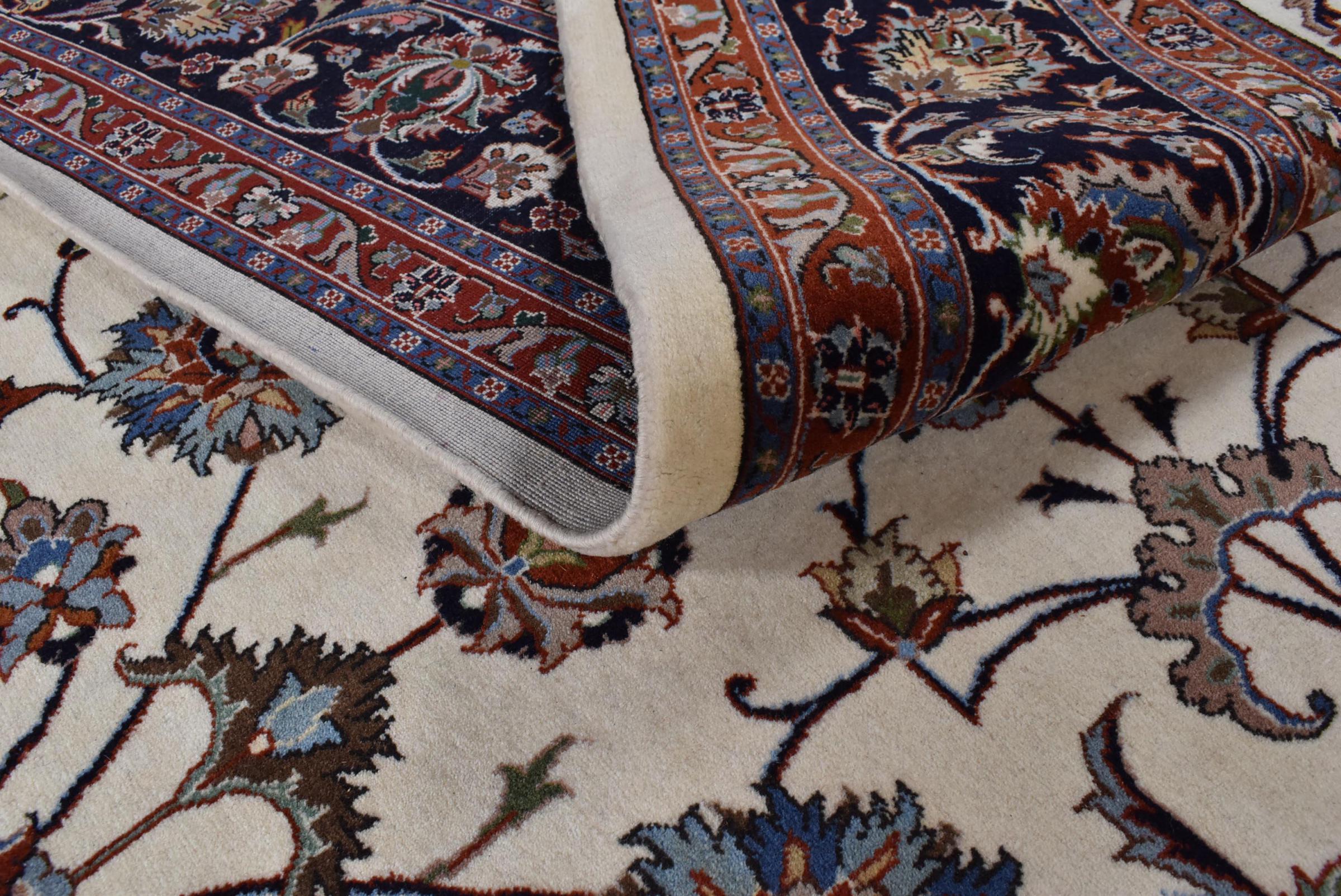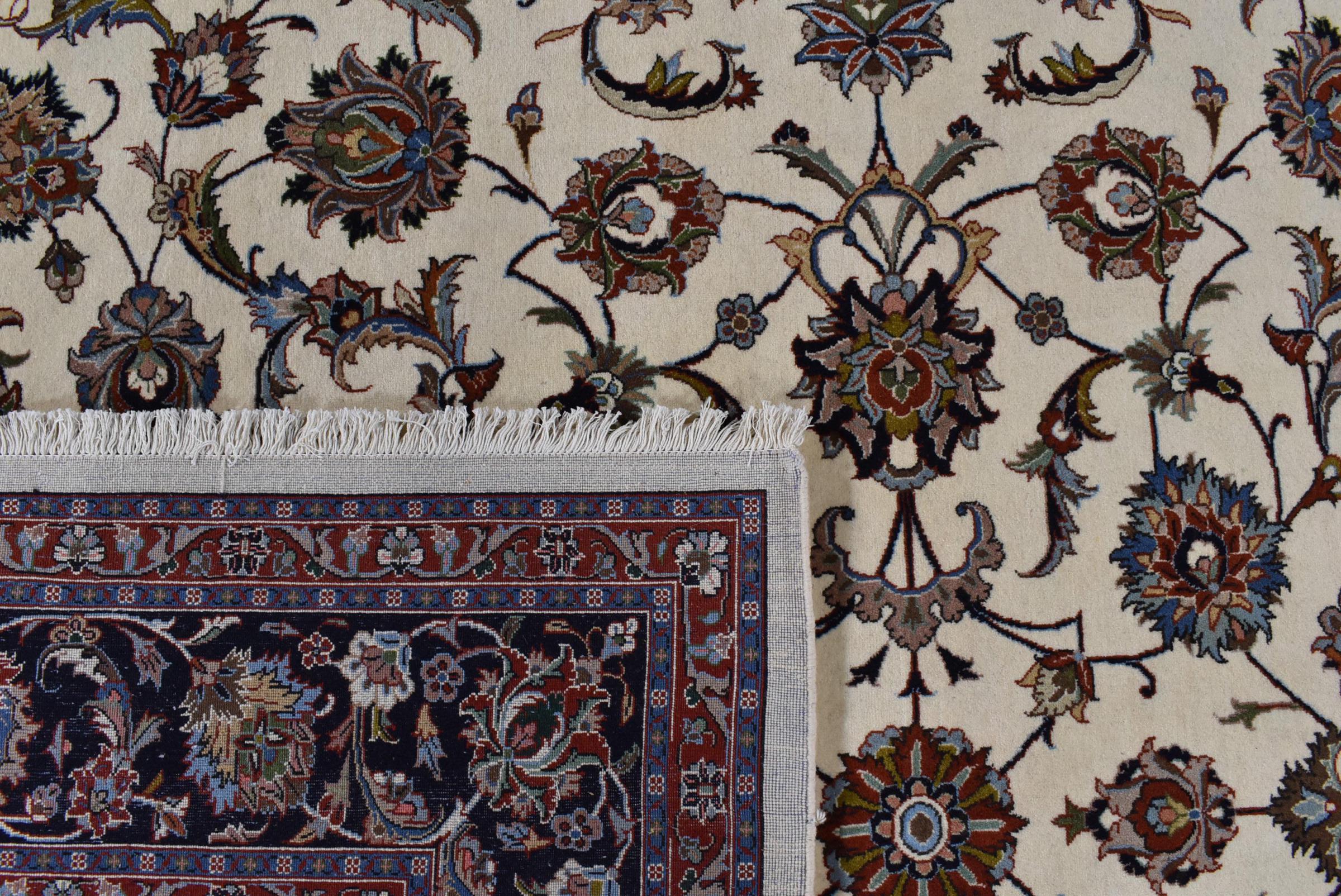 Esta alfombra está hecha de lana de oveja hilada a mano de la más alta calidad. Especialmente en Irán (antigua Persia), la lana de Afganistán y Pakistán sigue siendo hilada a mano antes de que comience el anudado de la alfombra. La lana ha demostrado ser un material natural y extremadamente resistente a lo largo de los siglos. Entre otras cosas, tiene propiedades repelentes de la suciedad y aislantes del calor. Al mismo tiempo, la lana es incomparablemente suave y tiene un brillo natural.