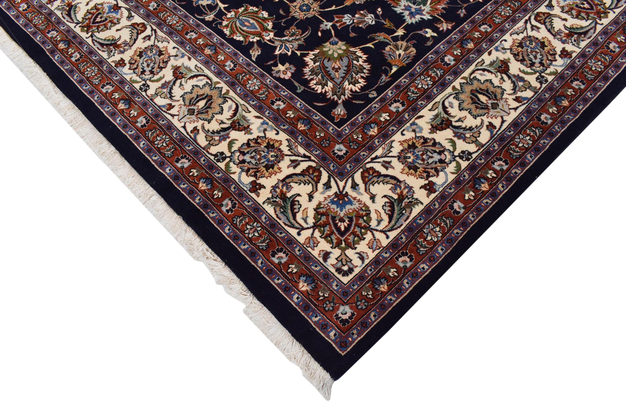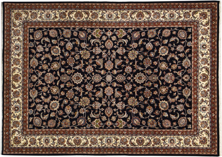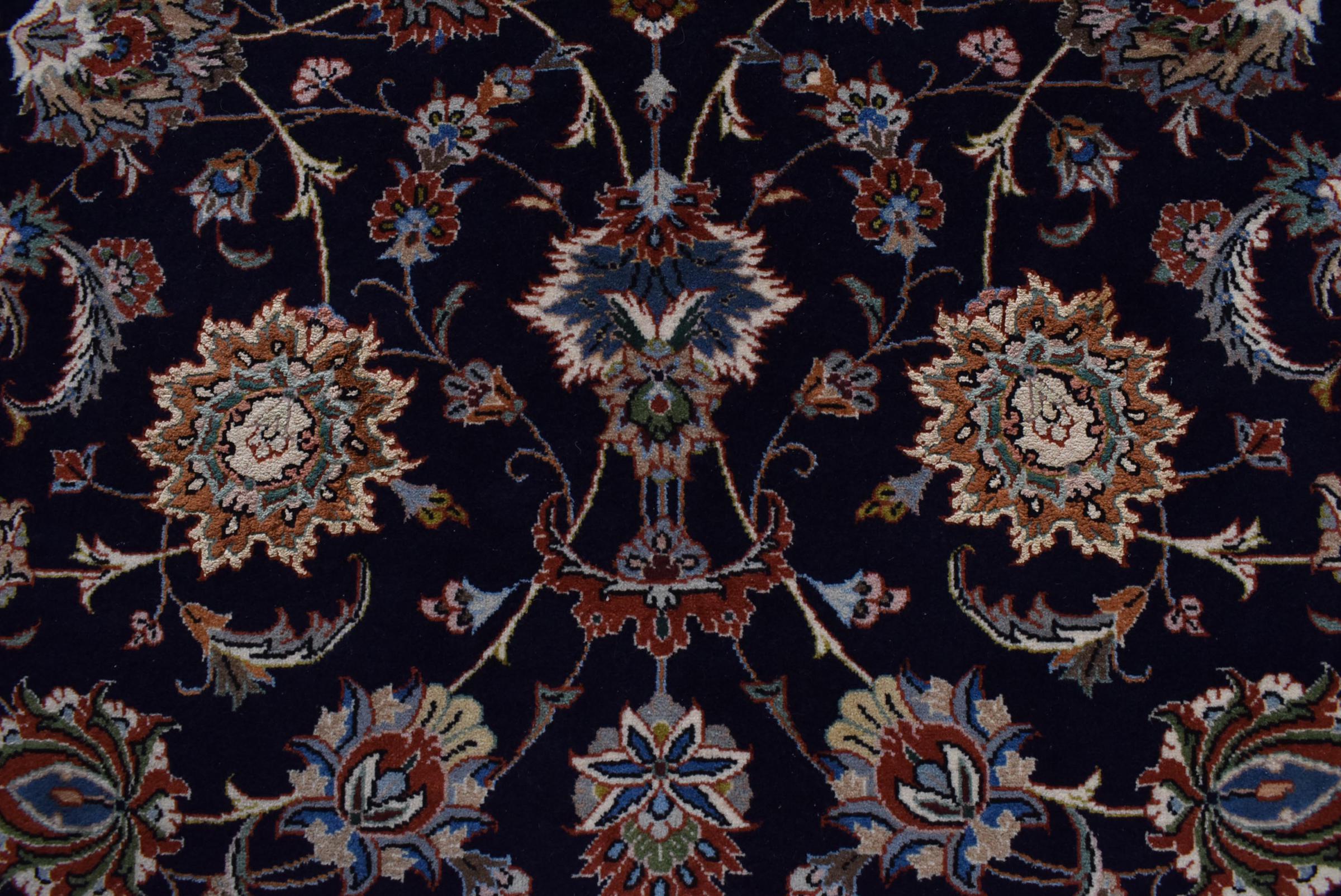 Esta alfombra de Mashhad, una de las mayores ciudades de Irán, se anudó a mano con pura lana natural. Millones de personas peregrinan cada año a esta ciudad sagrada persa. Las alfombras de Mashhad son conocidas por sus tamaños inusuales y por su lana de altísima calidad.