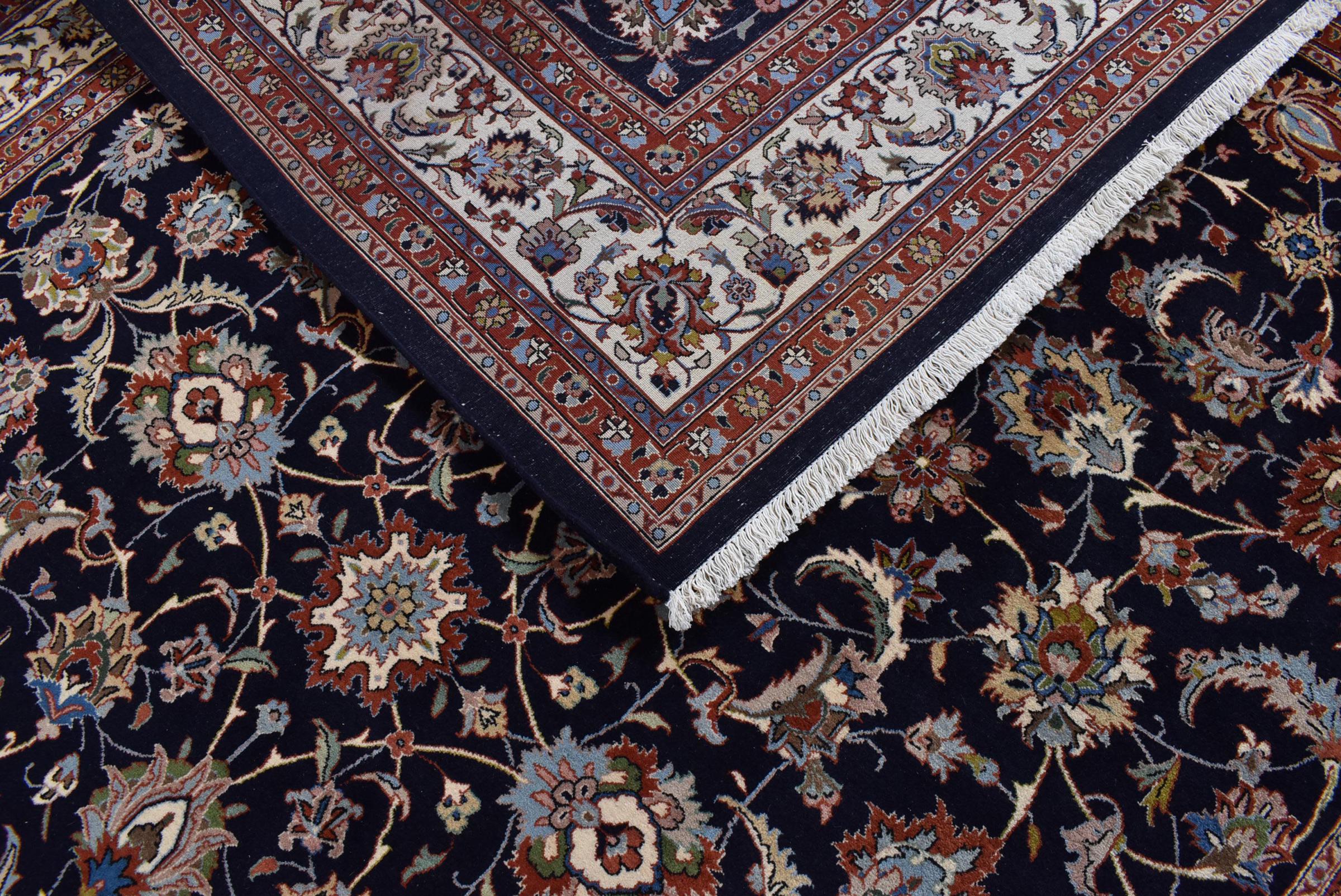 Alfombra número: 309697002939824 Tamaño: 345x250 cm Espesor: alrededor de 12 mm Nudos: 320 000 - 360 000 / m² Elaboración: Anudado a mano Crespón: Lana hilada a mano Urdimbre: Algodón Origen: Persia / Iran Edad: Nuevo Peso: alrededor de 30 kg También conocido como Maschad, Meshed Cantidad en stock: Única - Solo 1 en stock