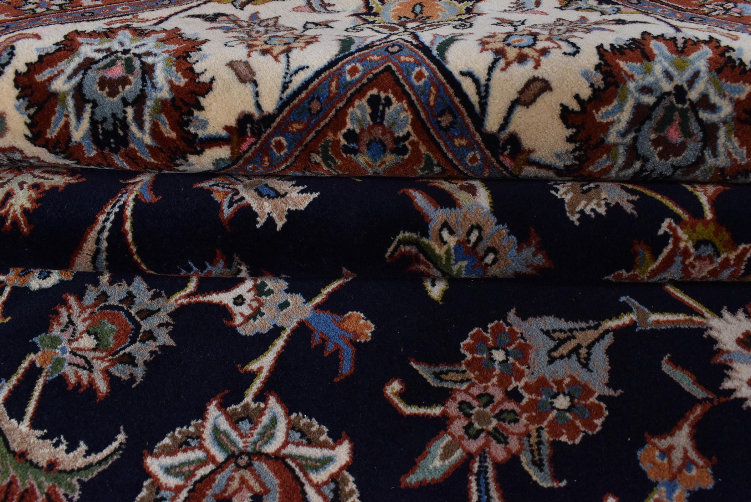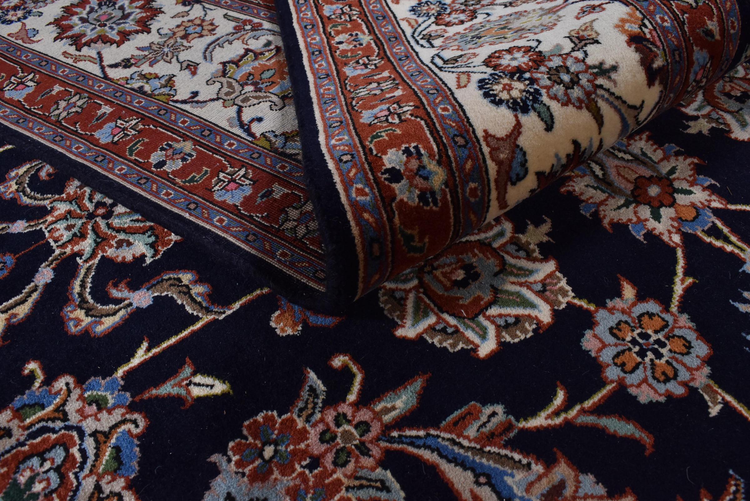 Esta alfombra está hecha de lana de oveja hilada a mano de la más alta calidad. Especialmente en Irán (antigua Persia), la lana de Afganistán y Pakistán sigue siendo hilada a mano antes de que comience el anudado de la alfombra. La lana ha demostrado ser un material natural y extremadamente resistente a lo largo de los siglos. Entre otras cosas, tiene propiedades repelentes de la suciedad y aislantes del calor. Al mismo tiempo, la lana es incomparablemente suave y tiene un brillo natural.
