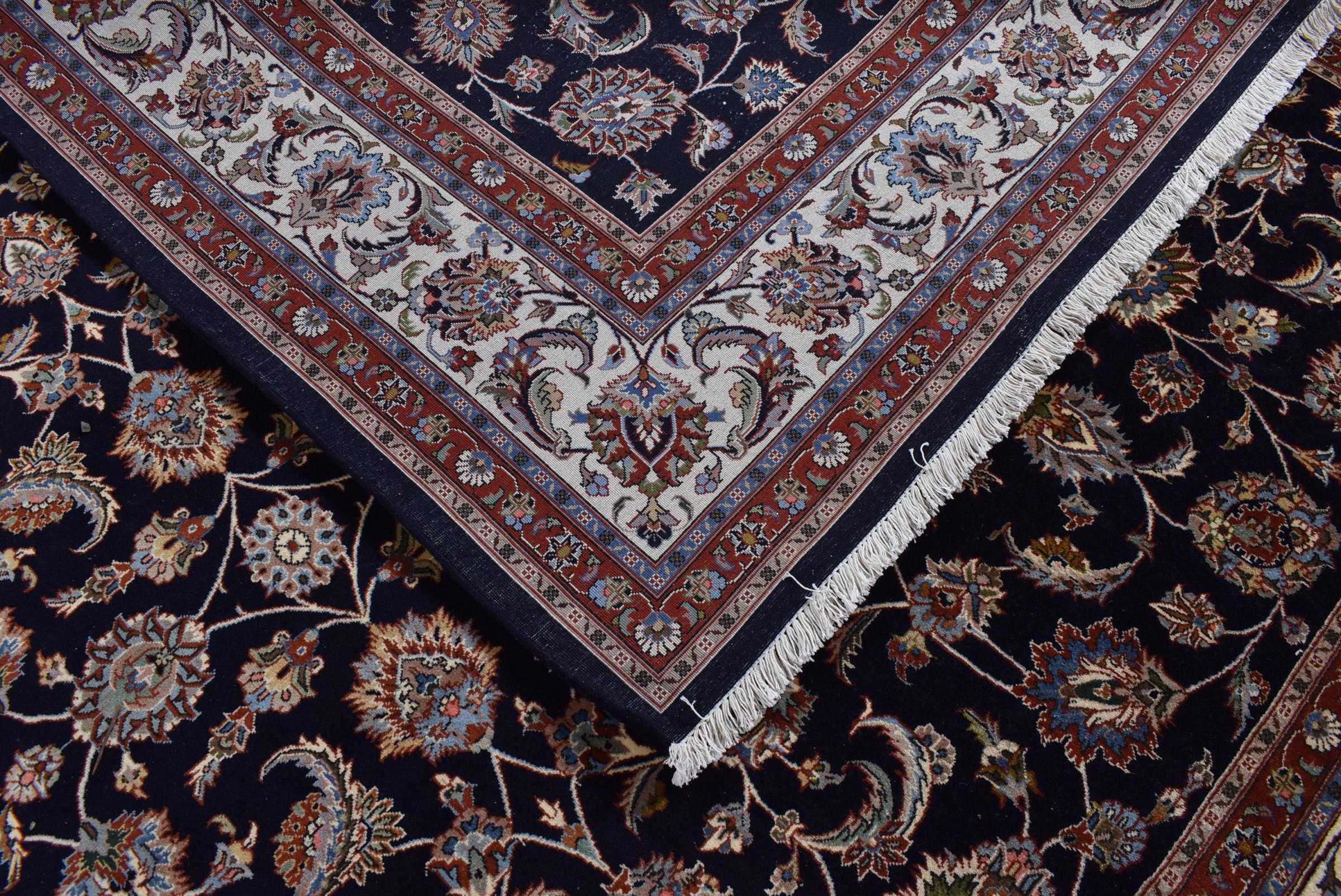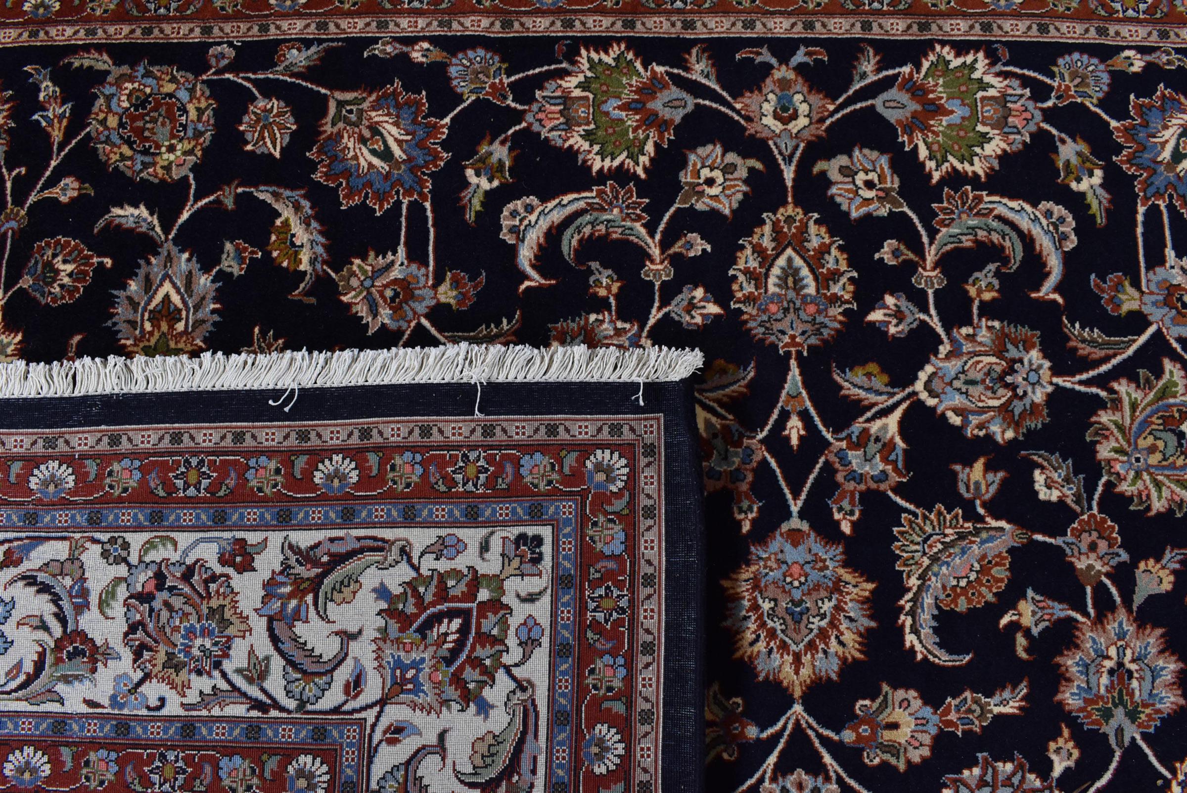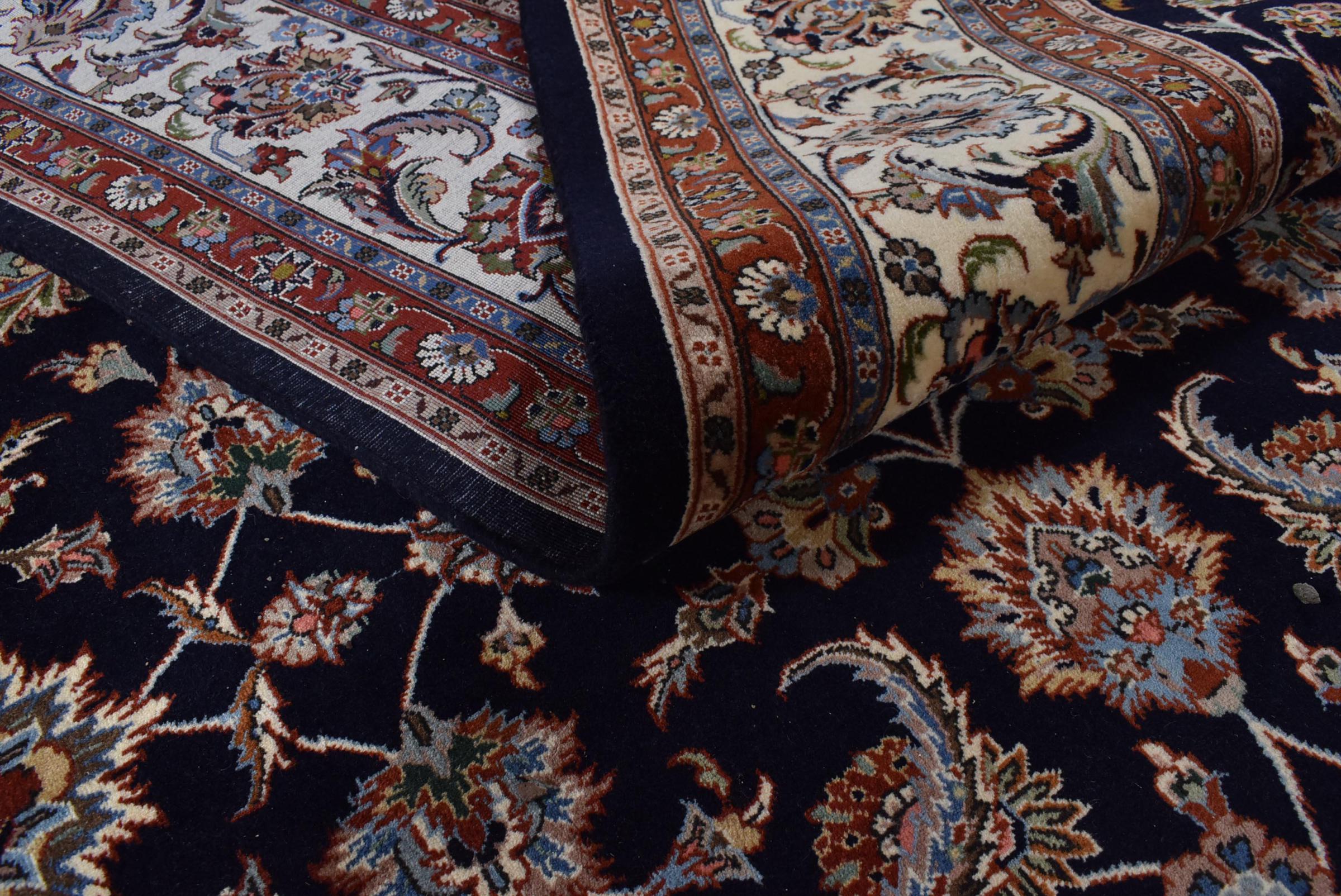Esta alfombra de Mashhad, una de las mayores ciudades de Irán, se anudó a mano con pura lana natural. Millones de personas peregrinan cada año a esta ciudad sagrada persa. Las alfombras de Mashhad son conocidas por sus tamaños inusuales y por su lana de altísima calidad.