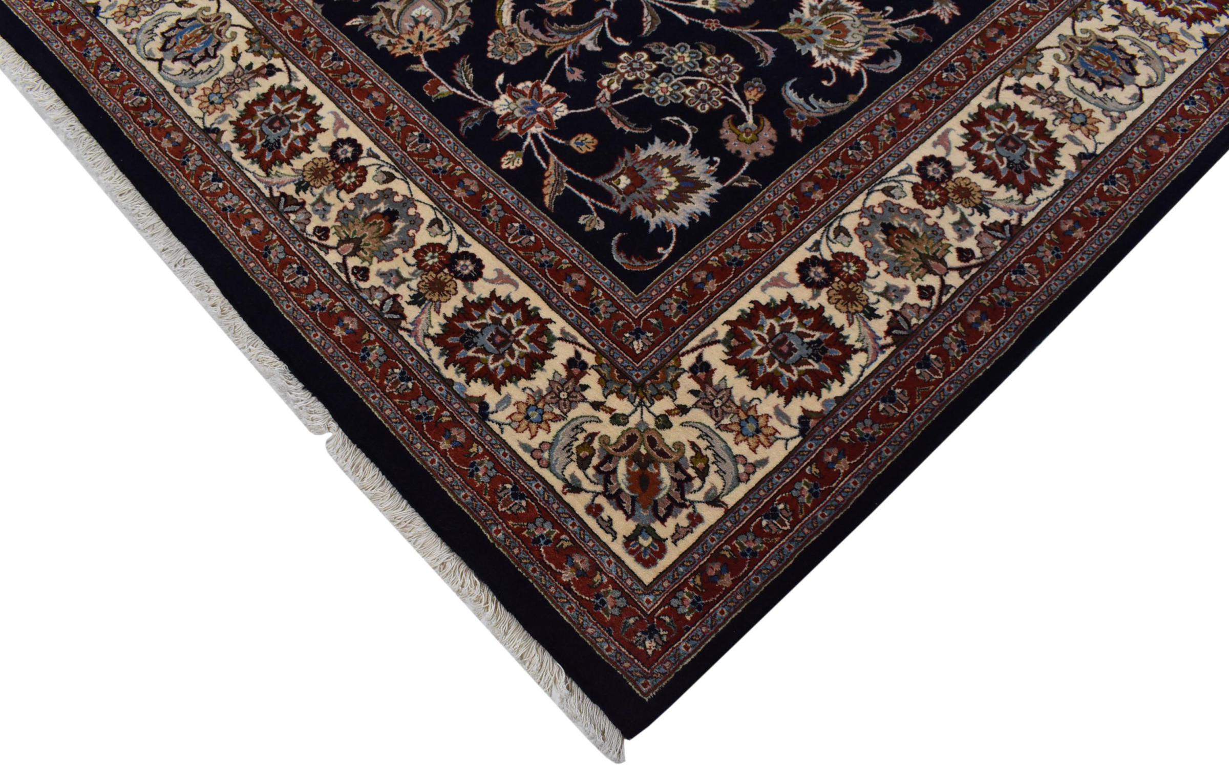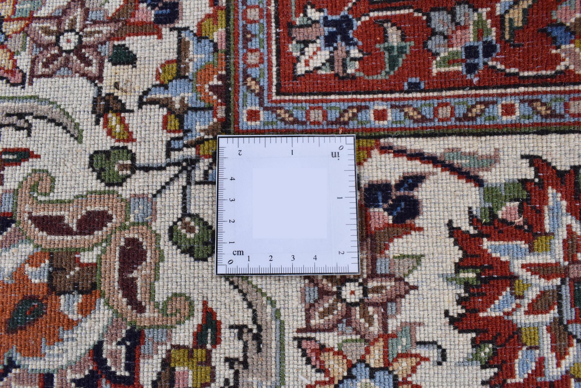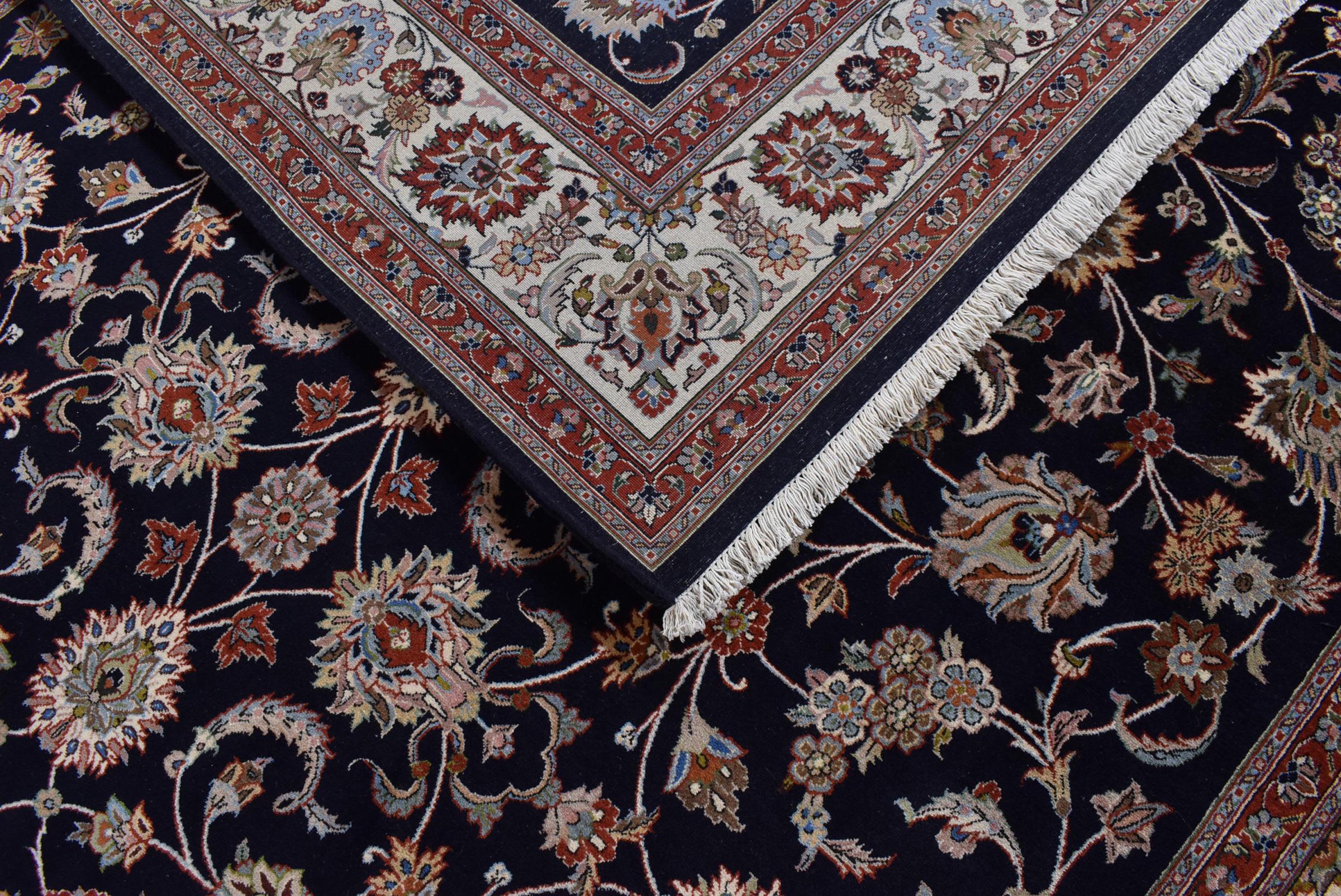 Esta alfombra de Mashhad, una de las mayores ciudades de Irán, se anudó a mano con pura lana natural. Millones de personas peregrinan cada año a esta ciudad sagrada persa. Las alfombras de Mashhad son conocidas por sus tamaños inusuales y por su lana de altísima calidad.