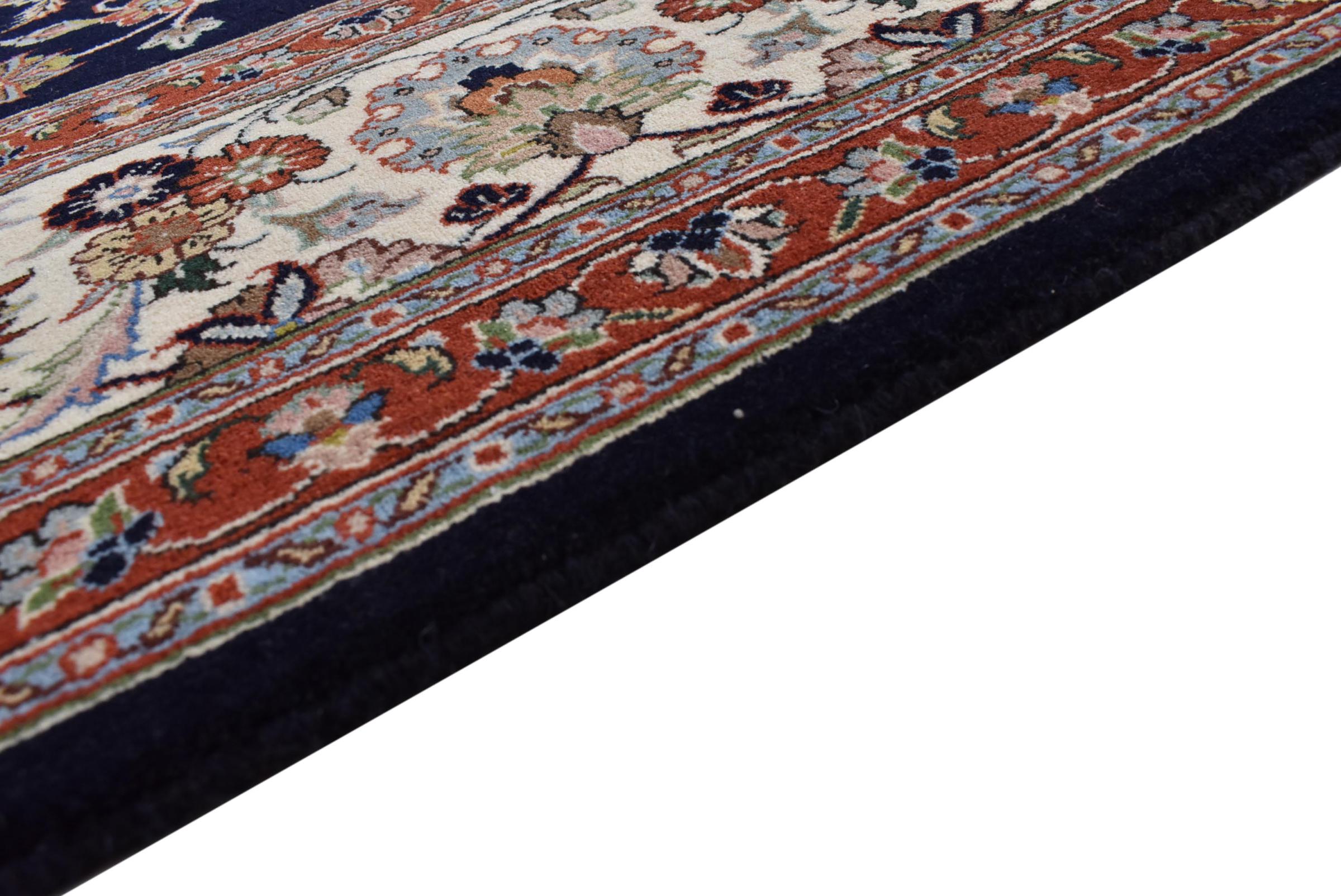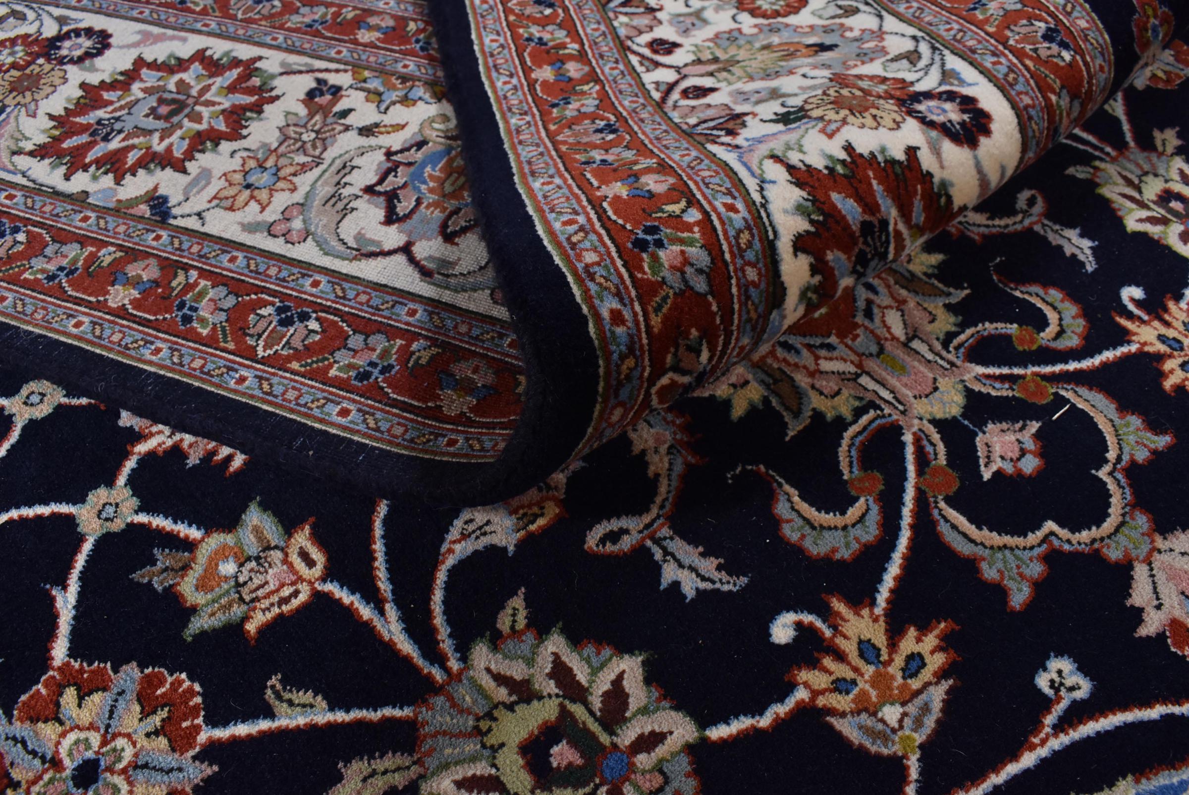 Esta alfombra está hecha de lana de oveja hilada a mano de la más alta calidad. Especialmente en Irán (antigua Persia), la lana de Afganistán y Pakistán sigue siendo hilada a mano antes de que comience el anudado de la alfombra. La lana ha demostrado ser un material natural y extremadamente resistente a lo largo de los siglos. Entre otras cosas, tiene propiedades repelentes de la suciedad y aislantes del calor. Al mismo tiempo, la lana es incomparablemente suave y tiene un brillo natural.