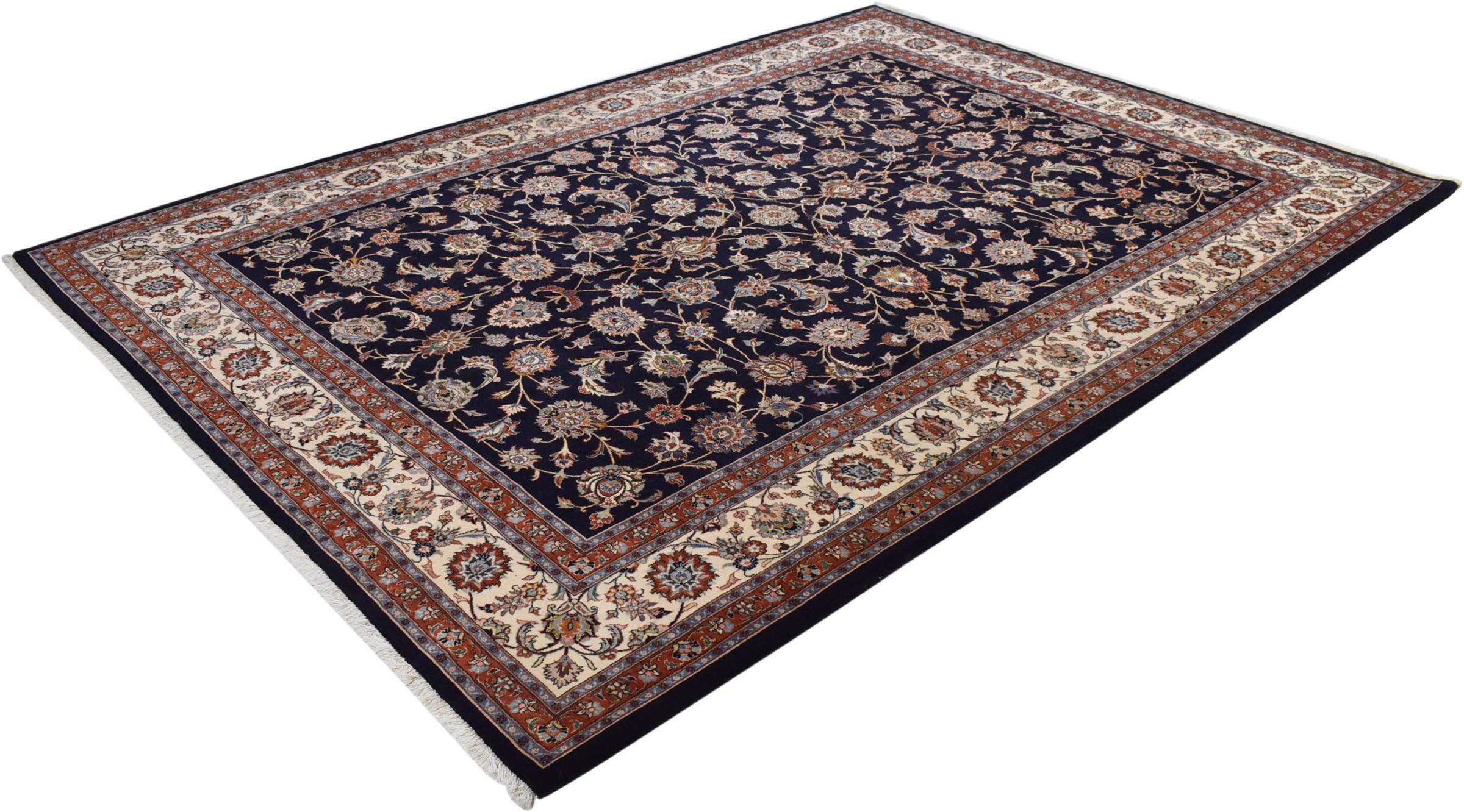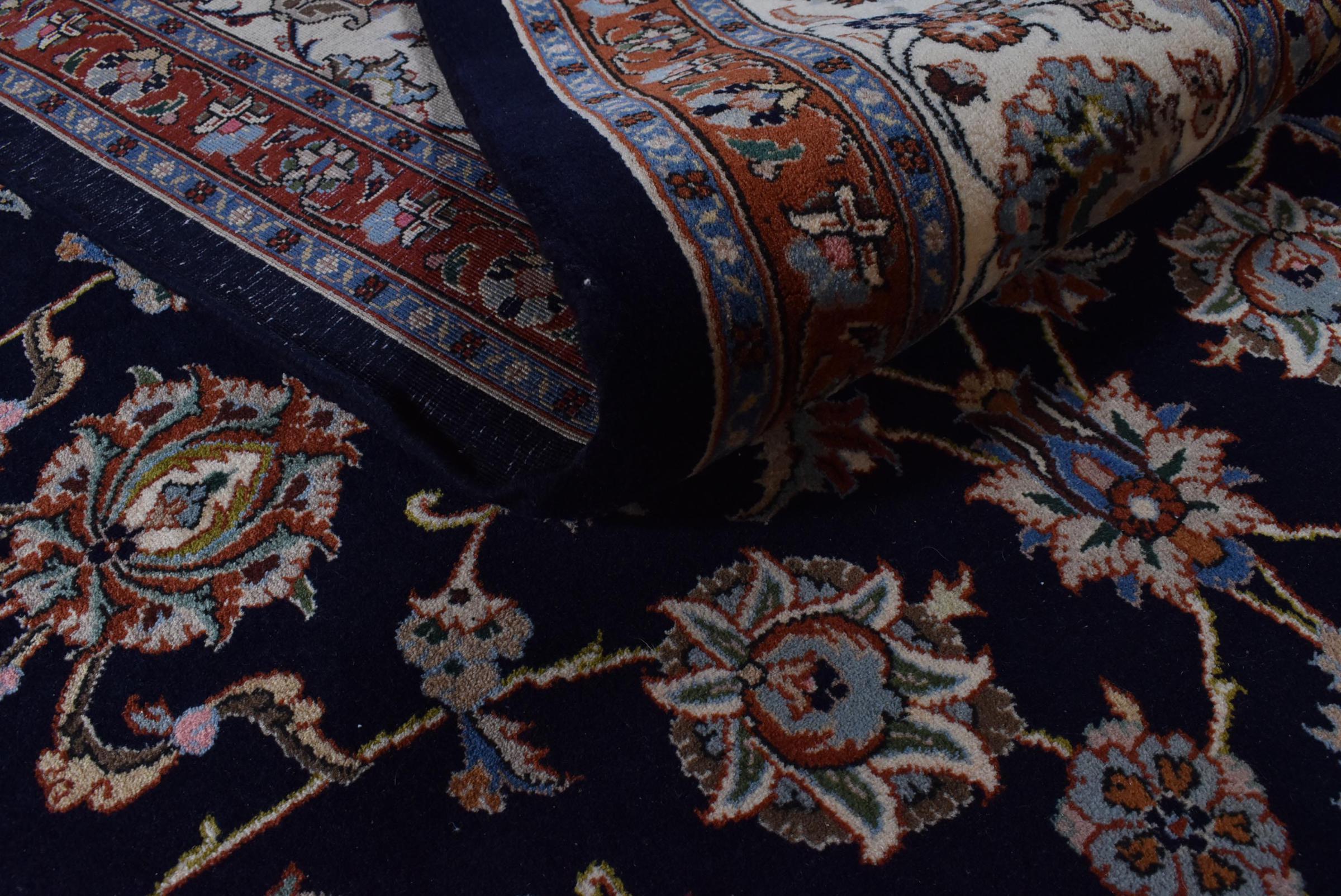 Esta alfombra está hecha de lana de oveja hilada a mano de la más alta calidad. Especialmente en Irán (antigua Persia), la lana de Afganistán y Pakistán sigue siendo hilada a mano antes de que comience el anudado de la alfombra. La lana ha demostrado ser un material natural y extremadamente resistente a lo largo de los siglos. Entre otras cosas, tiene propiedades repelentes de la suciedad y aislantes del calor. Al mismo tiempo, la lana es incomparablemente suave y tiene un brillo natural.