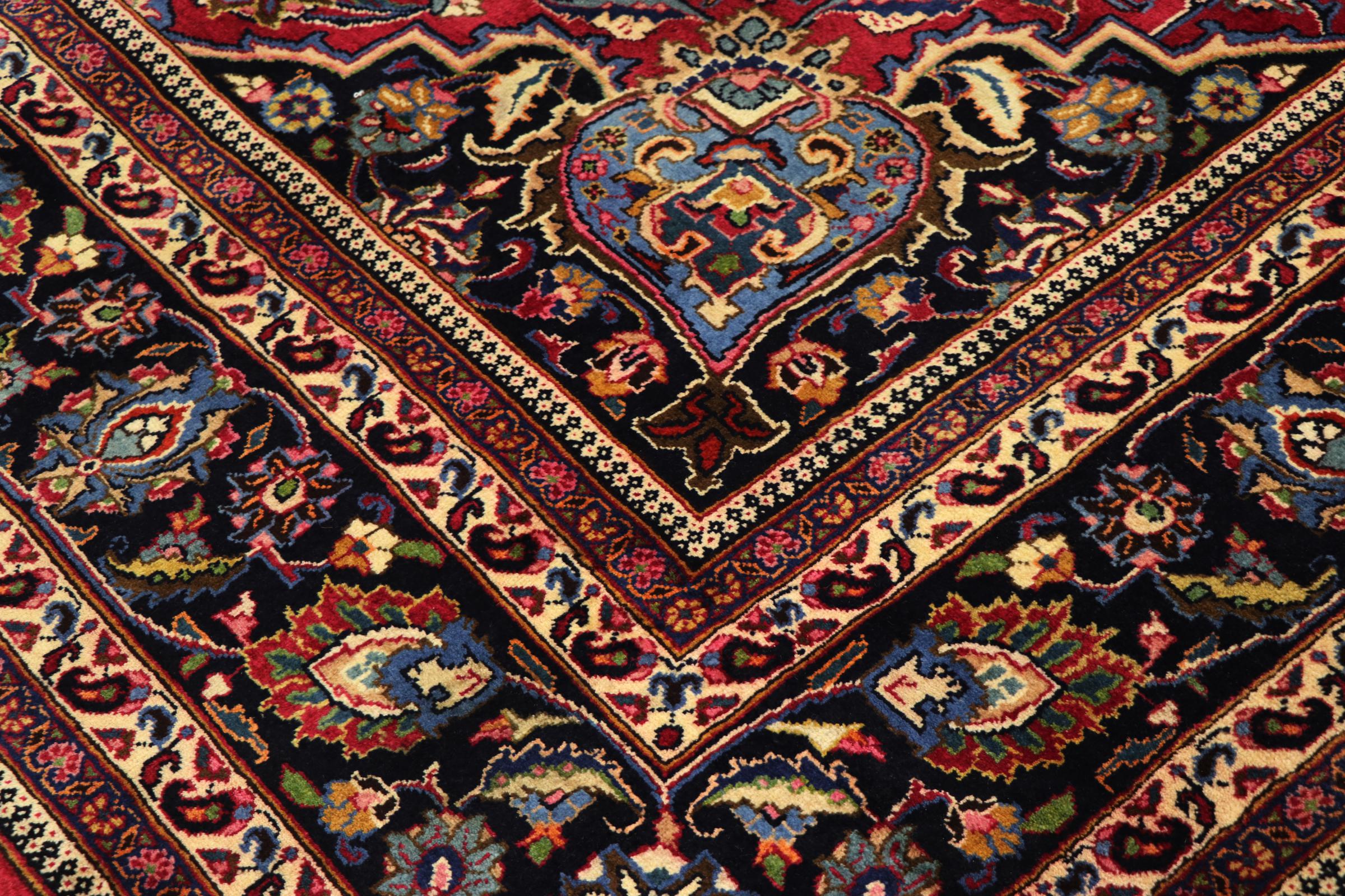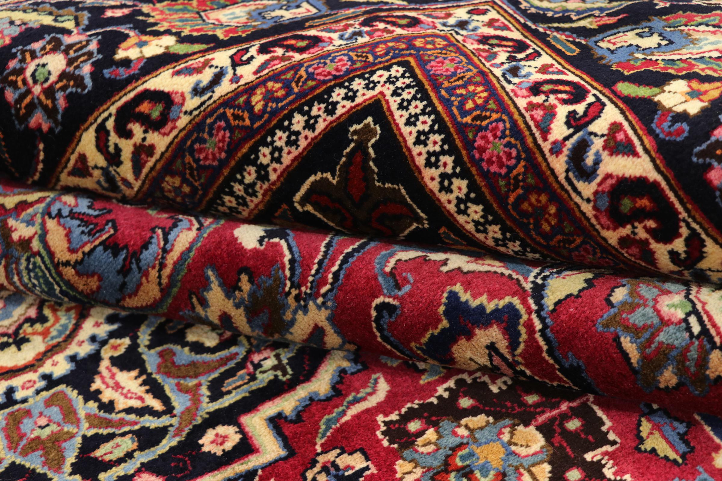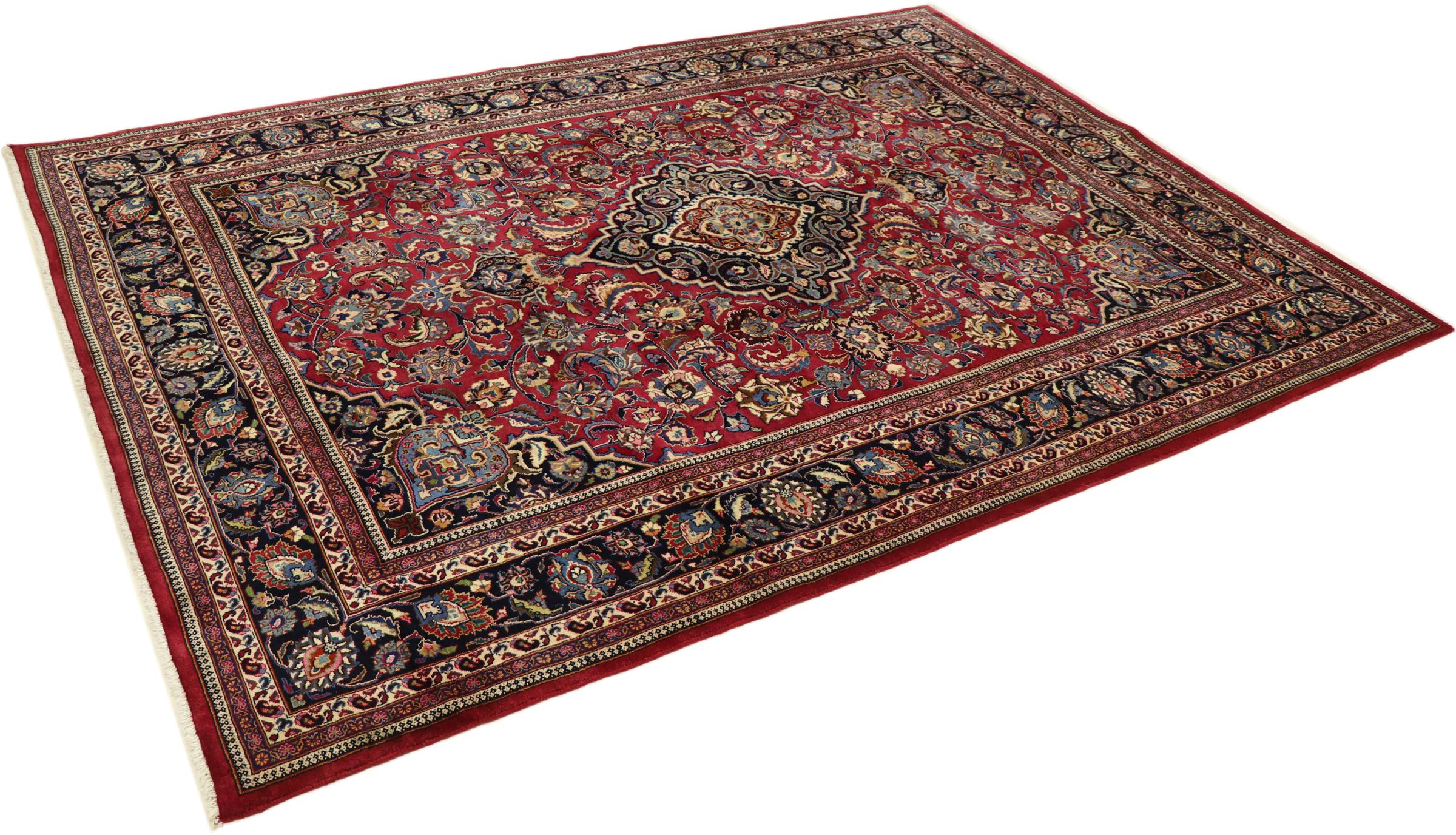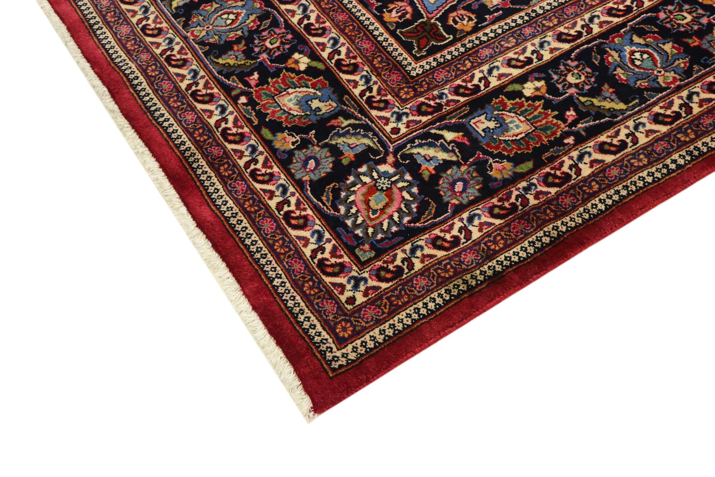 Esta alfombra de Mashhad, una de las mayores ciudades de Irán, se anudó a mano con pura lana natural. Millones de personas peregrinan cada año a esta ciudad sagrada persa. Las alfombras de Mashhad son conocidas por sus tamaños inusuales y por su lana de altísima calidad.