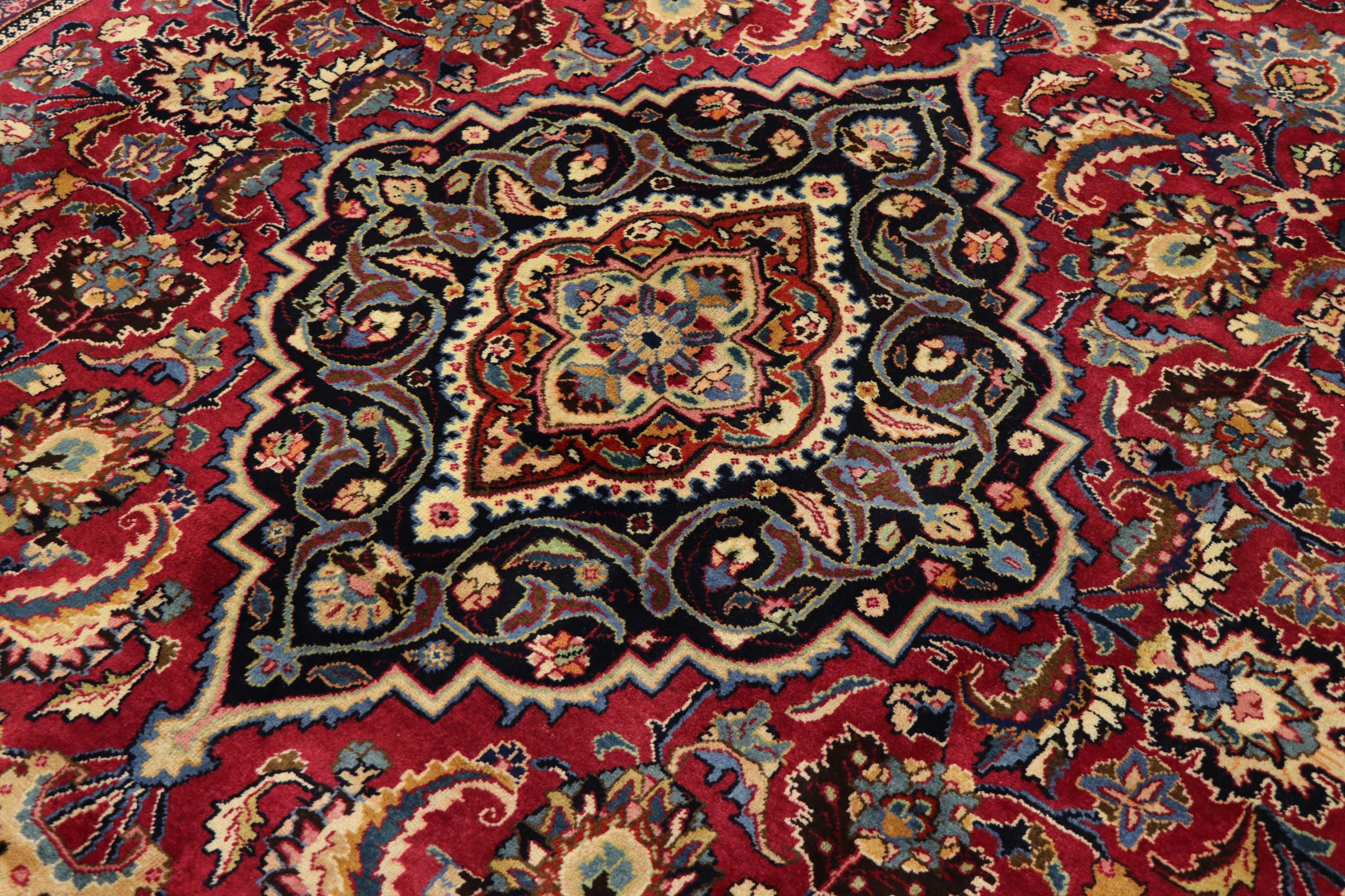 Mashhad es una ciudad de millones en el este de Irán. Es una de las ciudades más sagradas del Islam con un gran número de peregrinos que visitan la tumba del octavo Imán. Las alfombras persas anudadas a mano de Mashhad suelen ser más grandes que el promedio. Normalmente tienen un medallón en el centro y son de color oscuro.