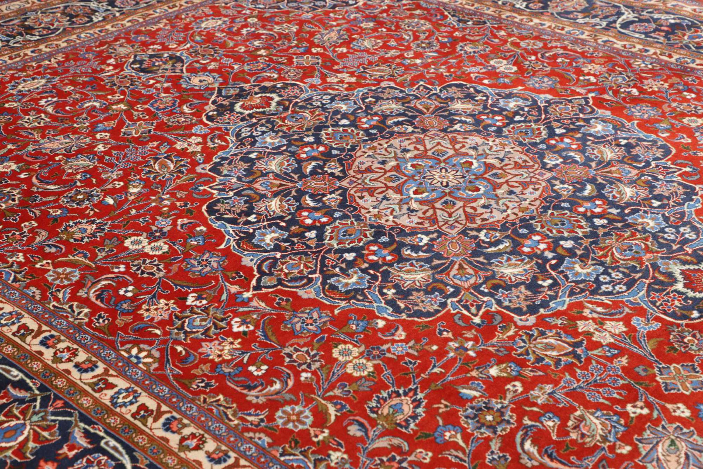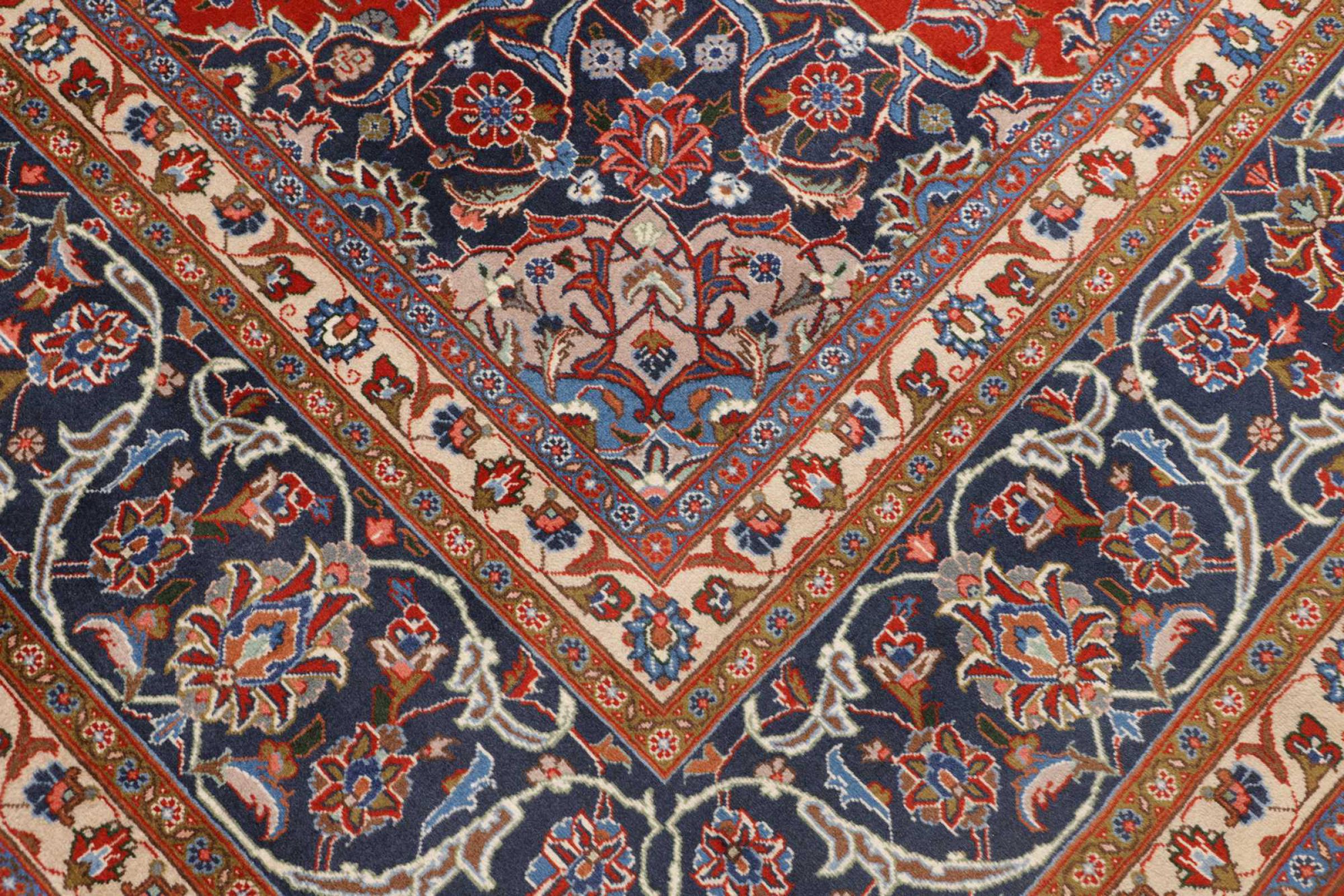 Esta alfombra está hecha de lana de oveja hilada a mano de la más alta calidad. Especialmente en Irán (antigua Persia), la lana de Afganistán y Pakistán sigue siendo hilada a mano antes de que comience el anudado de la alfombra. La lana ha demostrado ser un material natural y extremadamente resistente a lo largo de los siglos. Entre otras cosas, tiene propiedades repelentes de la suciedad y aislantes del calor. Al mismo tiempo, la lana es incomparablemente suave y tiene un brillo natural.