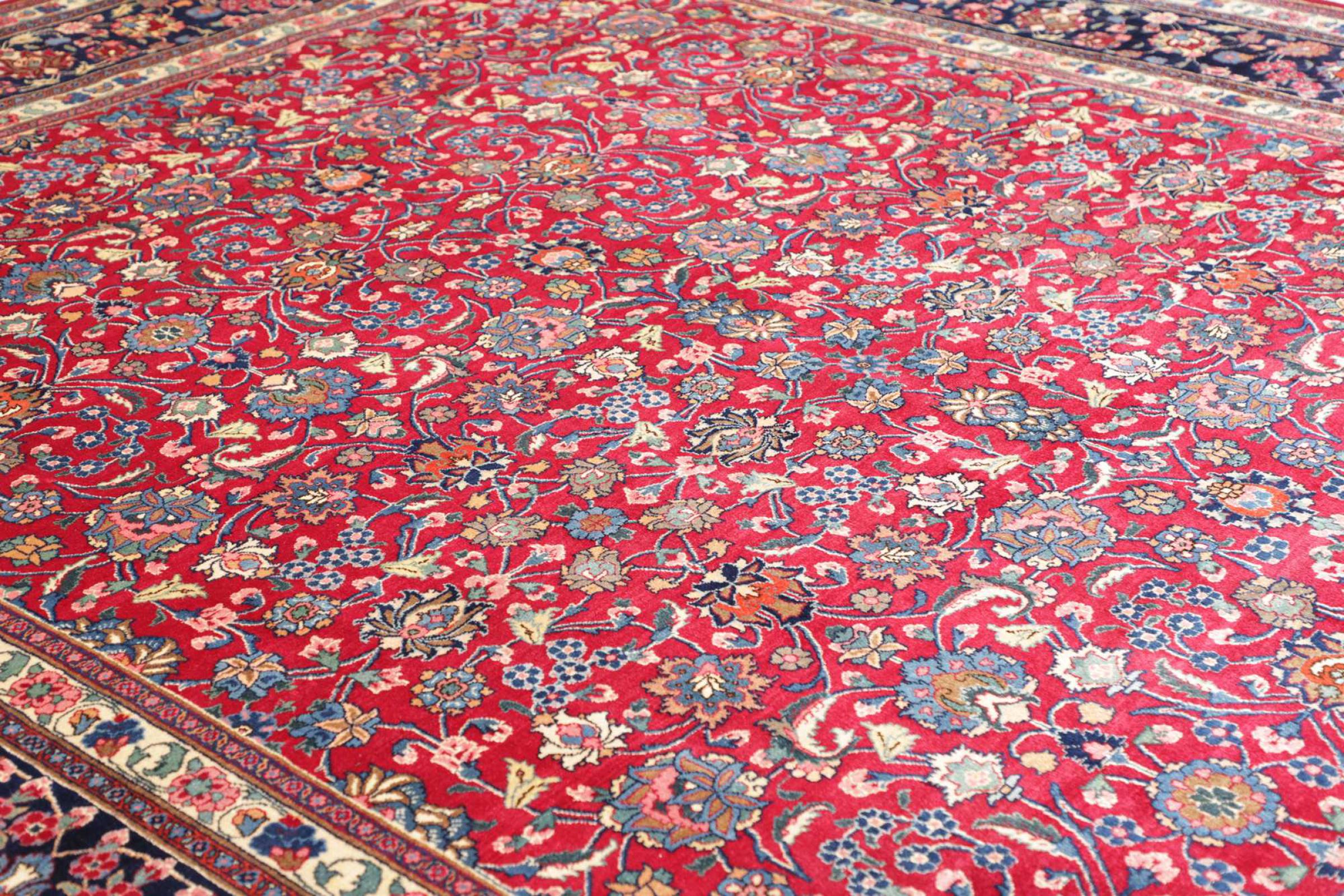 Esta alfombra de Mashhad, una de las mayores ciudades de Irán, se anudó a mano con pura lana natural. Millones de personas peregrinan cada año a esta ciudad sagrada persa. Las alfombras de Mashhad son conocidas por sus tamaños inusuales y por su lana de altísima calidad.