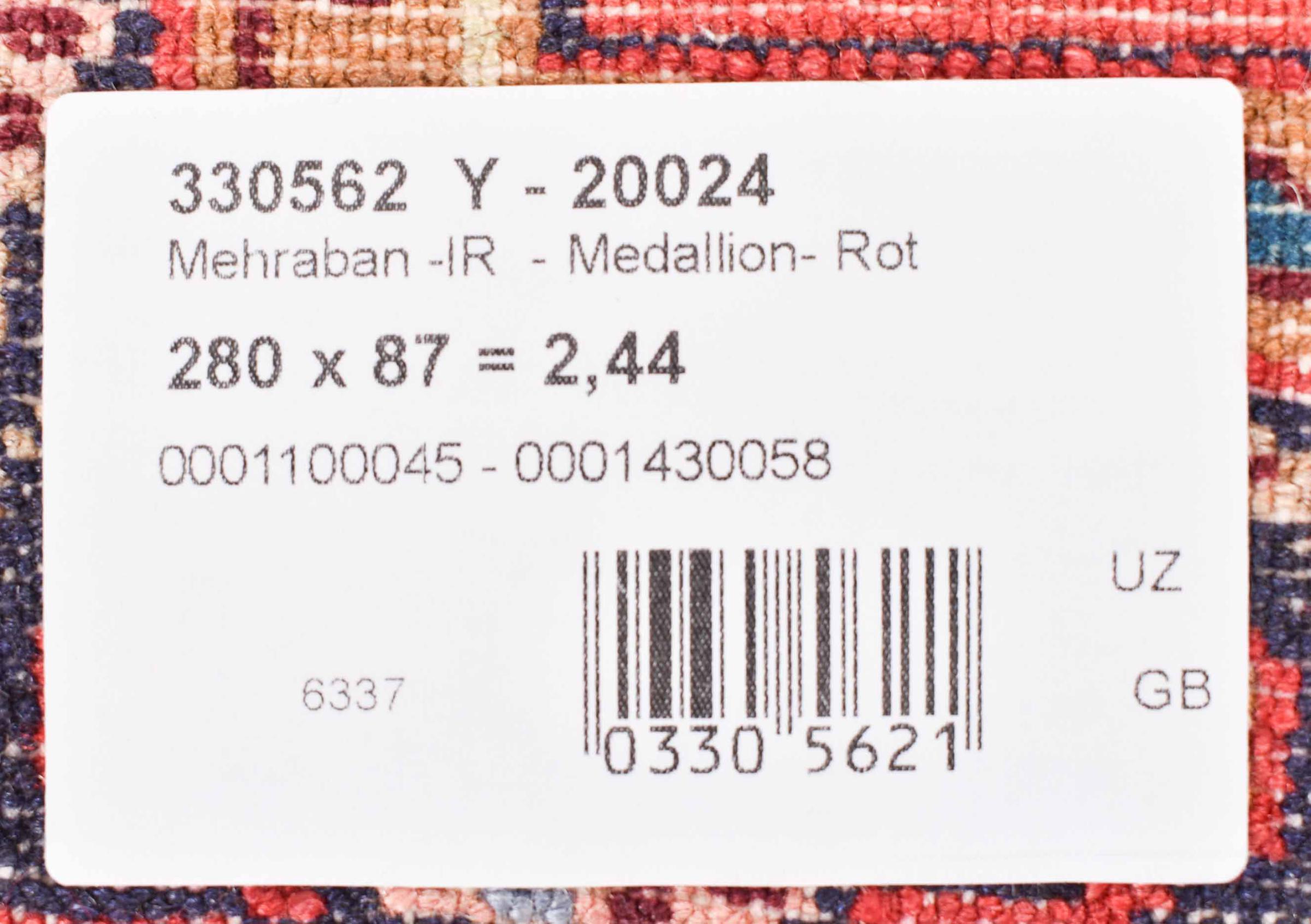 Alfombra número: 300942001644041 Tamaño: 281x88 cm Espesor: alrededor de 12 mm Nudos: 128 000 - 160 000 / m² Elaboración: Anudado a mano Crespón: Lana hilada a mano Urdimbre: Algodón Origen: Persia / Iran Edad: Nuevo Peso: alrededor de 9 kg También conocido como Meriban Cantidad en stock: Única - Solo 1 en stock