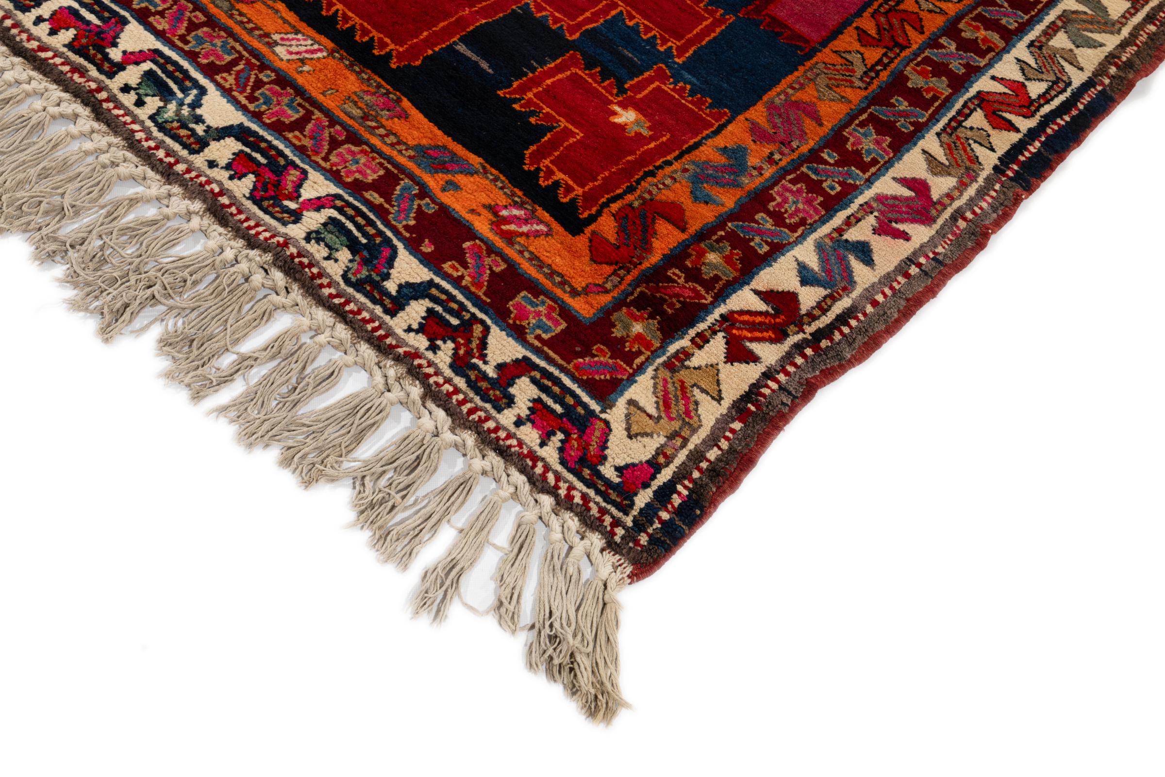 Esta alfombra pertenece a alfombras de pueblos y nómadas de Irán, antiguamente Persia. Este tipo de alfombra se anuda a mano en ciudades y pueblos más pequeños según la antigua tradición. Incluso los nómadas siguen anudando alfombras persas al aire libre. Las alfombras están anudadas sin un patrón y completamente desde la cabeza. Se caracterizan por los ornamentos clásicos, que están dispuestos en patrones rectos y geométricos. Gracias a su origen cultural-tradicional, estas alfombras tienen un carácter único que encarna la antigua Persia.