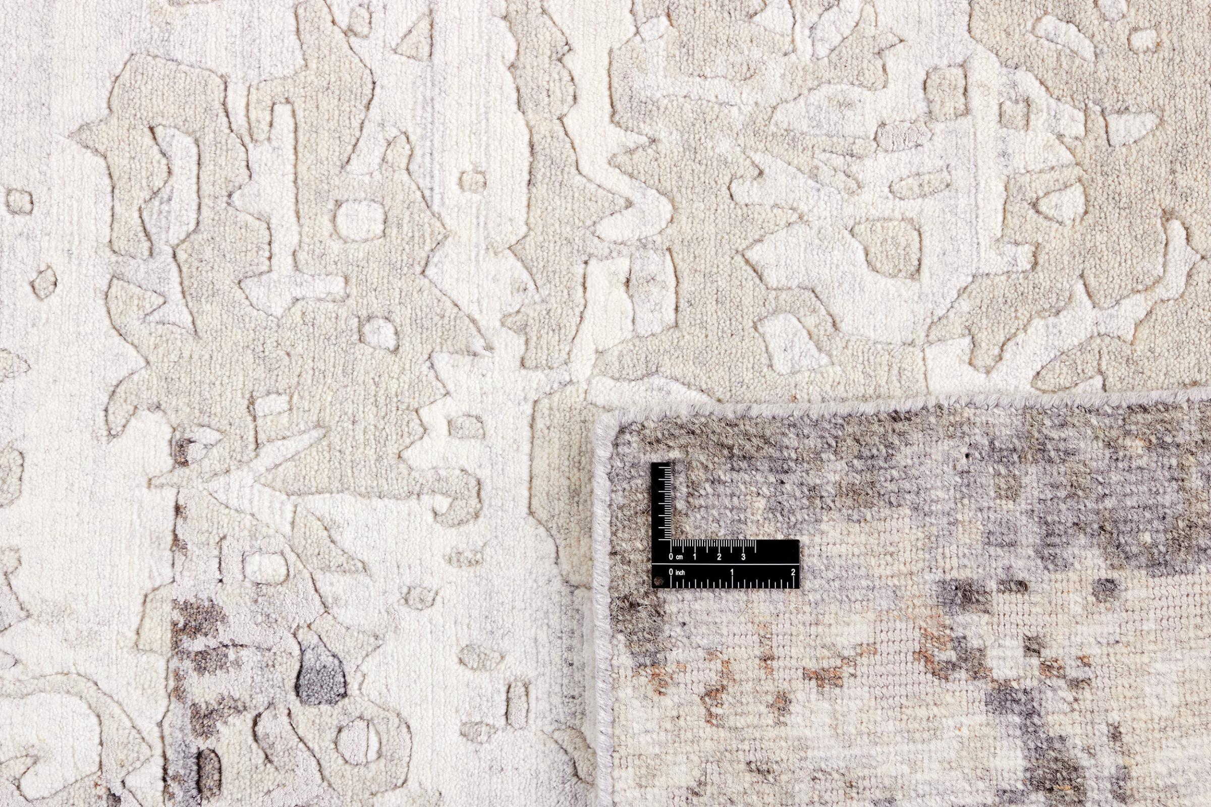 Alfombra número: 61725002228555 Tamaño: 299x201 cm Espesor: alrededor de 12 mm Nudos: 120 000 - 150 000 / m² Elaboración: Anudado a mano Crespón: Lana con seda de bambú Urdimbre: Algodón Origen: India Edad: Nuevo Peso: alrededor de 21 kg