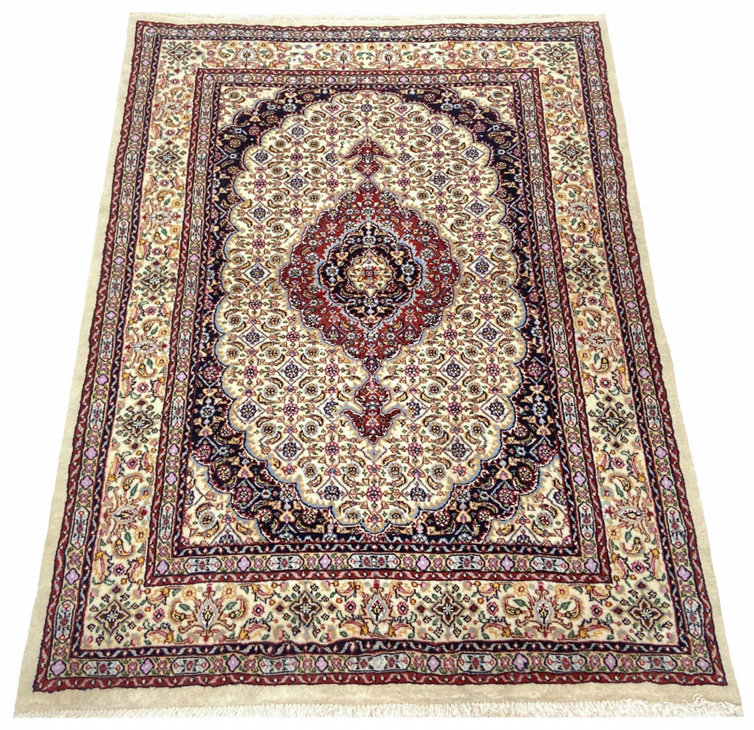 Esta alfombra de Moud, una ciudad situada a 300 km al sur de Mashhad, es realmente cautivadora. Sus motivos hérati son muy apreciados por los conocedores y amantes de las alfombras persas. Si lo que busca es una alfombra de fina calidad, para un uso variado en distintas circunstancias, está en el lugar correcto.
