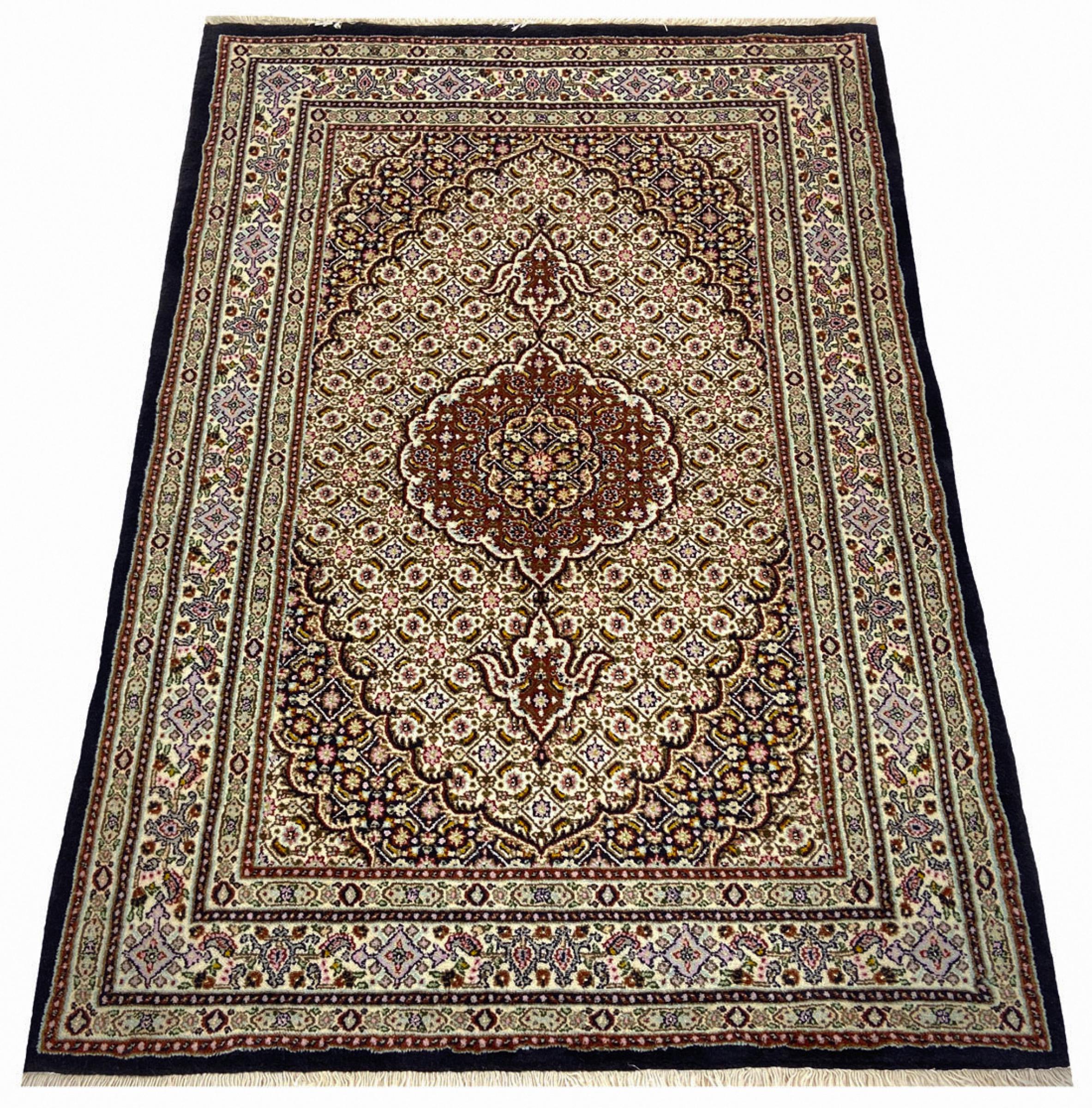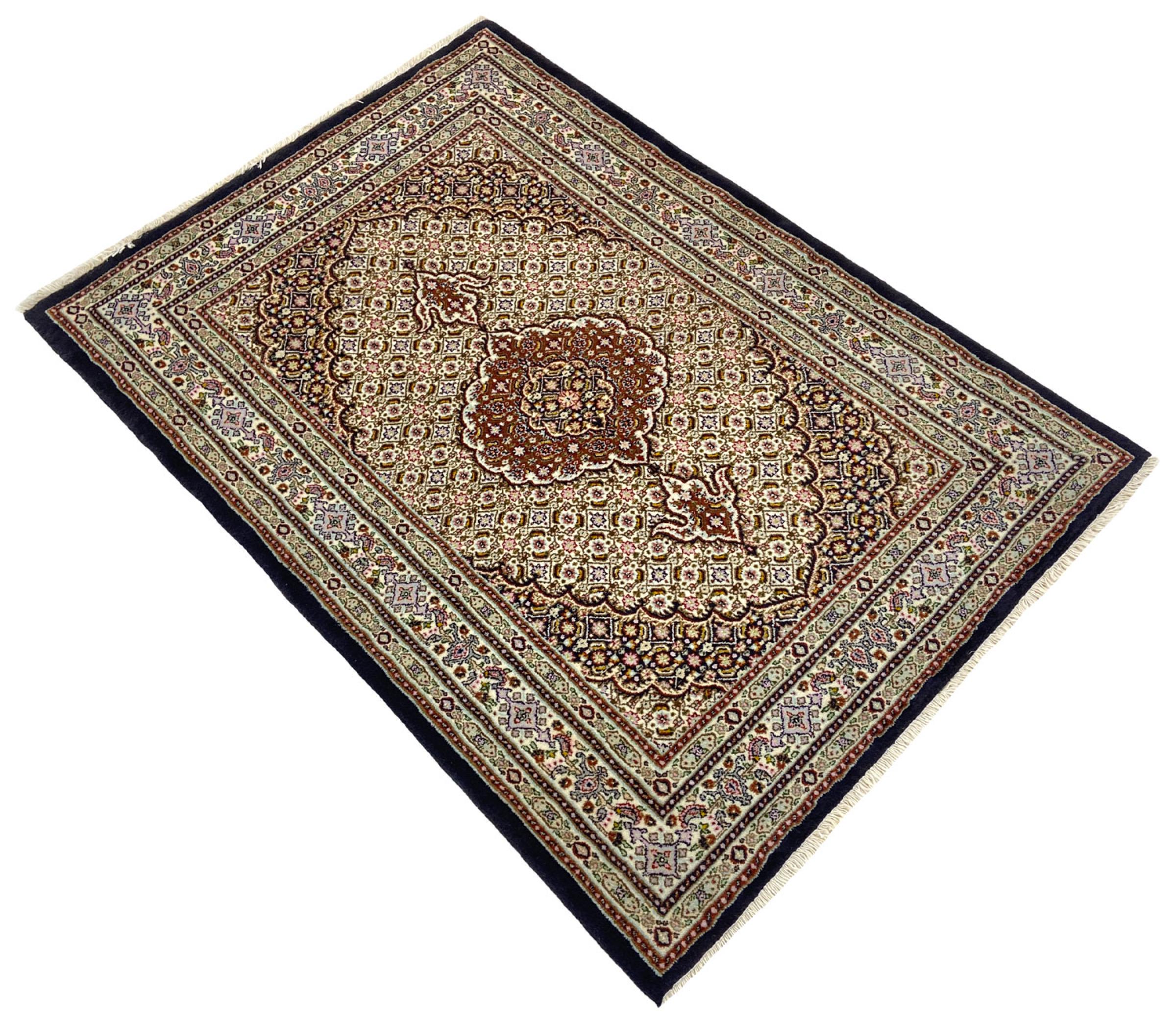 Alfombra número: 318816006323004 Tamaño: 143x101 cm Espesor: alrededor de 10 mm Nudos: 128 000 - 160 000 / m² Elaboración: Anudado a mano Crespón: Lana hilada a mano Urdimbre: Algodón Origen: Persia / Iran Edad: Nuevo Peso: alrededor de 5 kg Cantidad en stock: Única - Solo 1 en stock