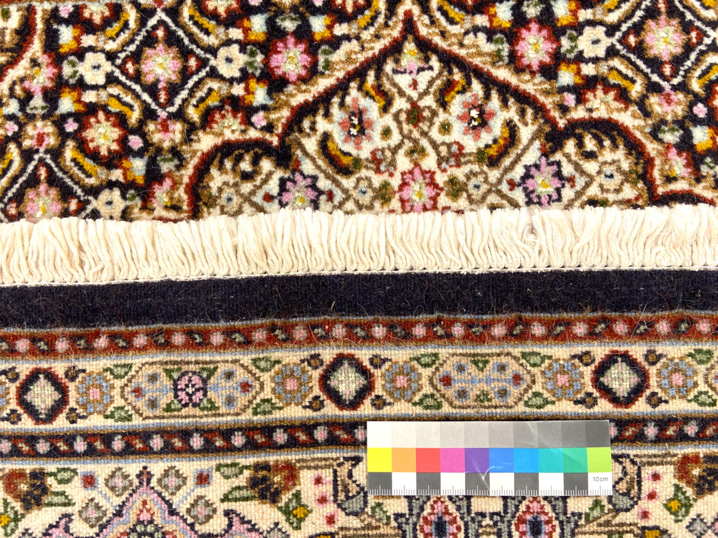 Esta alfombra está hecha de lana de oveja hilada a mano de la más alta calidad. Especialmente en Irán (antigua Persia), la lana de Afganistán y Pakistán sigue siendo hilada a mano antes de que comience el anudado de la alfombra. La lana ha demostrado ser un material natural y extremadamente resistente a lo largo de los siglos. Entre otras cosas, tiene propiedades repelentes de la suciedad y aislantes del calor. Al mismo tiempo, la lana es incomparablemente suave y tiene un brillo natural.