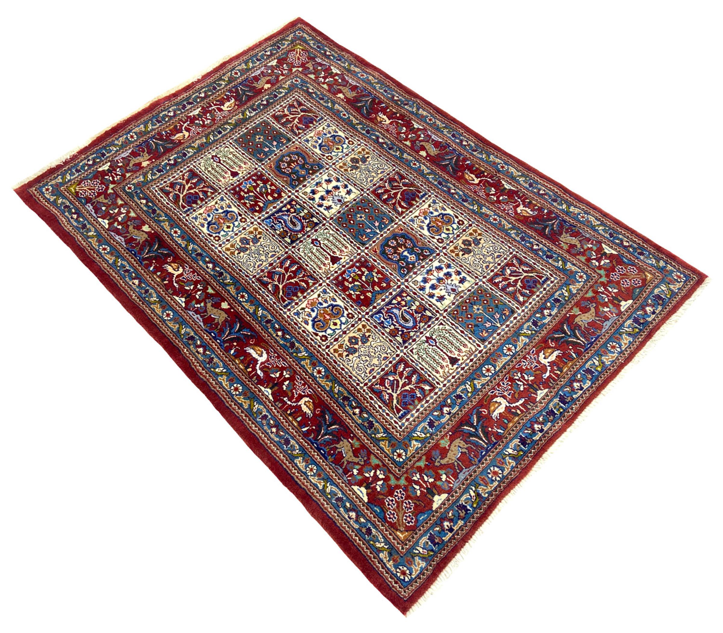Esta alfombra de Moud, una ciudad situada a 300 km al sur de Mashhad, es realmente cautivadora. Sus motivos hérati son muy apreciados por los conocedores y amantes de las alfombras persas. Si lo que busca es una alfombra de fina calidad, para un uso variado en distintas circunstancias, está en el lugar correcto.