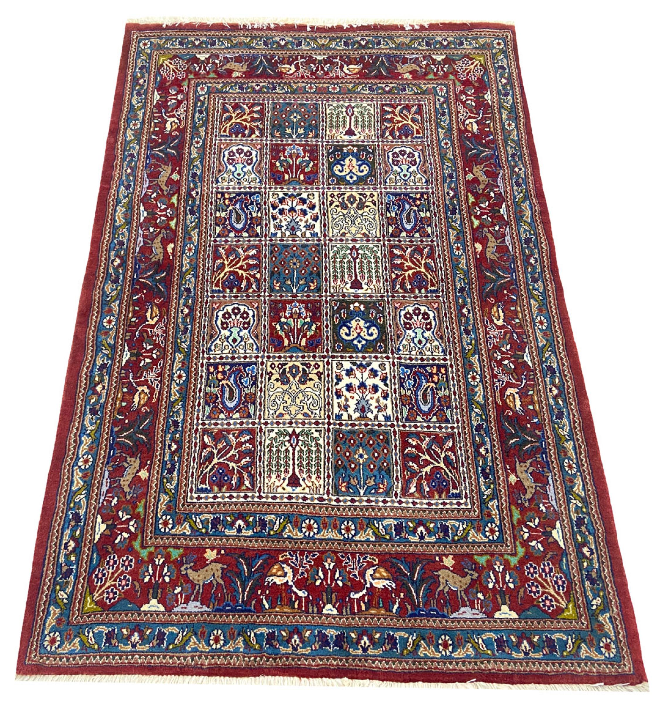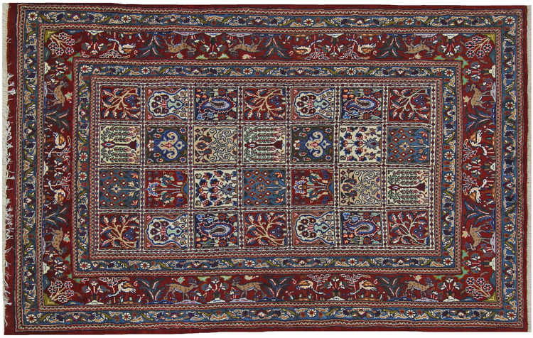 Moud está en Irán, al sur de Mashhad. Como ciudad de la antigua Persia, su tradición de anudar alfombras se remonta a muchos siglos, si no miles de años. Las alfombras anudadas a mano de Moud gozan de una excelente reputación. Están hechos con el famoso nudo persa. Típicamente, las alfombras persas de Moud tienen un patrón de cobertura total. El patrón del Jardín con motivos de los jardines persas o el patrón de Herati.